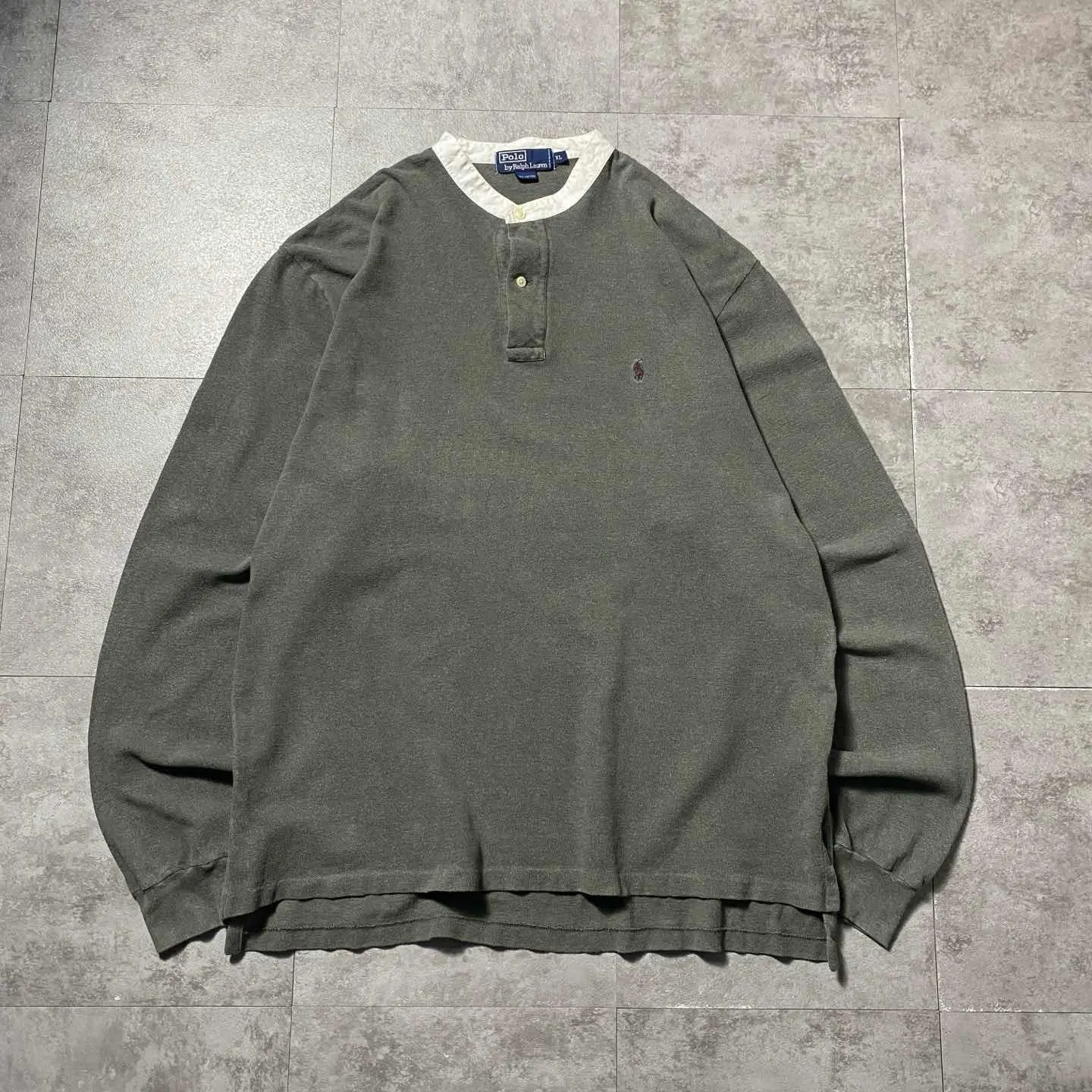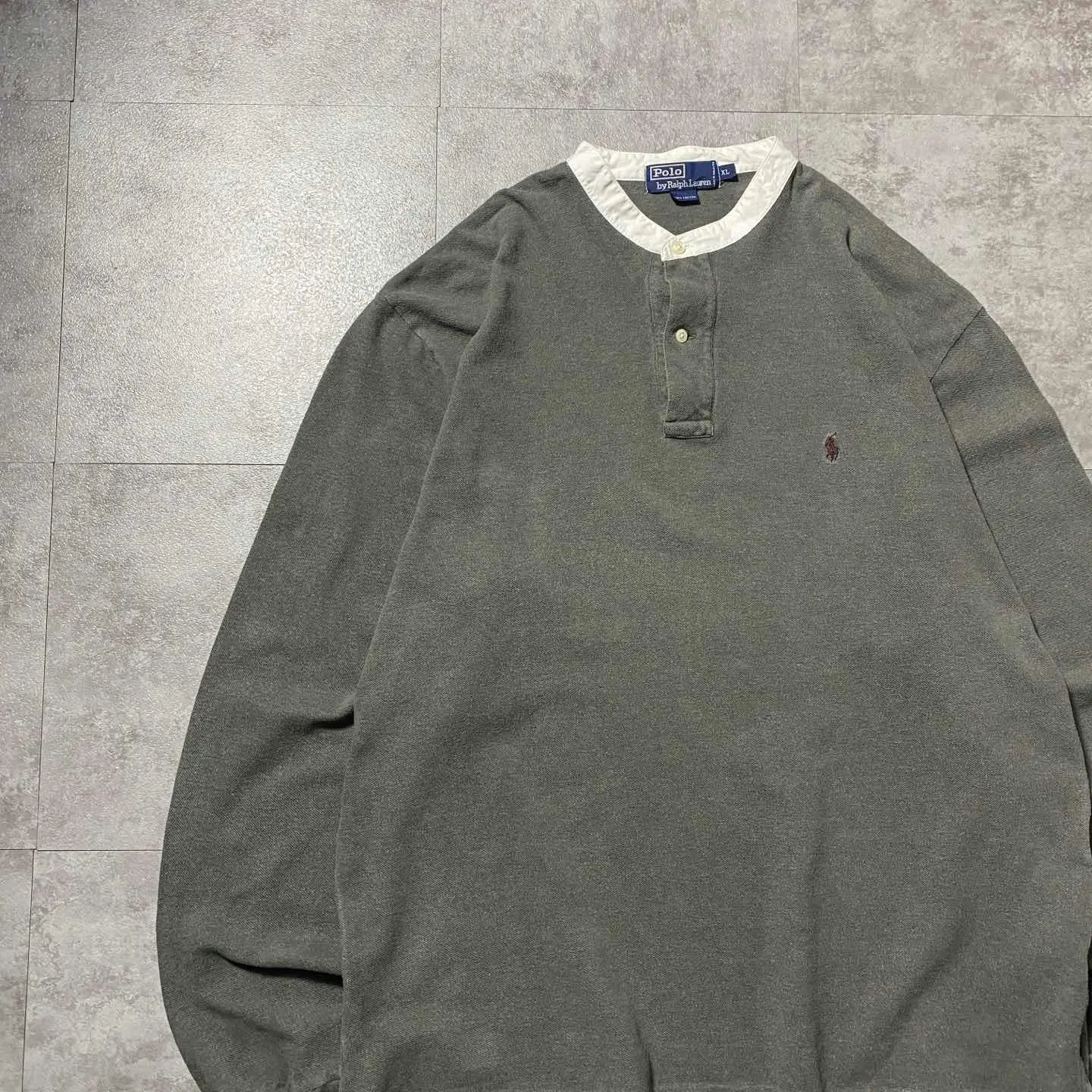 90s ポロバイラルフローレン 刺繍ワンポイントポニー ノーカラー ラガーシャツ