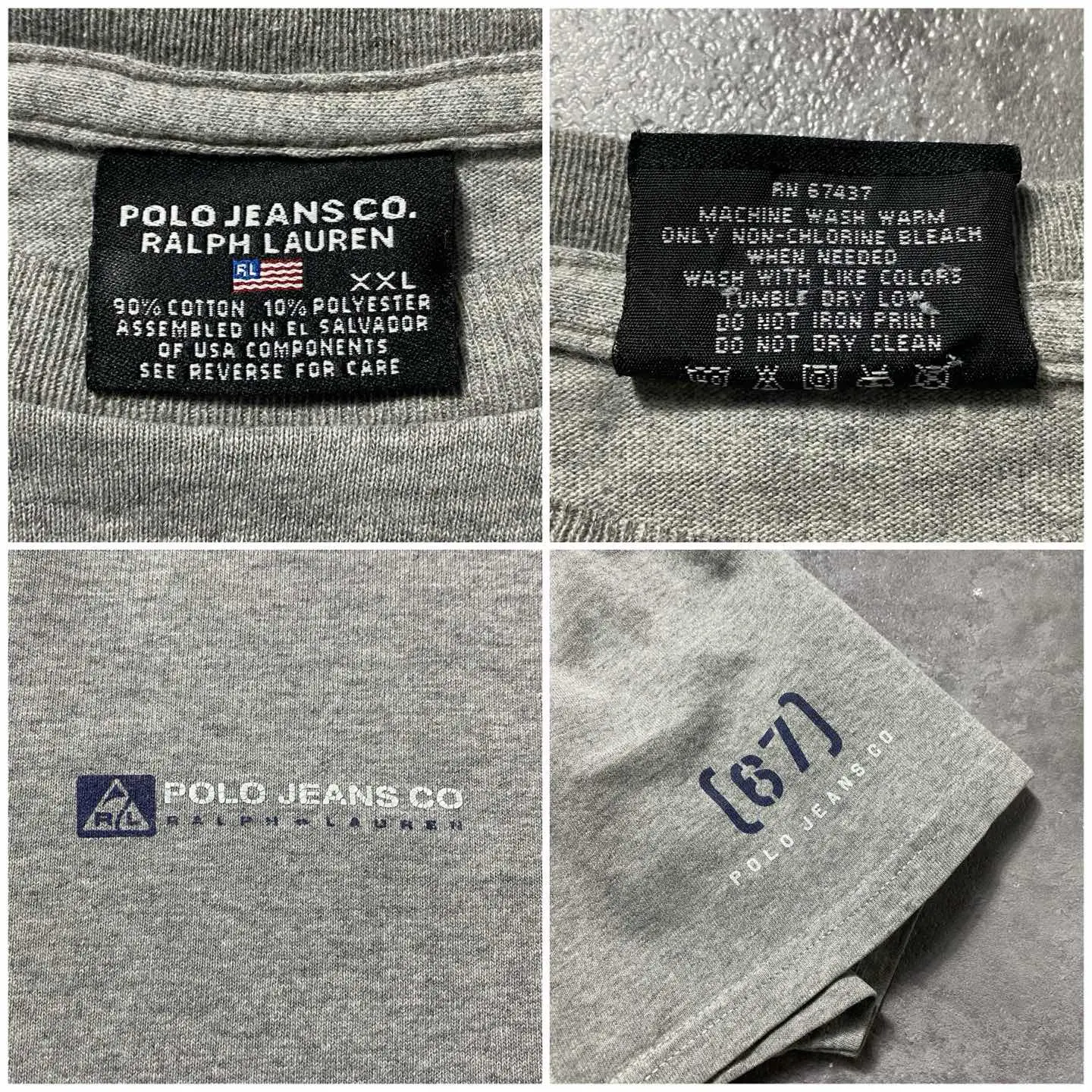 00's ラルフローレン ポロジーンズ バックプリント グレー Tシャツ