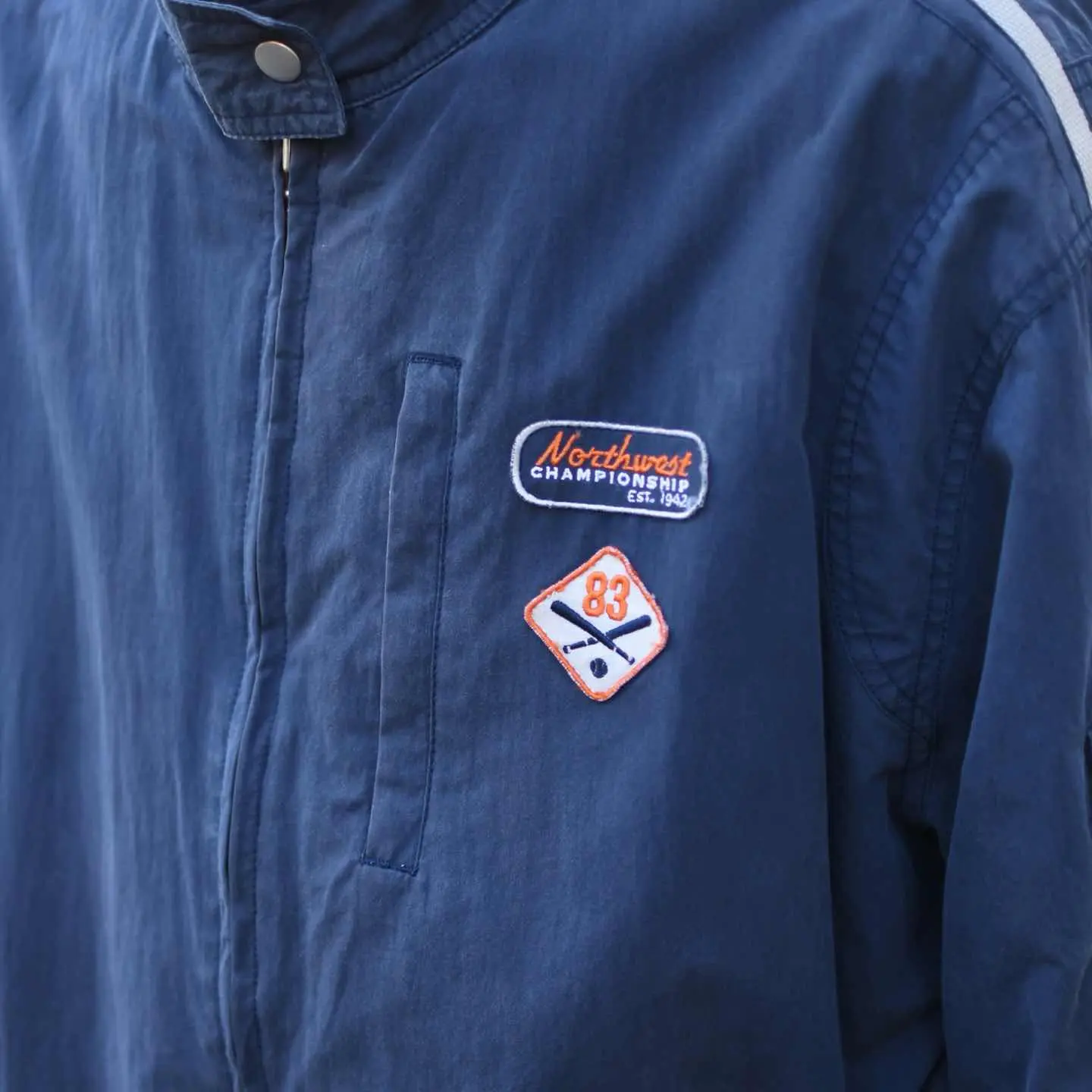 SIZE:XL 着丈72cm 肩幅57cm 身幅67cm 袖丈64cm fabric/質感よりcotton 着用画像 173cm/58kg アメリカ北西部で行われた、野球の地区大会を 記念して作られたジャケットでしょうか。 一癖あるチンストの付き方や、アームポケットから、 スポーツジャケットらしさが詰まった逸品です。 生地に光沢が無いからこそ、 スポーティなスタイリングだけでなく、 カジュアルなスタイリングにも落としこめ、 雑にも着れるのが◎ 程良いデザイン性と軽めな生地感。 がばっとどうぞ。 ※右アーム、フロントに脱色痕、 裏地に汚れあり。 ※撮影状況により、実物と多少色が異なる場合が ございます。 ※古着を取り扱っているため、気づかない汚れや ほつれ等がある場合がございます。 ※サイズは着用感で選んでおり、 表記サイズは説明欄の最初に記載しております。 古着 オーバーサイズ old vintage ヴィンテージ used 80's 90's アメリカ古着 ユーロ古着 POLO RALPH LAUREN Eddie Bauer OLD GAP LANDS' END ランズエンド LLBean エルエルビーン オールドギャップ エディーバウアー ラルフローレン ブルックスブラザーズ Brooks Brothers ネイビー紺色 ブルゾン などがお好きな方 #vintage #オーバーサイズ #old #used #90s #80s #古着 #ヴィンテージ #アメリカ古着 #ユーロ古着 #LLBean #エルエルビーン #EddieBauer #エディーバウアー #oldgap #オールドギャップ #LANDSEND #ランズエンド #NAUTICA #ノーティカ #ラルフローレン #POLORALPHLAUREN #ブルックスブラザーズ #BrooksBrothers #ジャケット #スポーツジャケット #ブルゾン