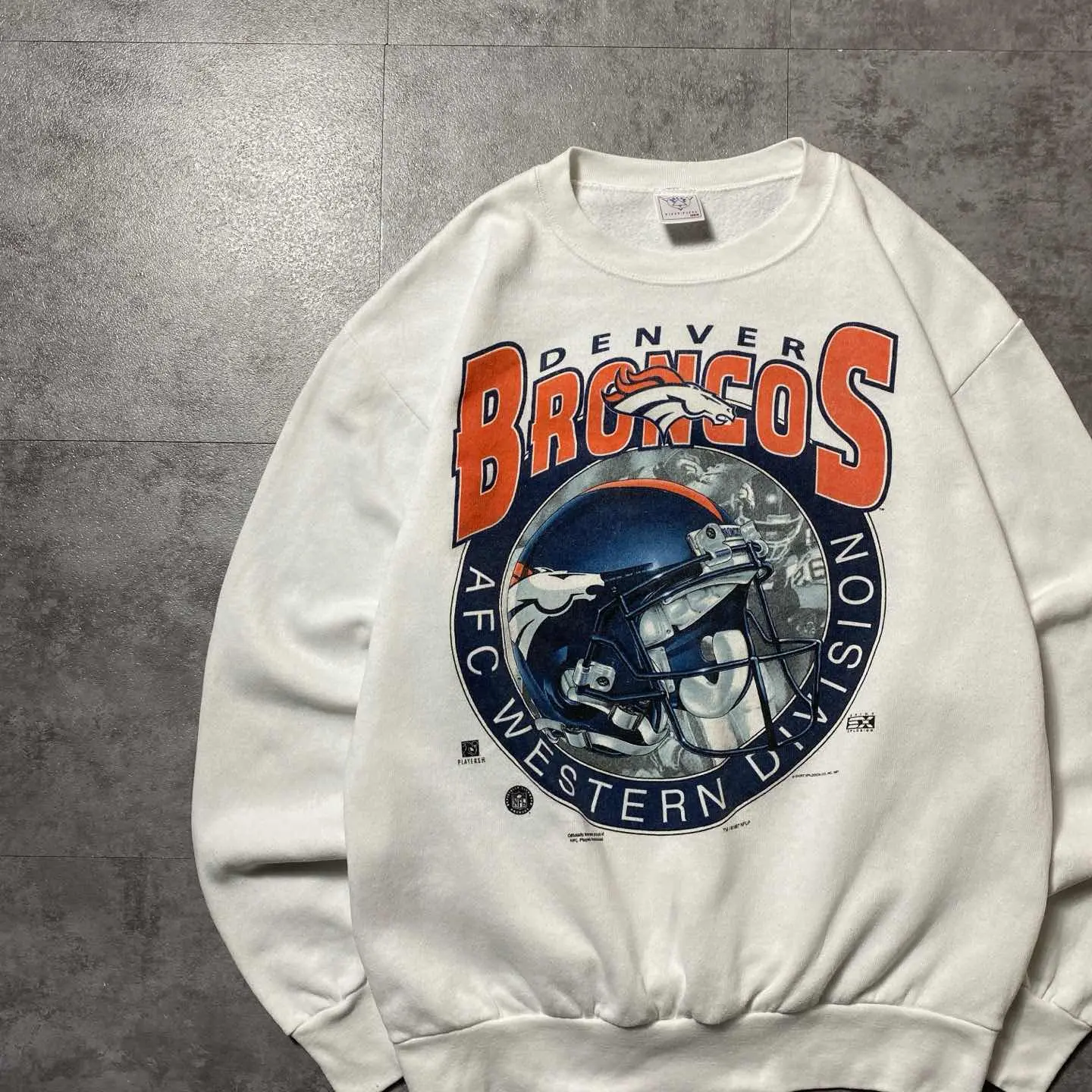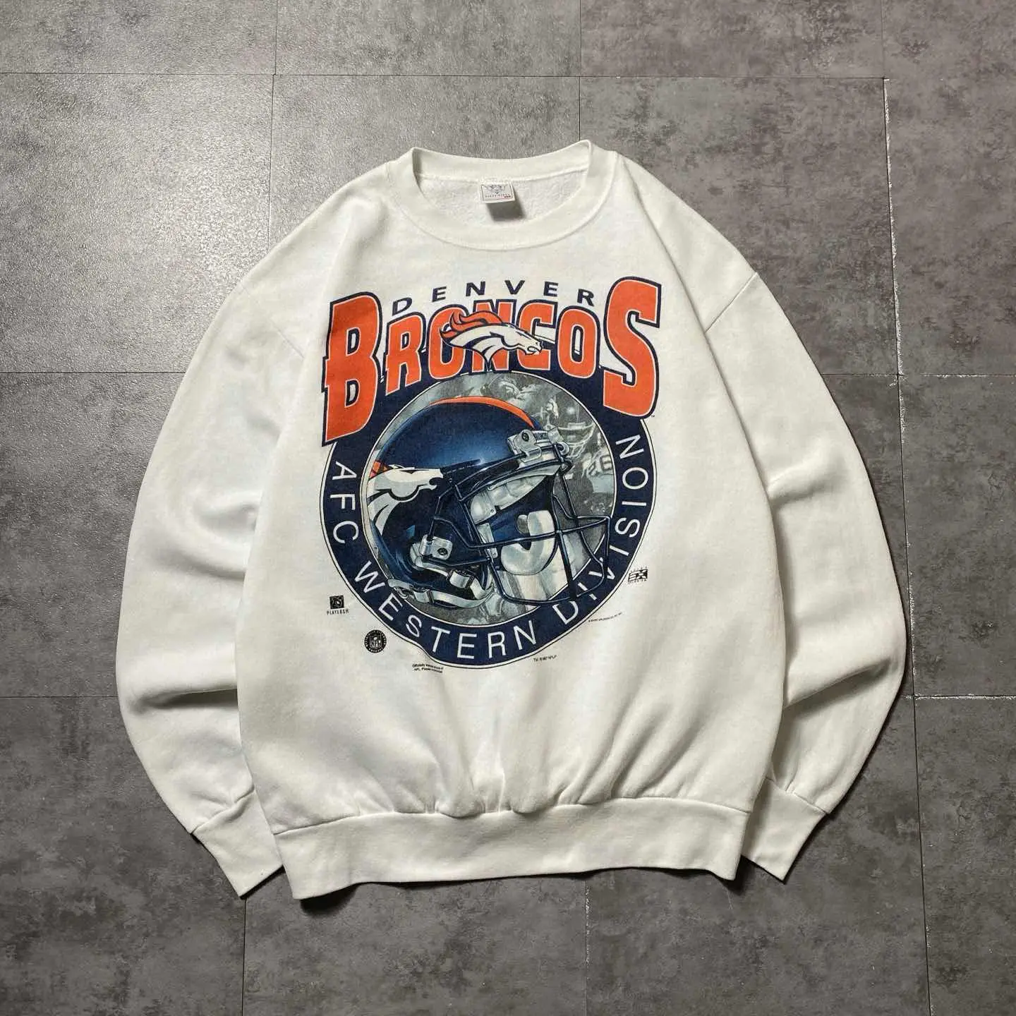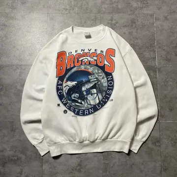 90's DELTA NFL デンバーブロンコス プリント ホワイト スウェット