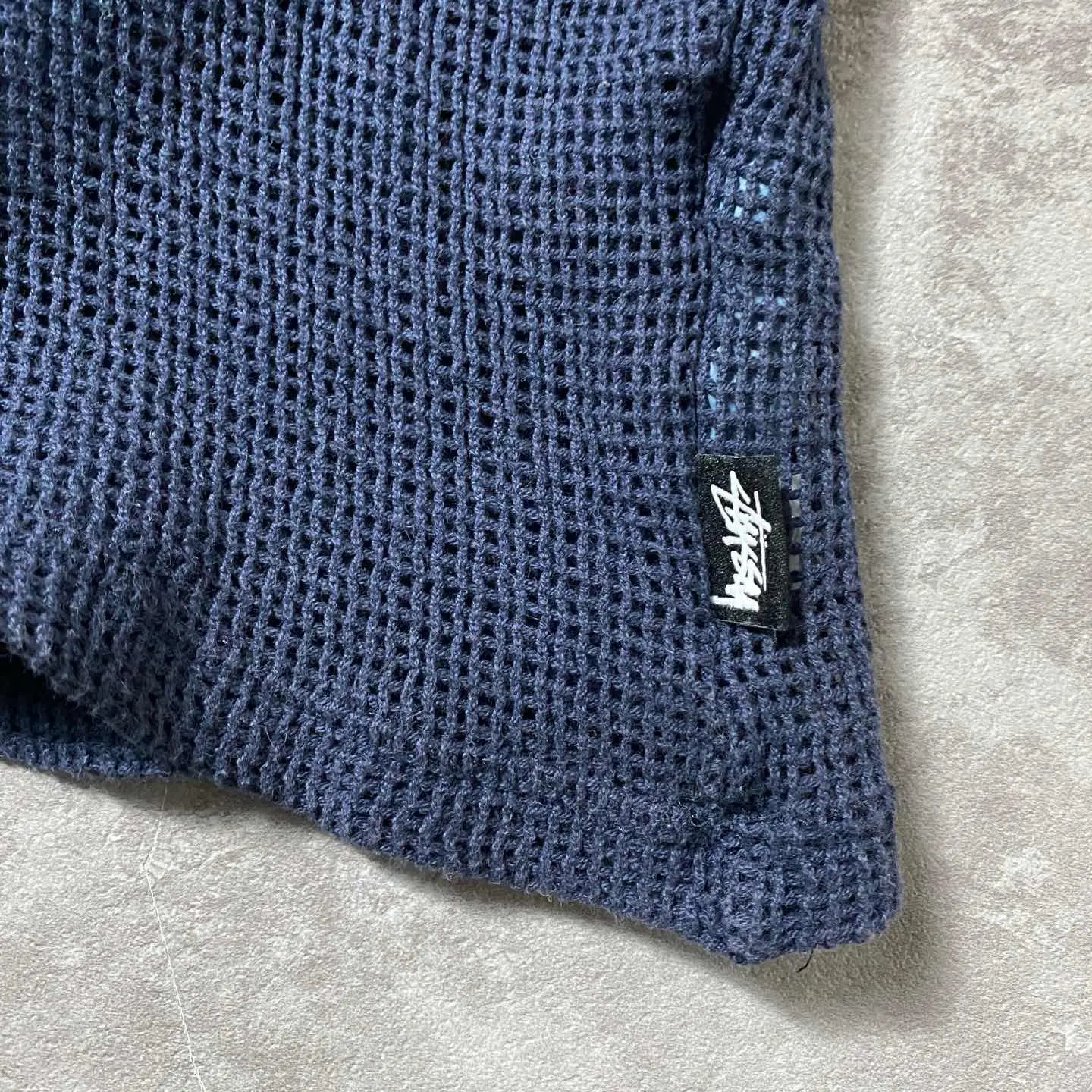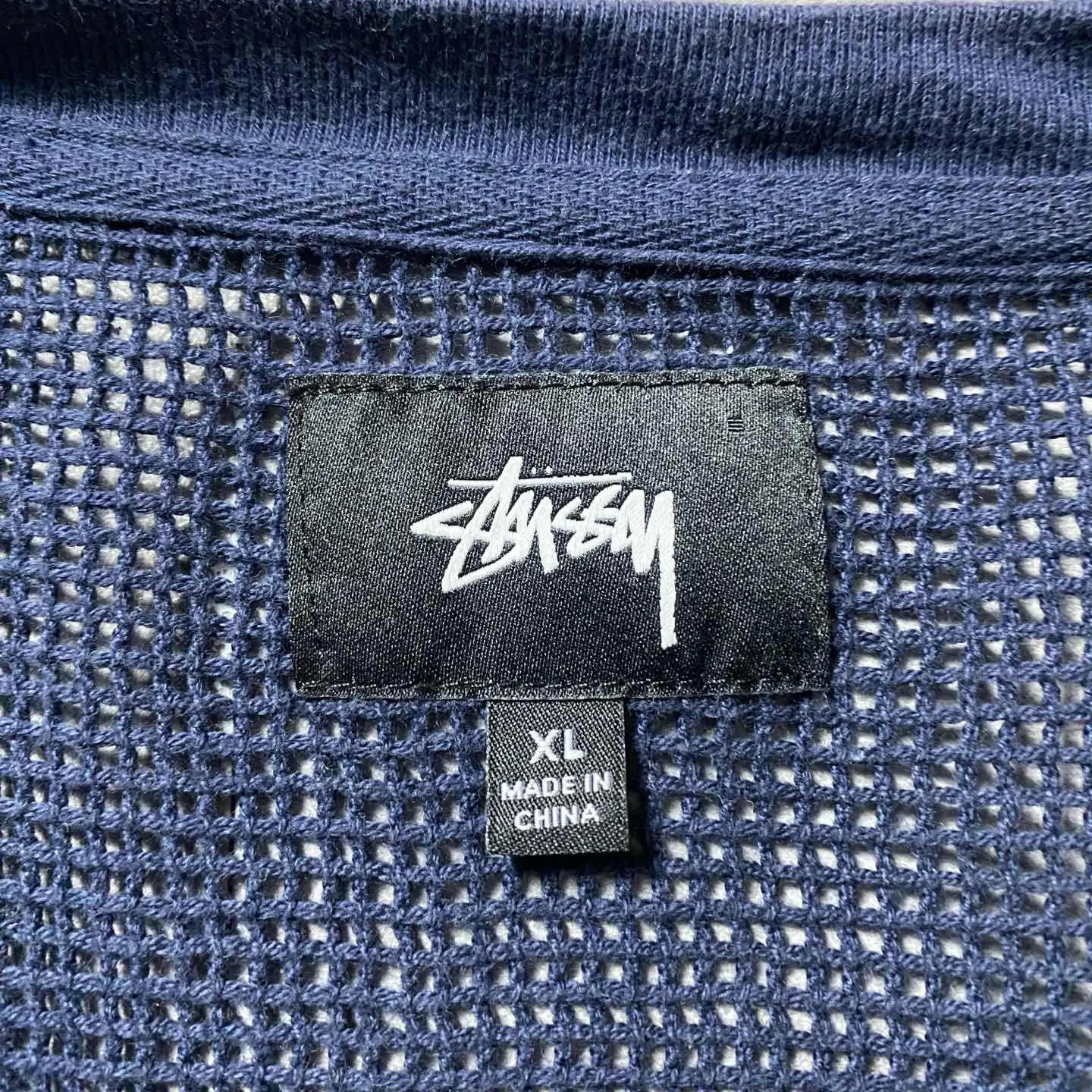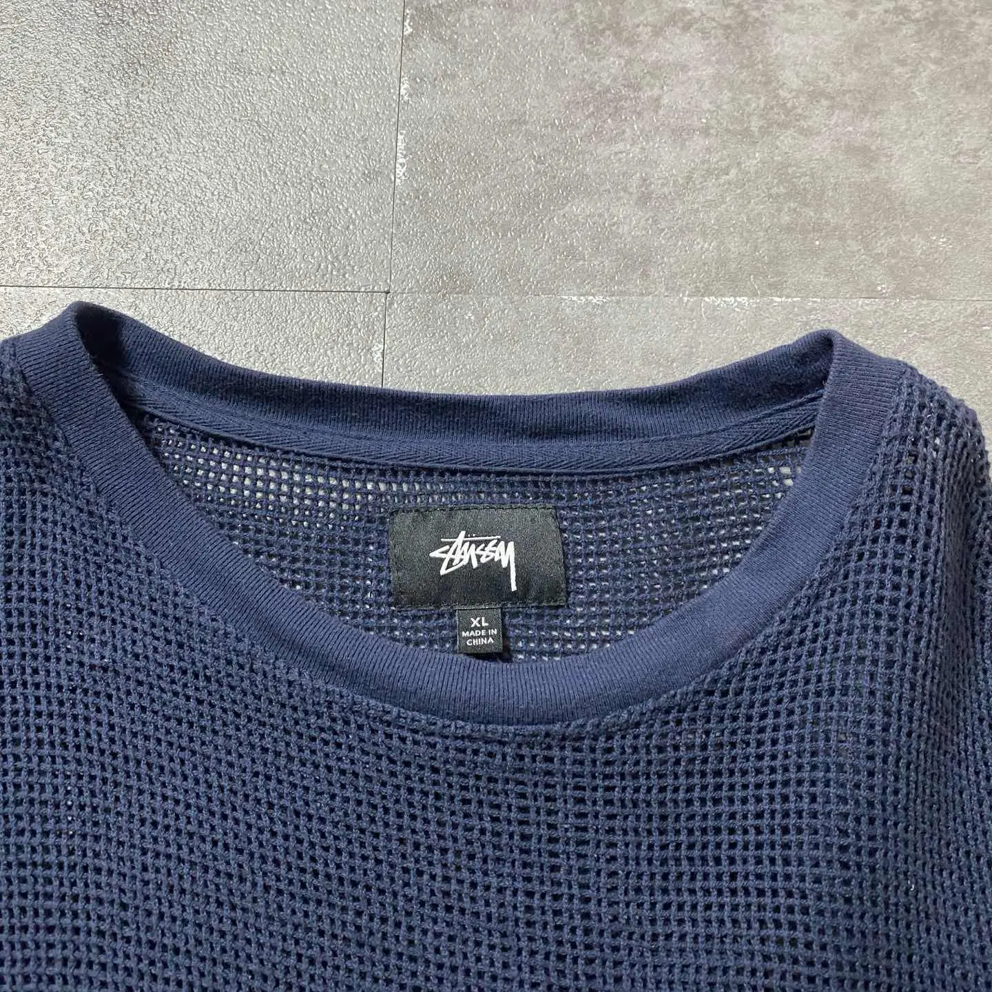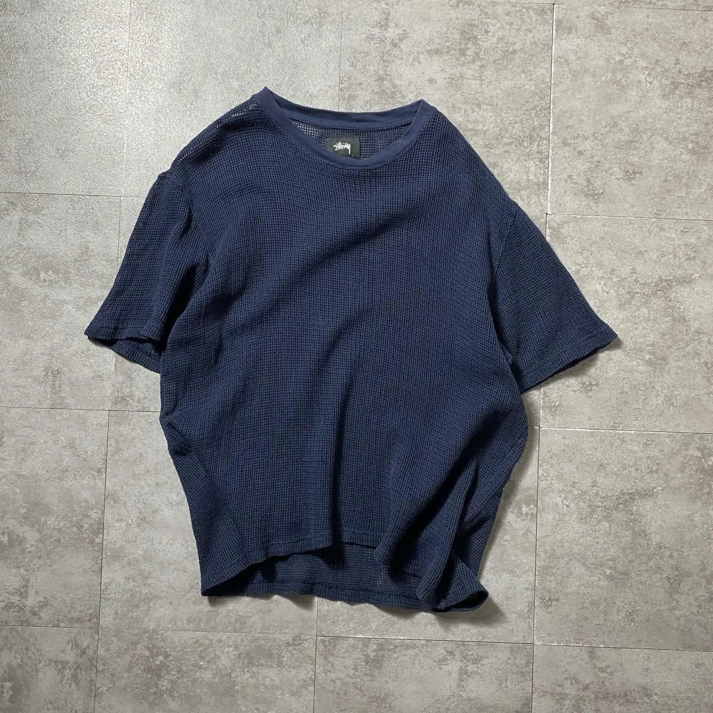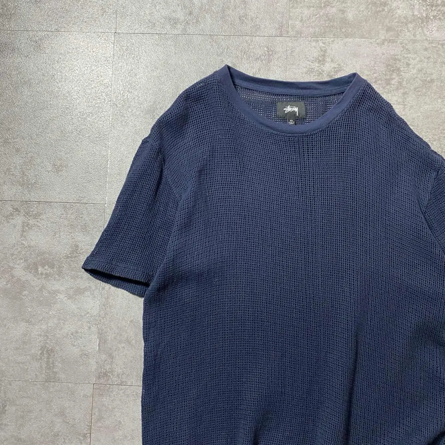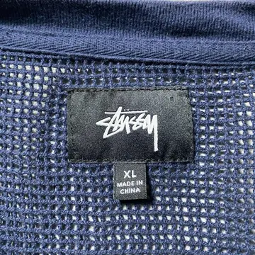 【XL】stussy ステューシー メッシュニット ネイビー 無地 Tシャツ