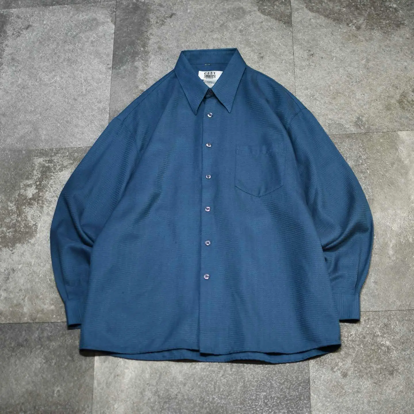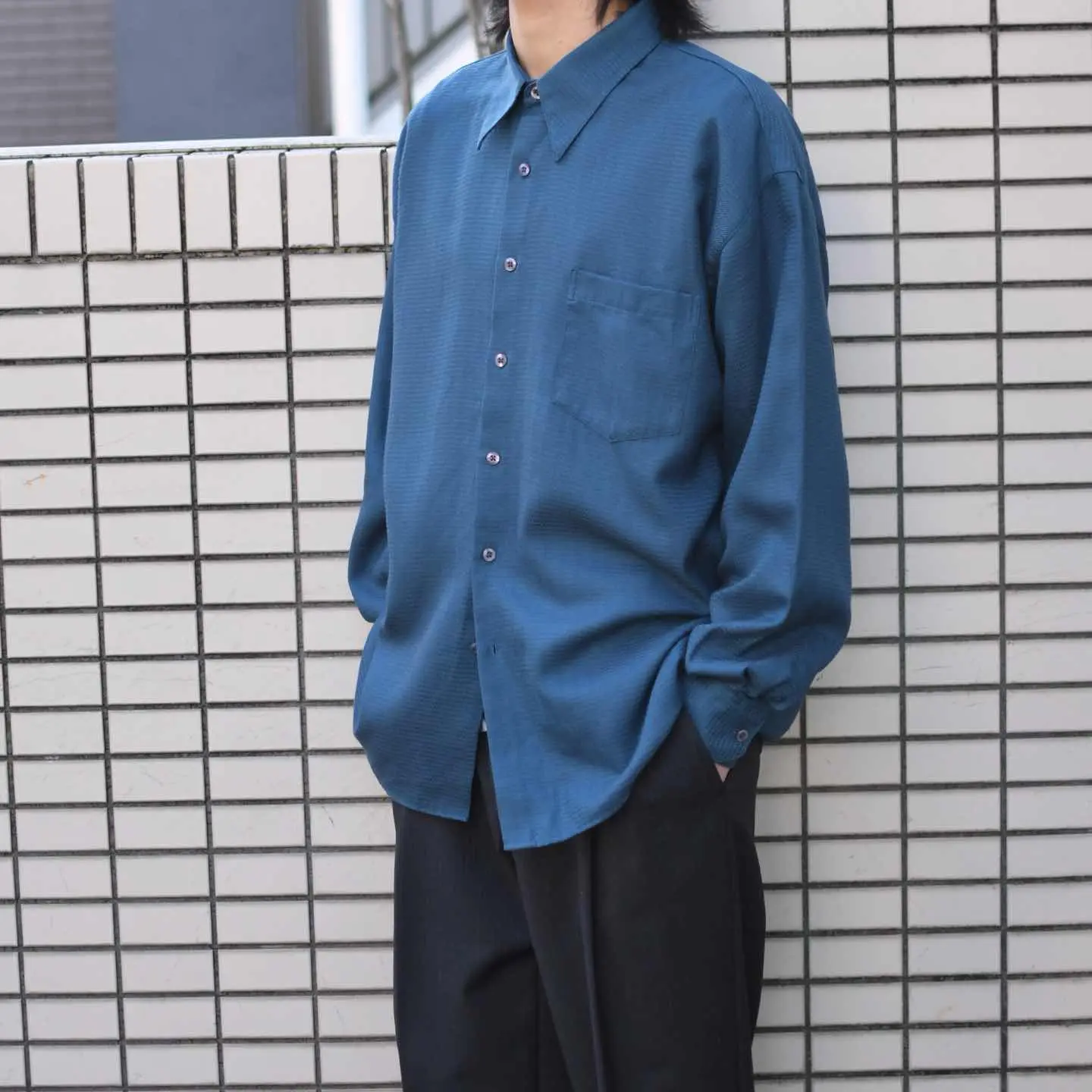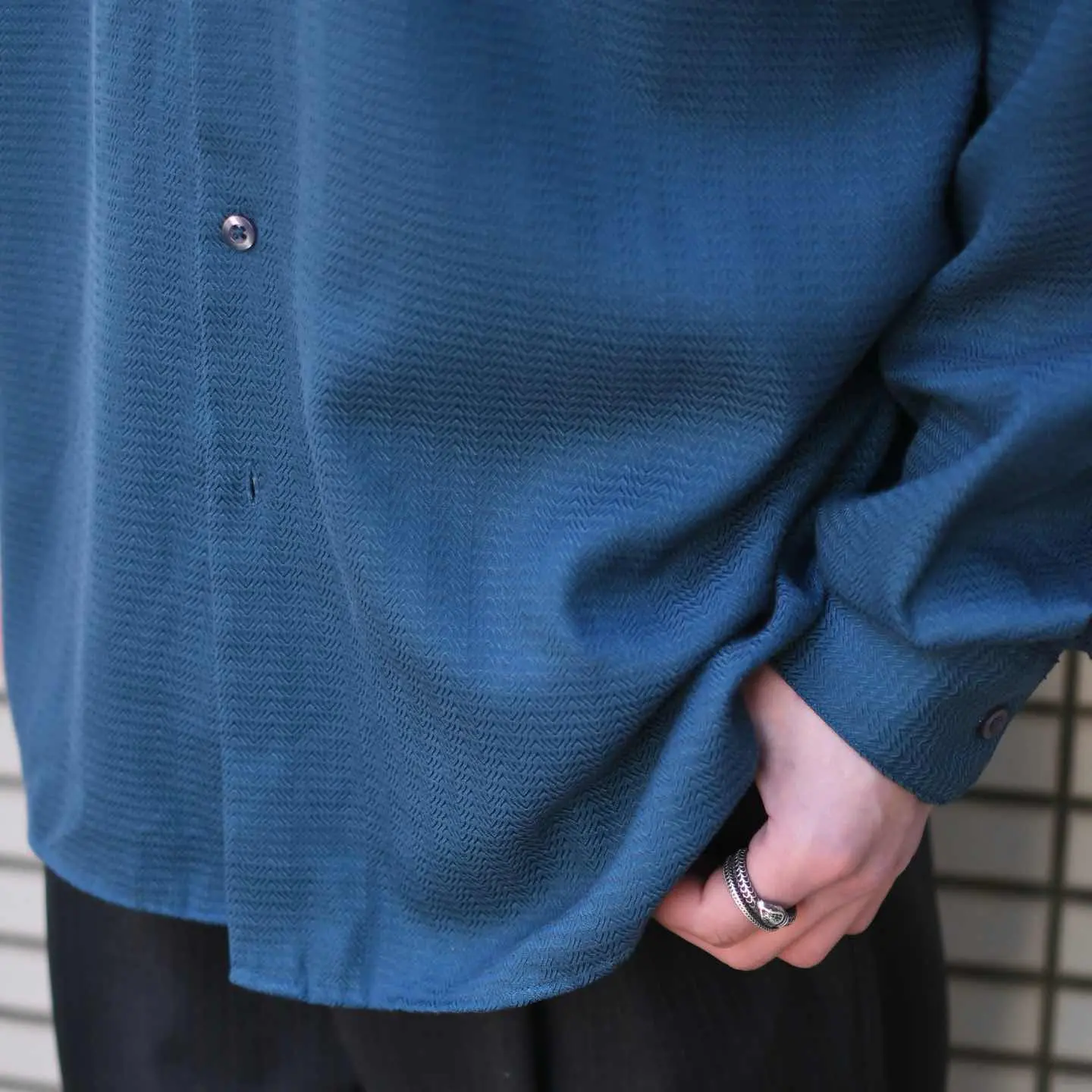 古着 ヘリンボーン柄 織り柄 レーヨンシャツ 長袖シャツ シャツ ブルー
