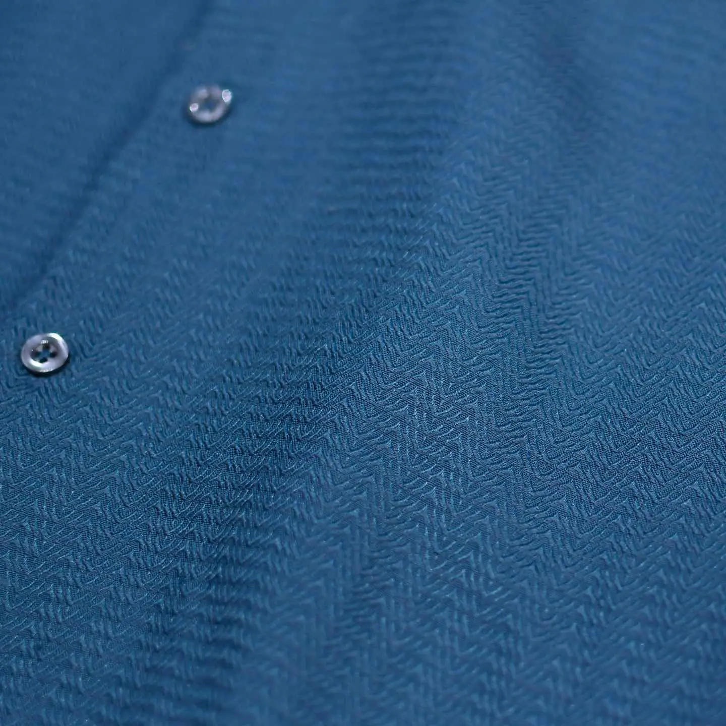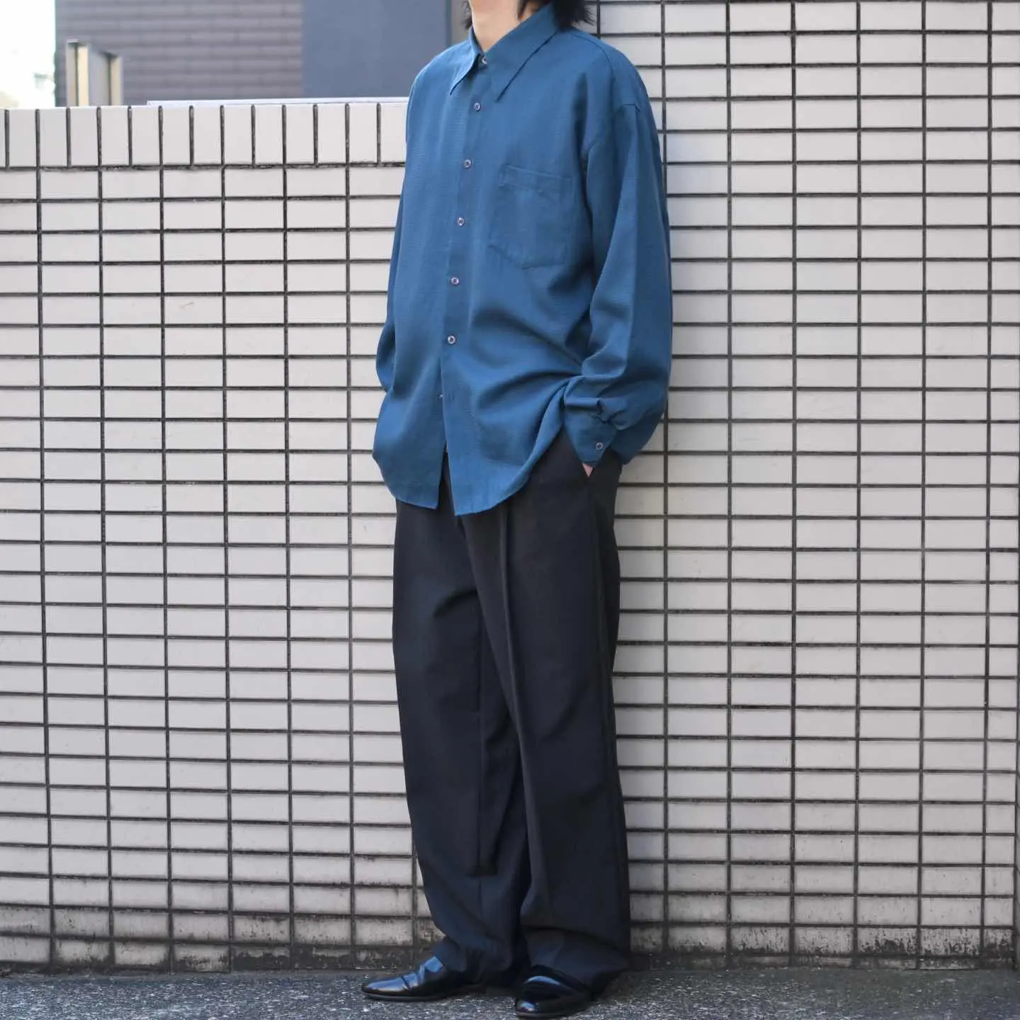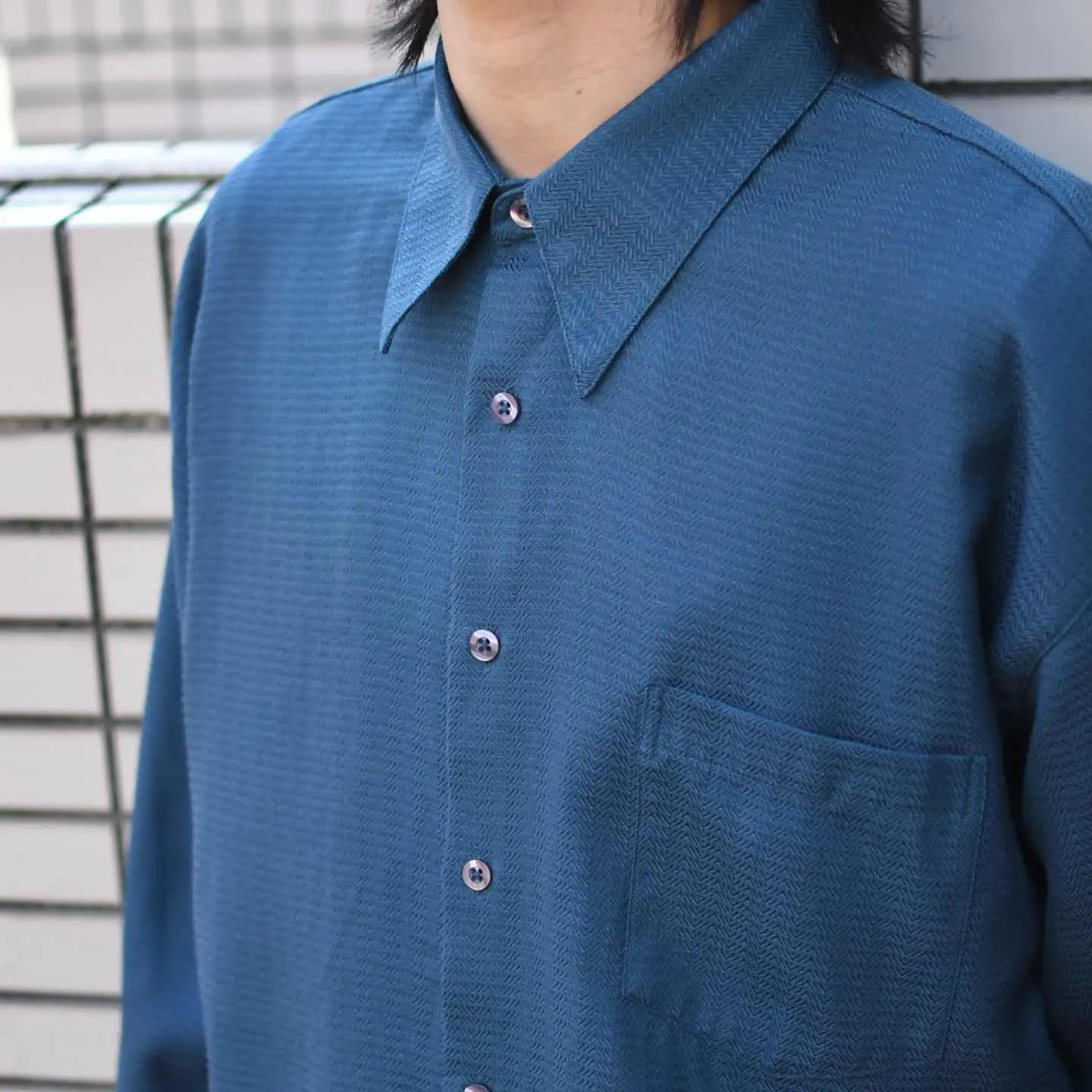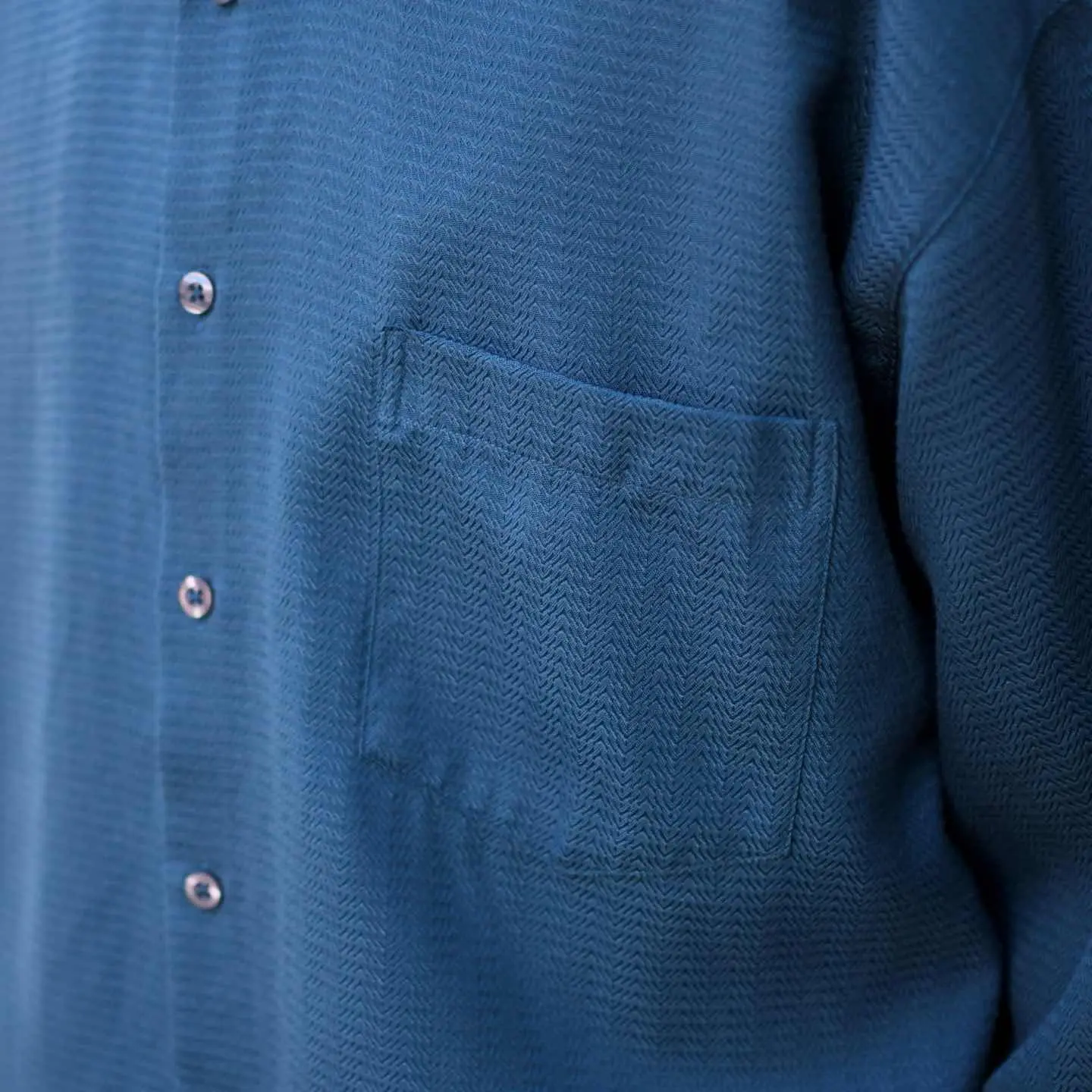 古着 ヘリンボーン柄 織り柄 レーヨンシャツ 長袖シャツ シャツ ブルー
