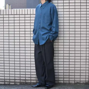 SIZE:L 着丈79cm 肩幅57cm 身幅65cm 袖丈59cm fabric/poly・rayon 着用画像 173cm/58kg ヘリンボーン柄亜種。 この違和感を言葉に落とし込むのは難しいですが、 通常のヘリンボーン柄とは似て非なるものでした。 さらに織りで表現することで、 プリントされた柄よりも上品さを纏うことが 出来るアイテムです。 単色シャツよりも奥行きがあり、 柄シャツほど派手ではない、 丁度良い立ち位置のシャツとして 活躍するのではないでしょうか。 ※撮影状況により、実物と多少色が異なる場合が ございます。 ※古着を取り扱っているため、気づかない汚れや ほつれ等がある場合がございます。 ※サイズは着用感で選んでおり、 表記サイズは説明欄の最初に記載しております。 古着 オーバーサイズ old vintage ヴィンテージ used 80's 90's アメリカ古着 ユーロ古着 POLO RALPH LAUREN Eddie Bauer OLD GAP LANDS' END ランズエンド LLBean エルエルビーン オールドギャップ エディーバウアー ラルフローレン ブルックスブラザーズ Brooks Brothers 青 ネイビー ドレスシャツ デザインシャツ などがお好きな方 #vintage #オーバーサイズ #old #used #90s #80s #古着 #ヴィンテージ #アメリカ古着 #ユーロ古着 #LLBean #エルエルビーン #EddieBauer #エディーバウアー #oldgap #オールドギャップ #LANDSEND #ランズエンド #NAUTICA #ノーティカ #ラルフローレン #POLORALPHLAUREN #ブルックスブラザーズ #BrooksBrothers #デザインシャツ #長袖シャツ #シャツ #レーヨンシャツ