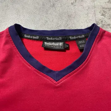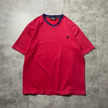 【ポルトガル製】90s ティンバーランド 刺繍ロゴ リンガーネック Tシャツ