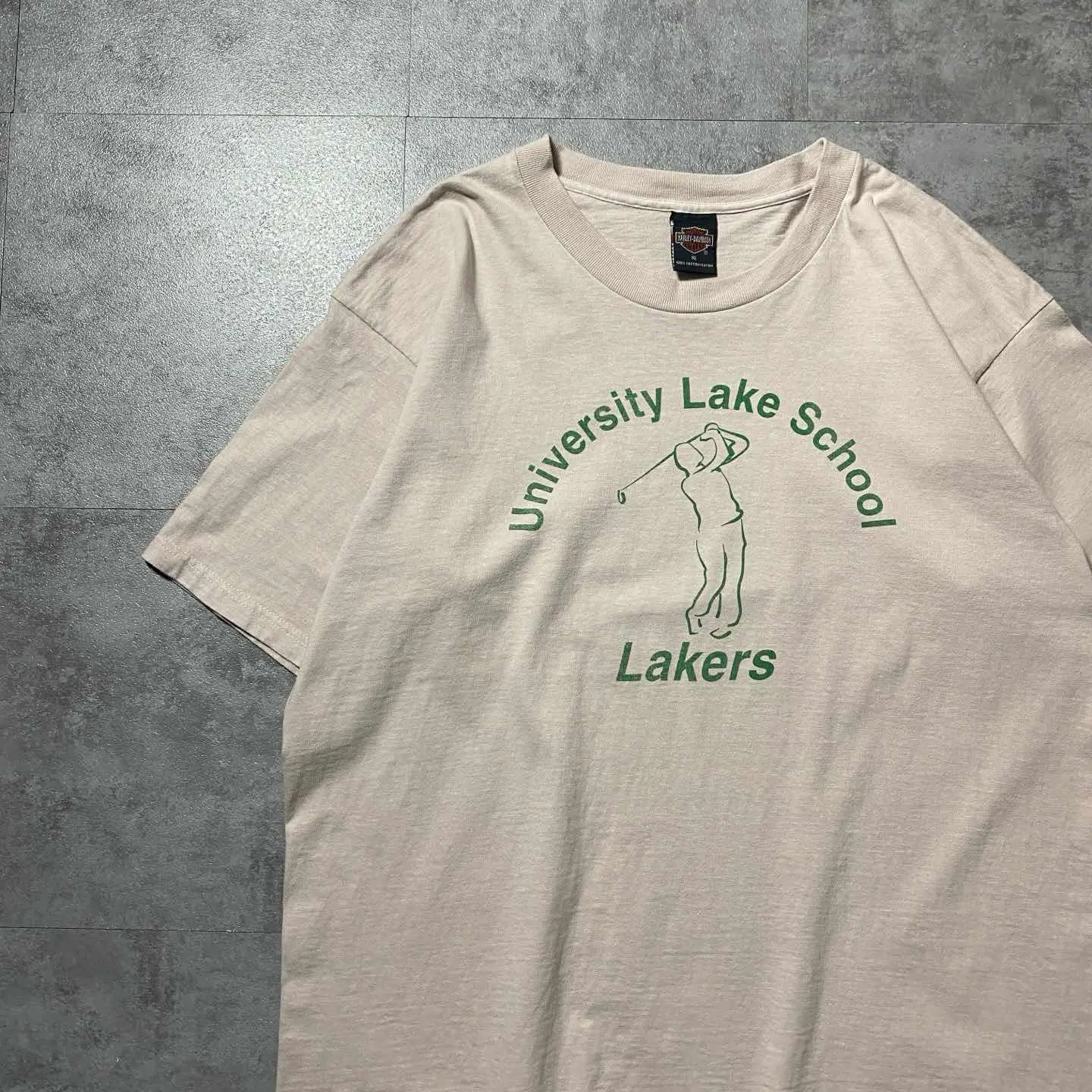 【USA製】90s ハーレーダビッドソン ゴルファープリント ベージュ Tシャツ