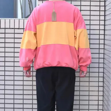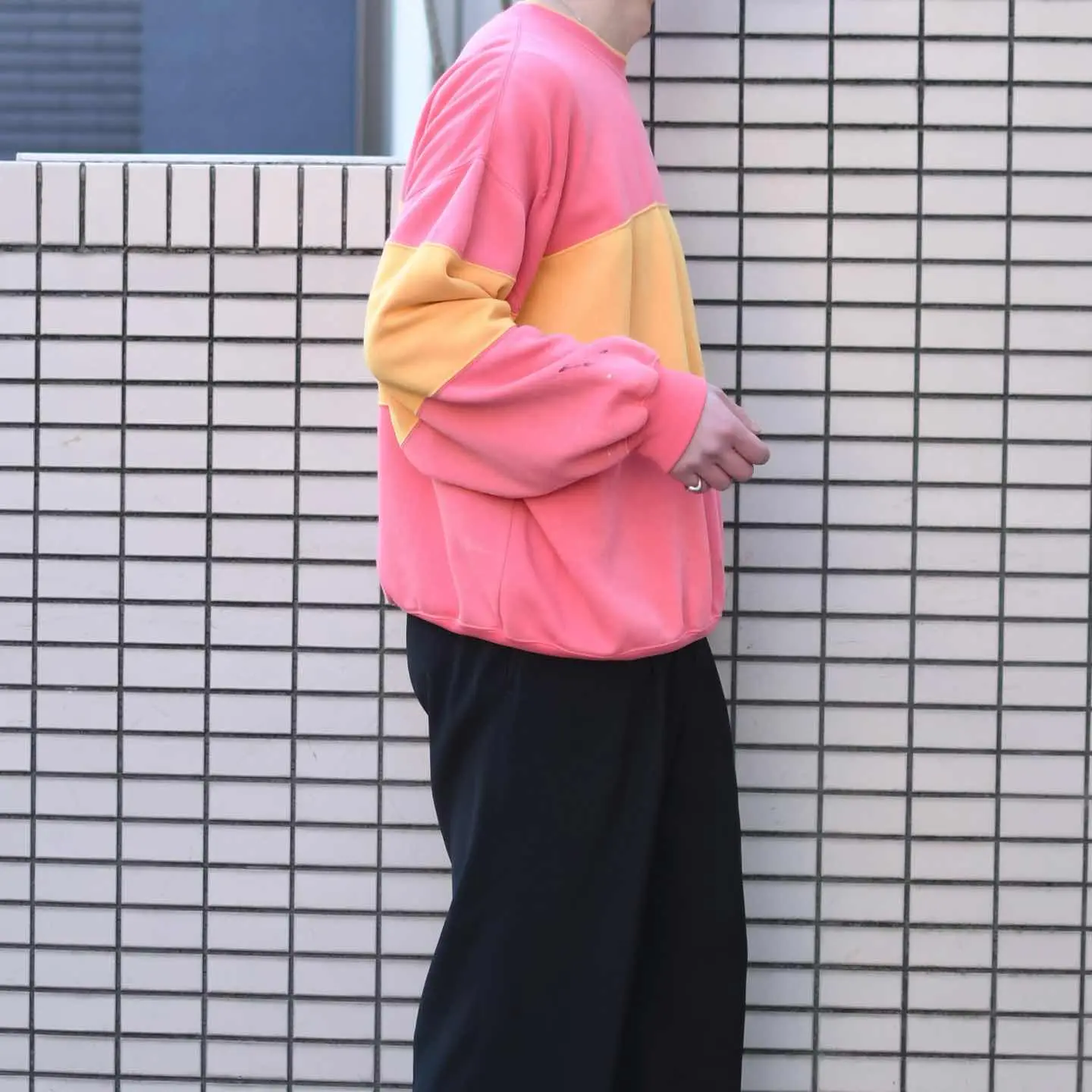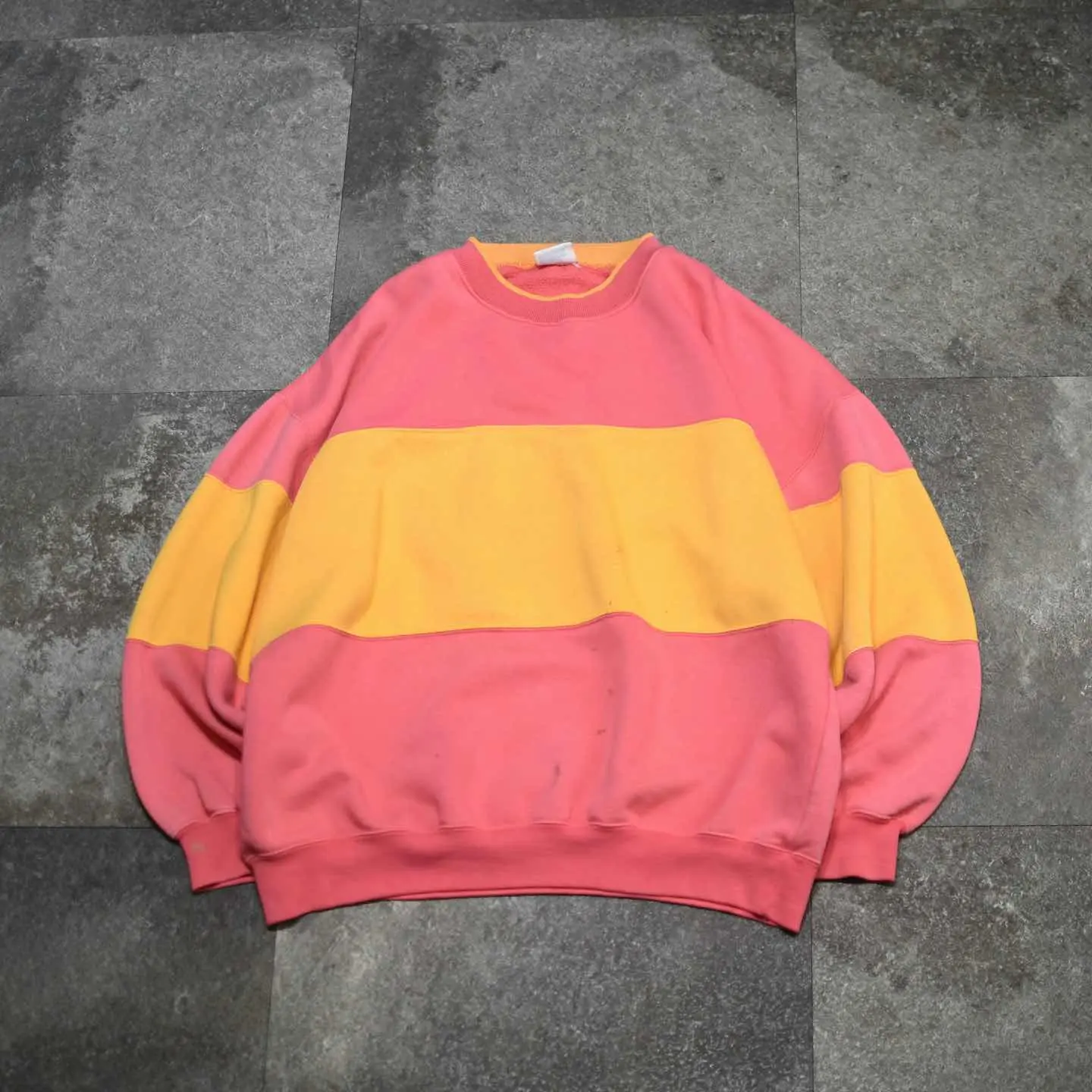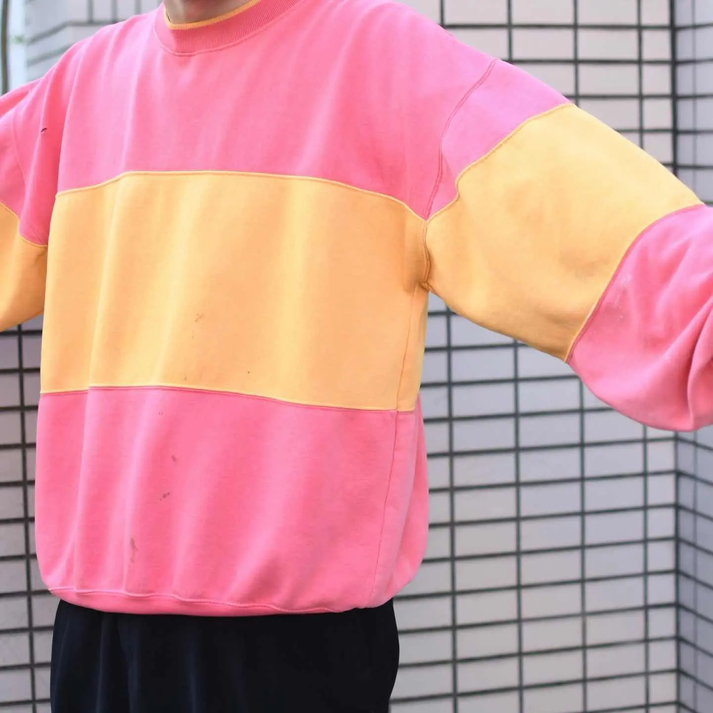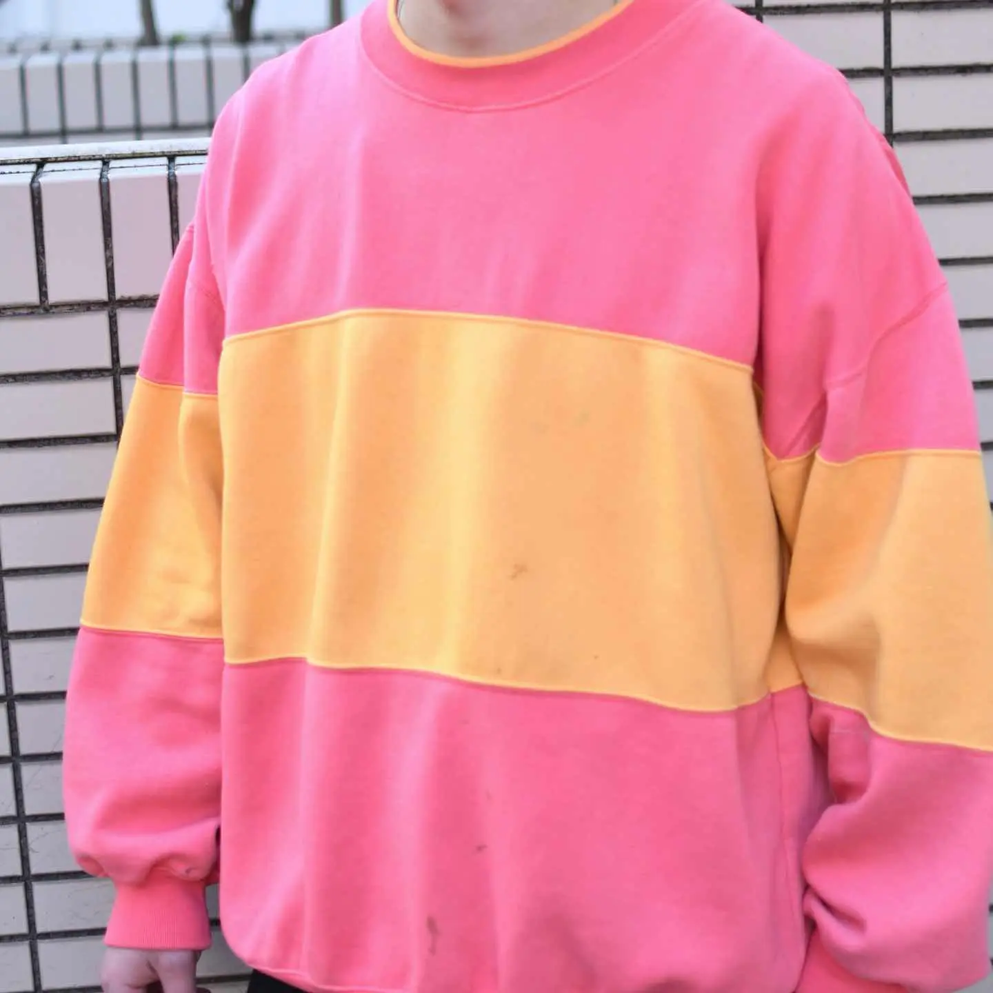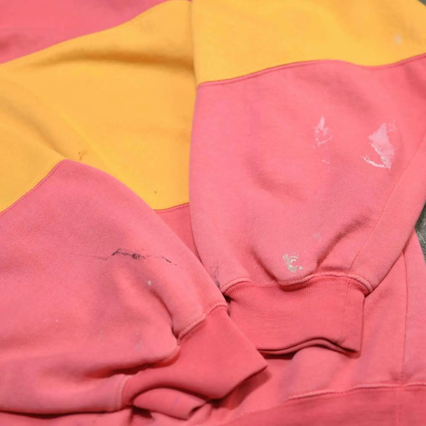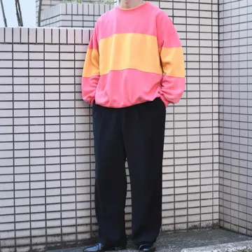 古着 シルエット◎ フェード ボロ 切り替え スウェット トレーナー ピンク