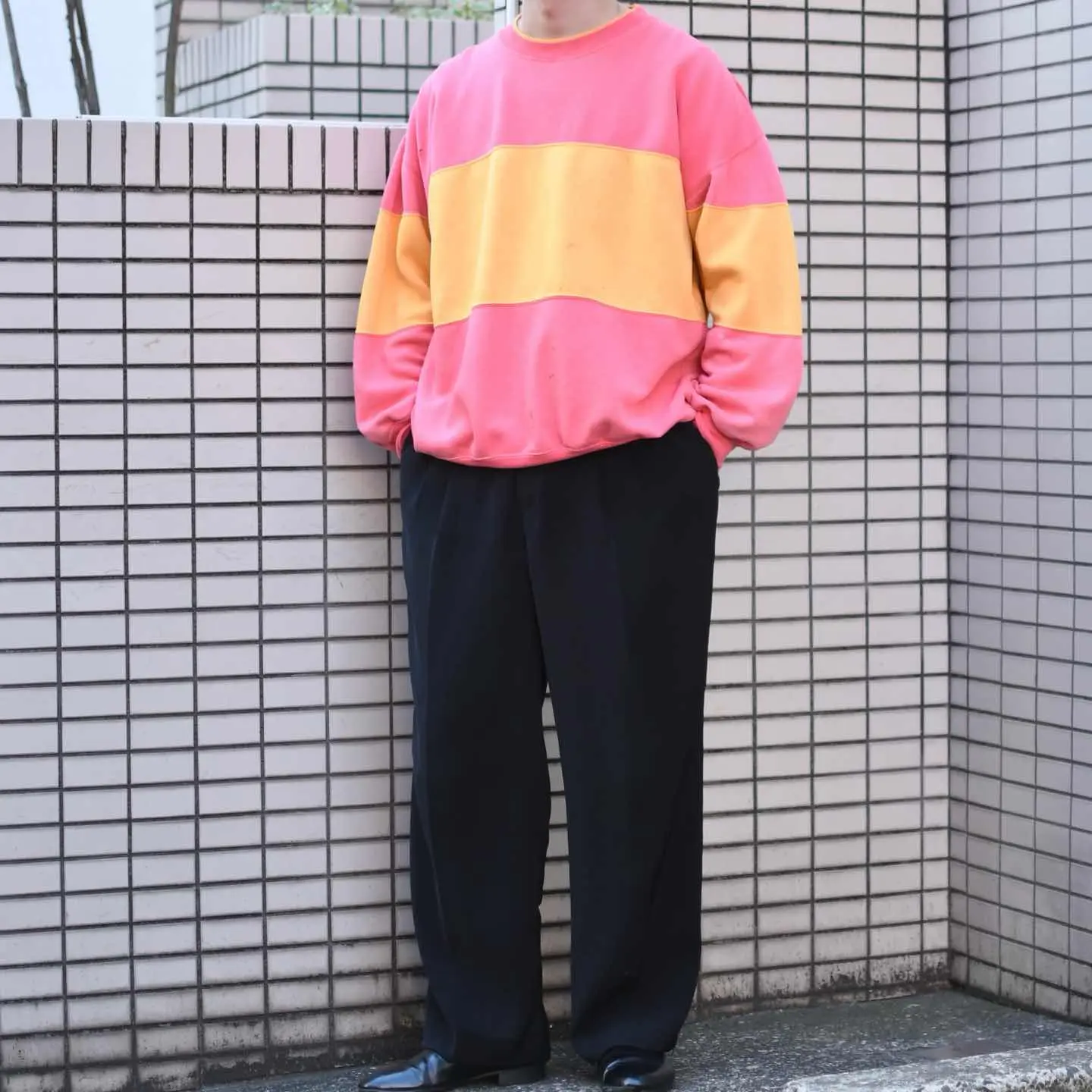 SIZE:XL 着丈68cm 肩幅71cm 身幅73cm 袖丈57cm fabric/poly・cotton 着用画像 177cm/68kg 個人的スペシャル。 2色のパステルカラーを切り替え、 さらにはゆったりとしたシルエットで アームの太さまで...◎ これでキレイな状態なら少し、 落とし込みにくさを感じますが、 こちらは程良くボロ。 雑に、カジュアルにデニムやチノ、軍パンなどと 合わせたい一着です。 こんな可愛いスウェットをボロで、 シルエット良く。 そのバランスがすこぶる推し。 ※撮影状況により、実物と多少色が異なる場合が ございます。 ※古着を取り扱っているため、気づかない汚れや ほつれ等がある場合がございます。 ※サイズは着用感で選んでおり、 表記サイズは説明欄の最初に記載しております。 古着 オーバーサイズ old vintage ヴィンテージ used 80's 90's アメリカ古着 ユーロ古着 POLO RALPH LAUREN Eddie Bauer OLD GAP LANDS' END ランズエンド LLBean エルエルビーン オールドギャップ エディーバウアー ラルフローレン ブルックスブラザーズ Brooks Brothers 黄色 イエロー などがお好きな方 #vintage #オーバーサイズ #old #used #90s #80s #古着 #ヴィンテージ #アメリカ古着 #ユーロ古着 #LLBean #エルエルビーン #EddieBauer #エディーバウアー #oldgap #オールドギャップ #LANDSEND #ランズエンド #NAUTICA #ノーティカ #ラルフローレン #POLORALPHLAUREN #ブルックスブラザーズ #BrooksBrothers #スウェット #トレーナー #ボロ #フェード