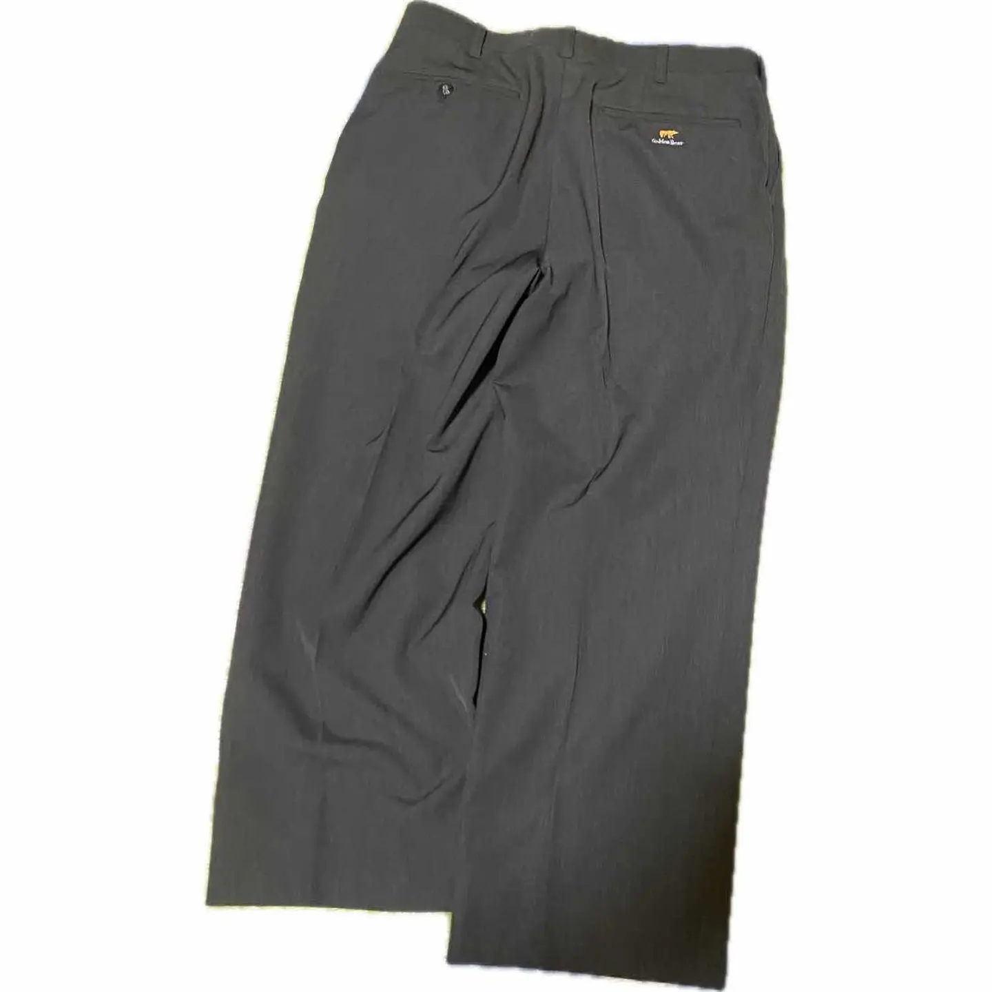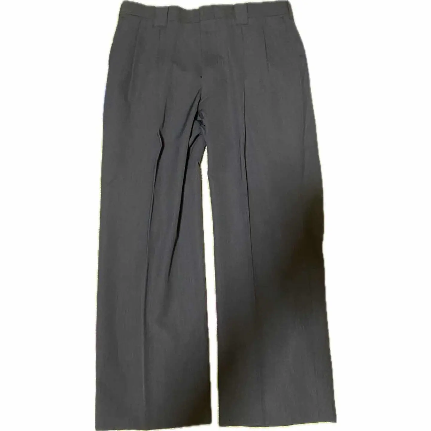 90s 美品 ゴールデンベアー EMINENT【特注】 ワークスラックスW82 •brand vintage GOLDENBear •data 90s vintage o.e.m【外部特注】limited、 •point EMINENT スラックスなどフォーマルウェアを作らせたら右に出るものはいないと言われている。老舗そちらにワークパンツとスラックスの要素を取り入れて作ってほしいと外部特徴した1本になります。見極めは簡単です。シルエットとこの時代のタグのやつは管轄はエミネントではないです。 美しいシルエットワークパンツともスラックスとも言える。でもスラックスベルトがないので、ワークパンツと言わせていただきますが、コーディネートのようにさらっと合わせるだけで全てのコーディネートに溶け込む美しいボトムはあなたのおしゃれのお供に絶対になりますので、かなりお買い得な価格で出しますので、ぜひこの機会によろしくお願いします ▷color◁ レザーグレー ※使いのブラウザにより色が変わってみえる場合あります ▷size◁ 平置き片面採寸【㎝表記】 表記size 【※ウエストのみ、メジャーで一周採寸】 ウエスト82ベルトループあり 股上30ハイ決まる 股下69 腿渡り31 裾幅23 シルエットが良すぎてカッコいい モデル170㎝/普通体型、30インチジャストな体型参考に、 ▷material◁ slacks系上質ポリ ▷condition◁ 美品 ※入念にチェックは、しておりますが、