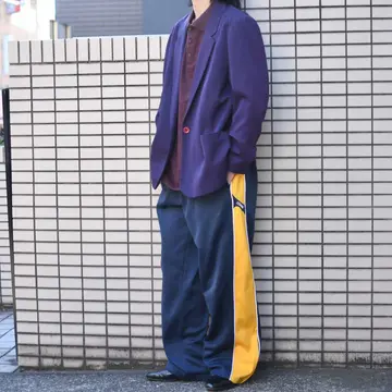 SIZE:- 着丈74cm 肩幅48cm 身幅60cm 袖丈62cm fabric/poly・wool 着用画像 173cm/58kg 妖艶な雰囲気と上品さ。 いつもより少し、攻めたスタイリングに こんなテーラードジャケットを落とし込んで みてはどうでしょう。 肩パットは抜くことで、より自然な肩のラインを 生んでくれるように手を加えており、 スラックスと合わせるのはもちろんですが、 トラックパンツやナイロンパンツで より個性を乗せるのも個人的に良いなと。 普段は動きやすさを重視して、 あまりこのカテゴリーを纏うことは少ないですが、 ”こんな個体なら”そう感じた個体です。 ※裏地に傷みあり。 ※撮影状況により、実物と多少色が異なる場合が ございます。 ※古着を取り扱っているため、気づかない汚れや ほつれ等がある場合がございます。 ※サイズは着用感で選んでおり、 表記サイズは説明欄の最初に記載しております。 古着 オーバーサイズ old vintage ヴィンテージ used 80's 90's アメリカ古着 ユーロ古着 POLO RALPH LAUREN Eddie Bauer OLD GAP LANDS' END ランズエンド LLBean エルエルビーン オールドギャップ エディーバウアー ラルフローレン ブルックスブラザーズ Brooks Brothers 紫 ジャケット などがお好きな方 #vintage #オーバーサイズ #old #used #90s #80s #古着 #ヴィンテージ #アメリカ古着 #ユーロ古着 #LLBean #エルエルビーン #EddieBauer #エディーバウアー #oldgap #オールドギャップ #LANDSEND #ランズエンド #NAUTICA #ノーティカ #ラルフローレン #POLORALPHLAUREN #ブルックスブラザーズ #BrooksBrothers #テーラードジャケット #ジャケット