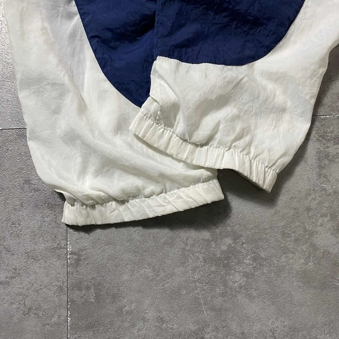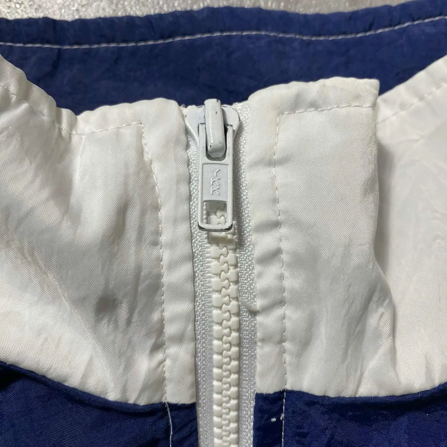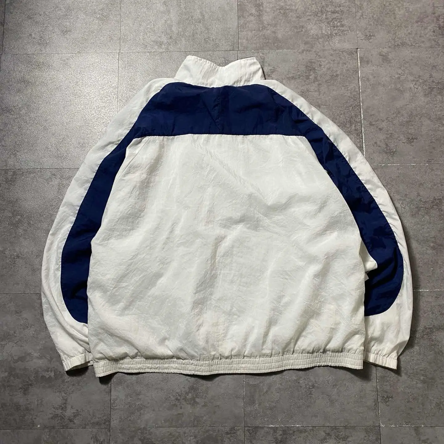 ○Size○ 表記→XL ・着丈71 ・身幅71 ・袖丈83(ラグランスリーブ) (cm) ○Color○ ・ホワイト、ネイビー ○Material○ ・ボディ白い部分→100%ポリエステル ・ボディネイビーの部分→100%ナイロン ・裏地→65%ポリエステル 35%コットン ○Condition○ ・袖先、裾先のゴム伸びあり ○Caution○ 当店で取り扱っている商材は全て『古着』となっております。 そのため、多少の状態難(ほつれ、傷、汚れ、リブの伸び、使用感、擦れ、色あせ、etc)がある場合がございます。 新品同様の完璧なお品物をお求めの方は当店でのお買い物を控えて頂きますよう宜しくお願いします。 また、購入された商品に関しましては、購入日時から起算して『72時間以内に』発送手続きの方を取らせて頂きます。 お急ぎの場合は購入前に当店オンラインストアの方にお問い合わせ頂きますよう宜しくお願いします。 26/715