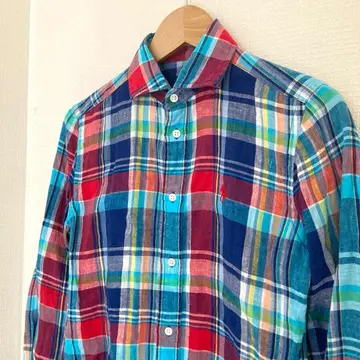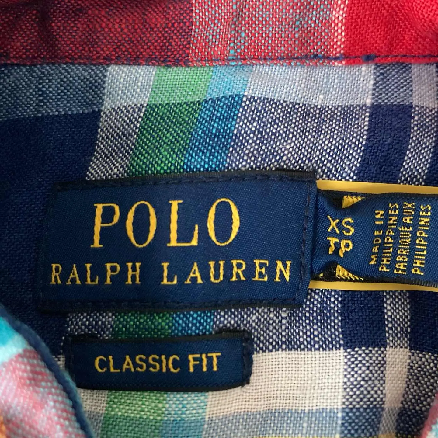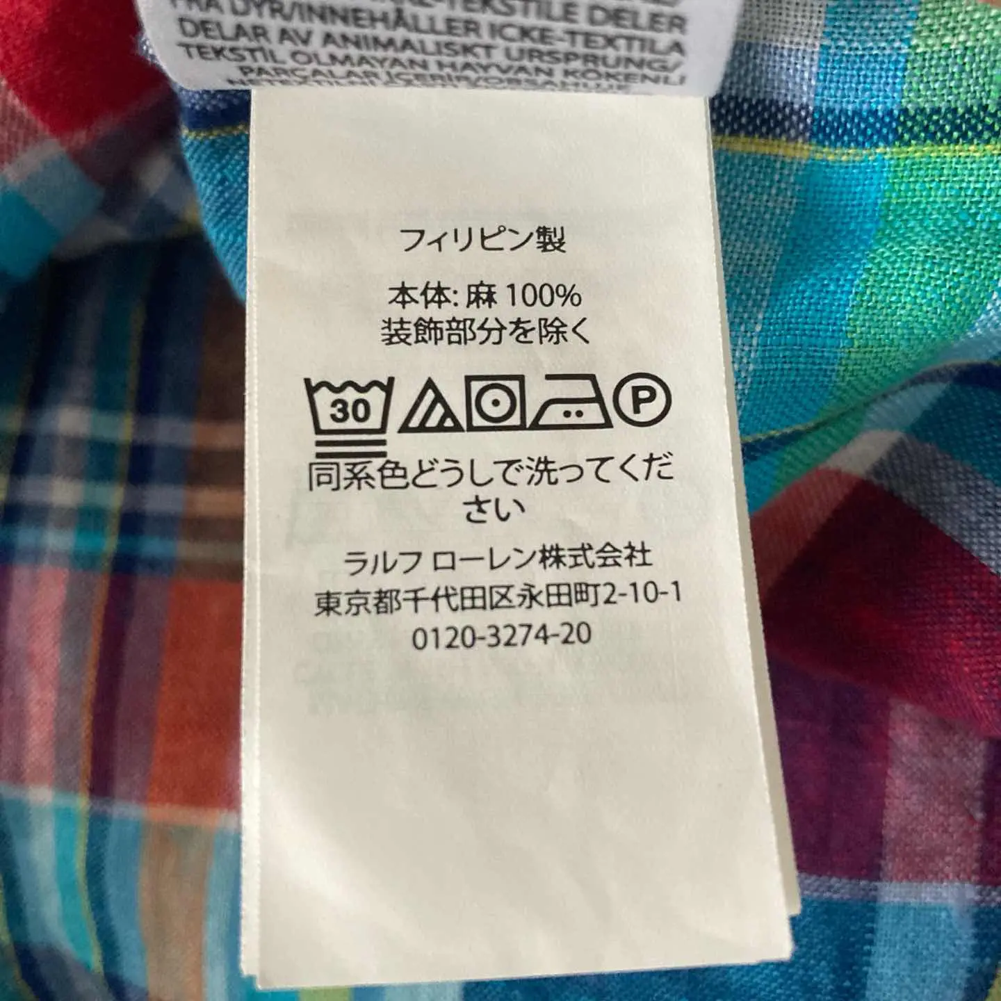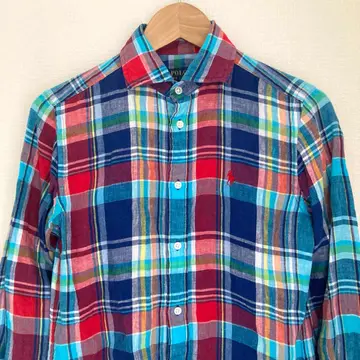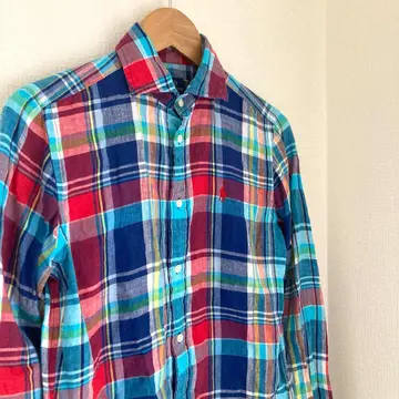 ポロラルフローレン リネンシャツ 麻 チェック 長袖 薄手 カラフル XS