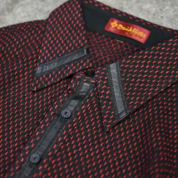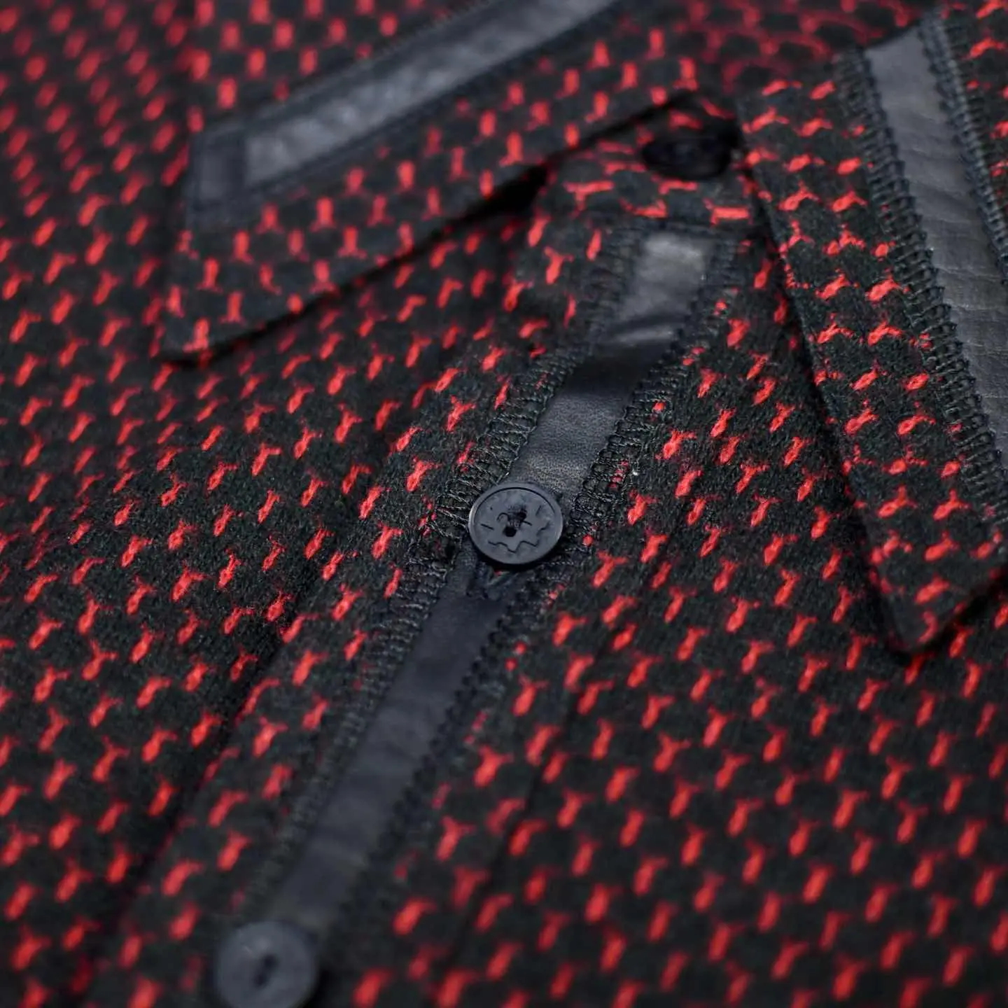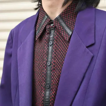 古着 デザイン フェイクレザー 切り替え ジャガード織り ポロシャツ