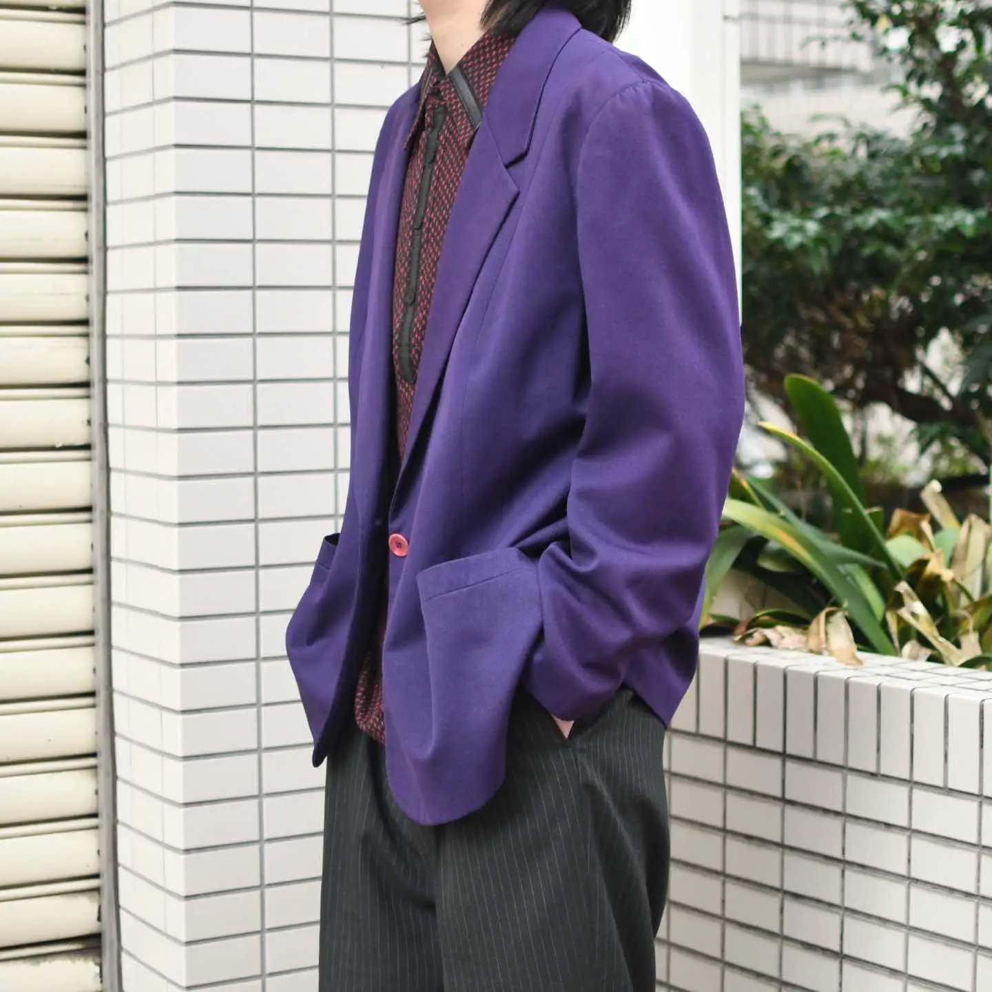 古着 80's パープル レーヨン テーラードジャケット ジャケット