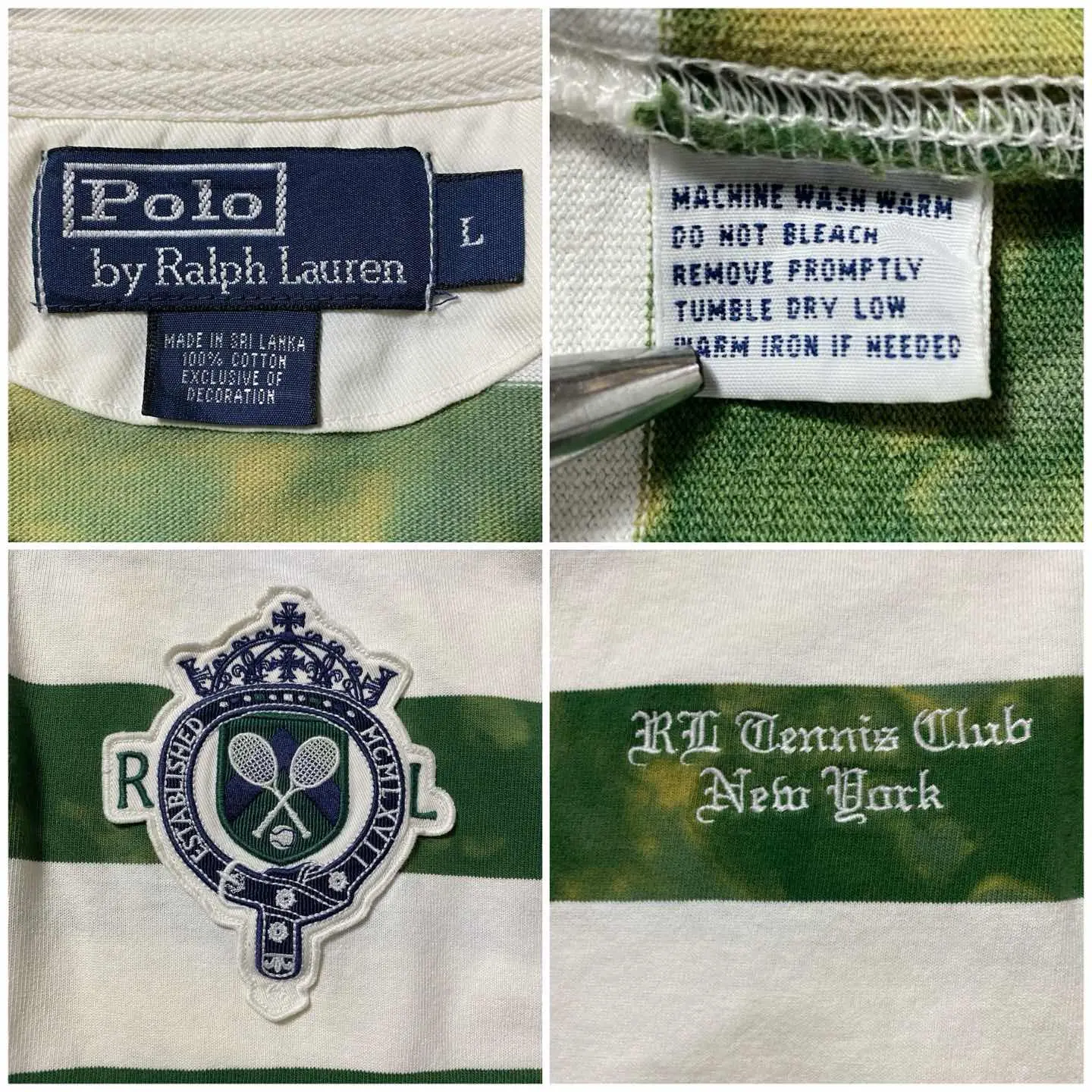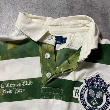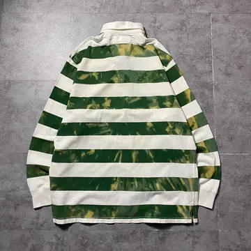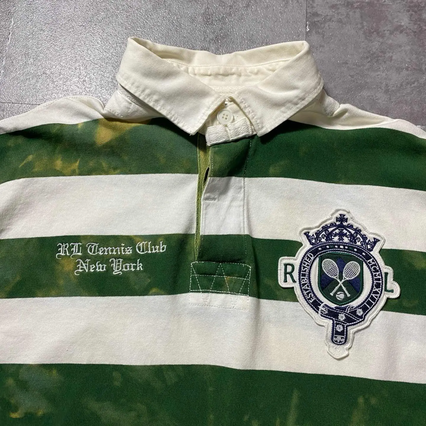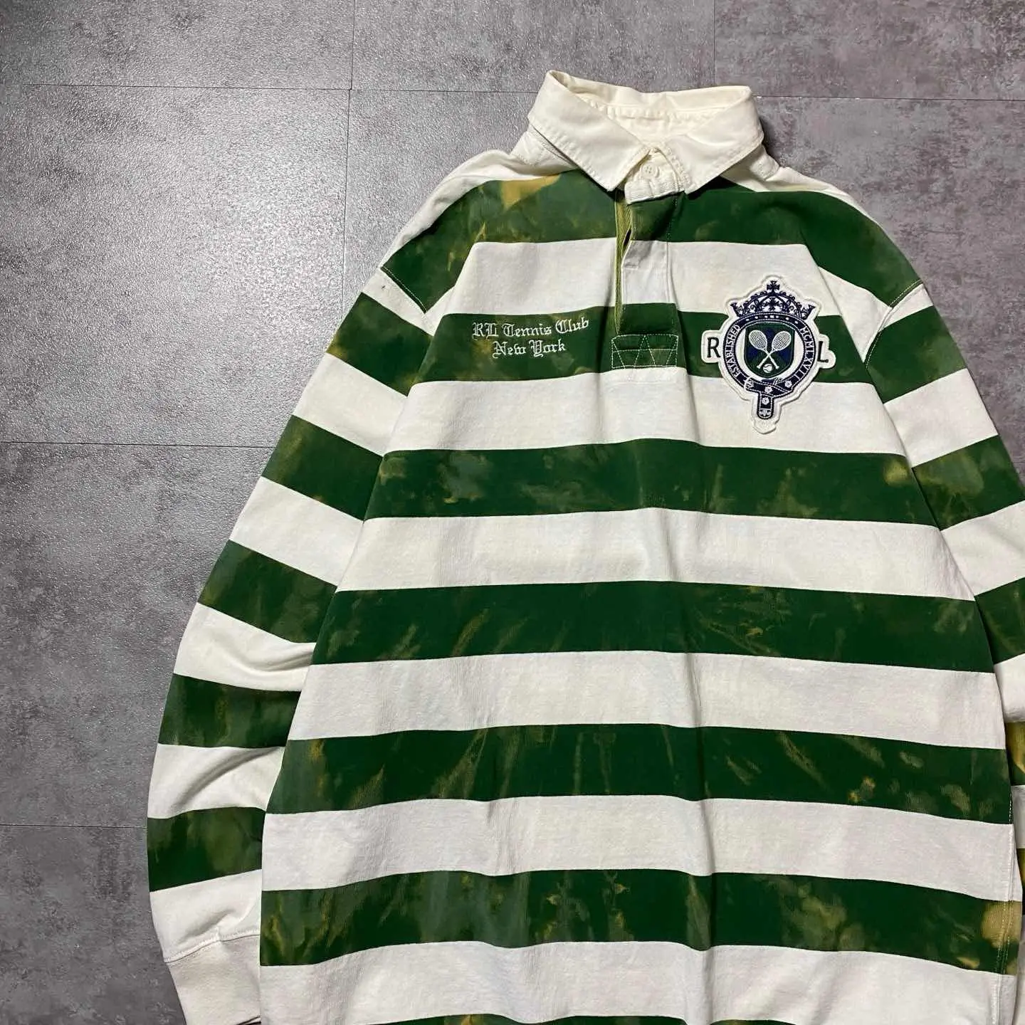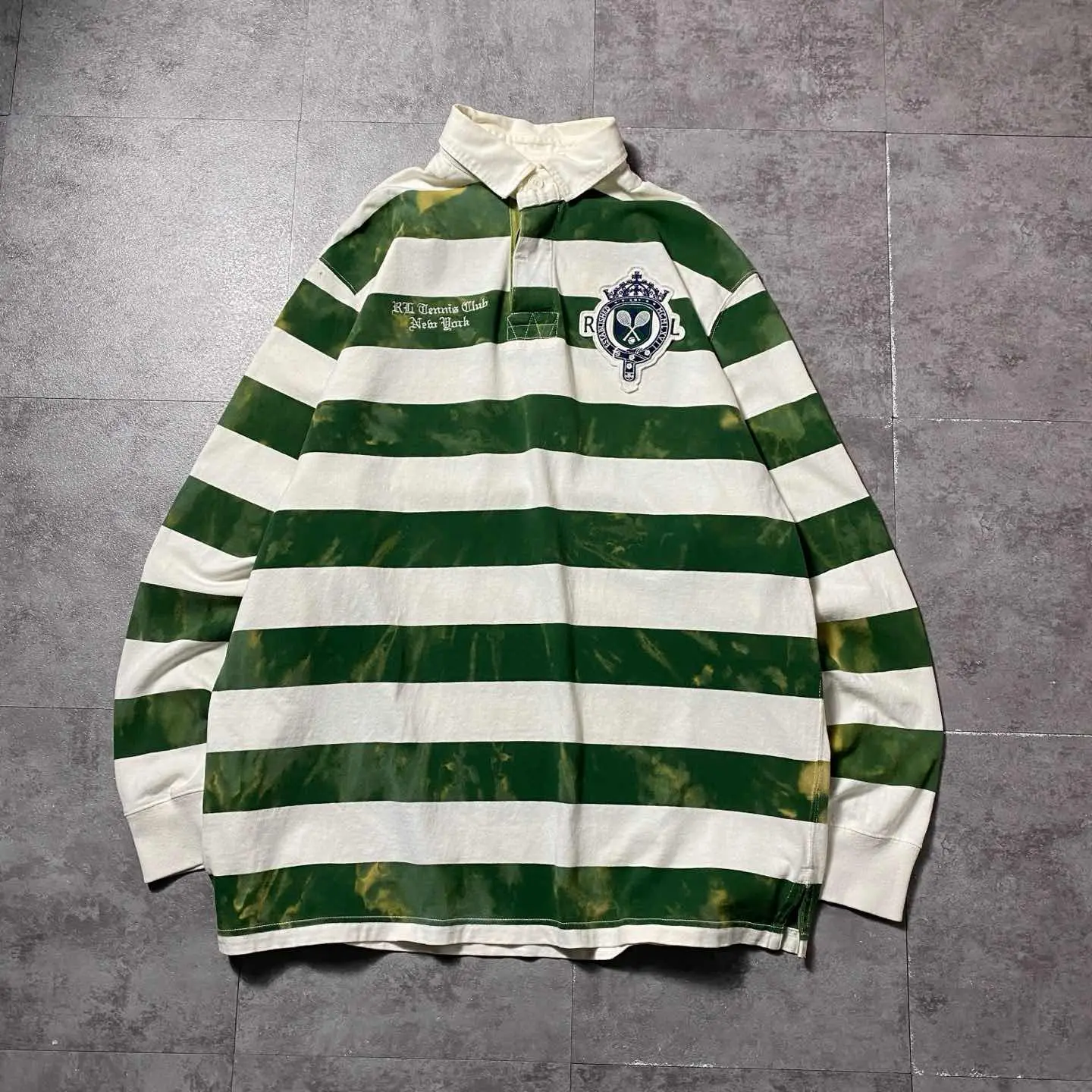 90's ポロバイラルフローレン 刺繍×ワッペン ボーダー ブリーチ加工 ラガーシャツ