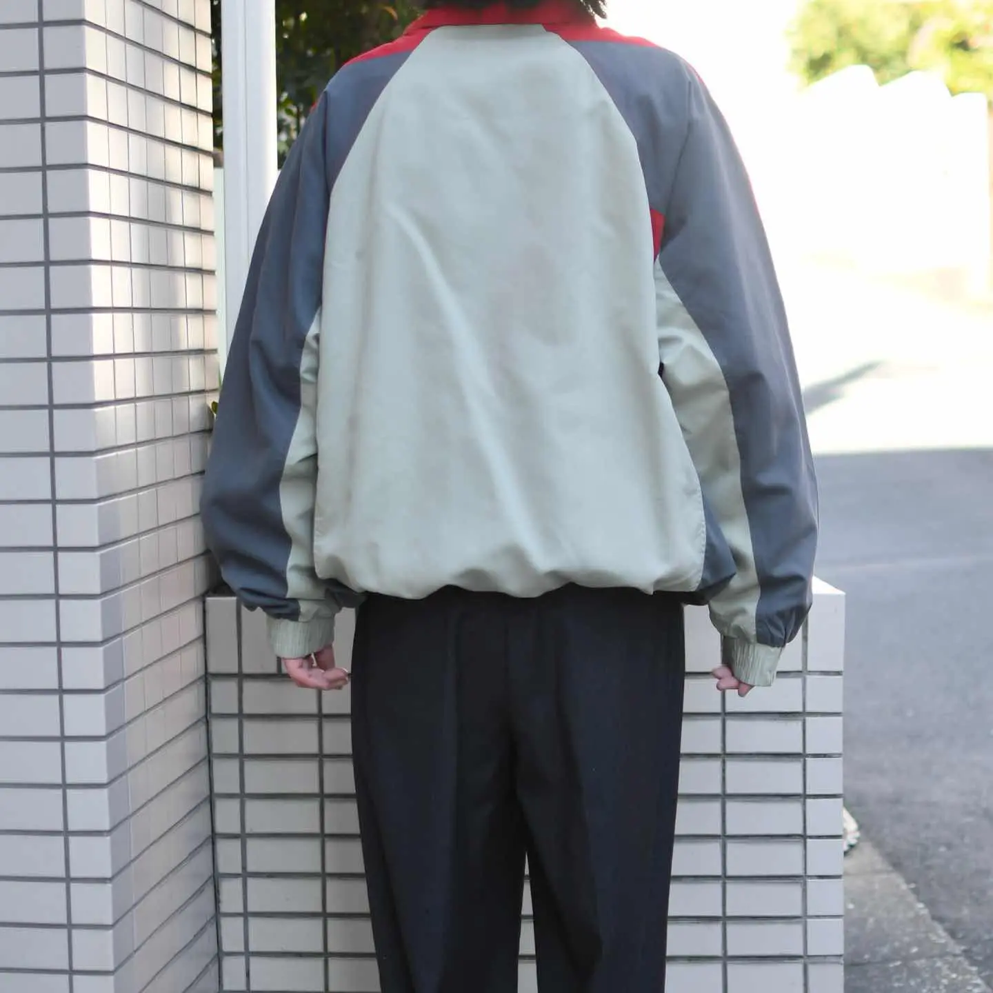 古着 スムース生地 切り替え デザイン ナイロンジャケット ブルゾン フルジップ