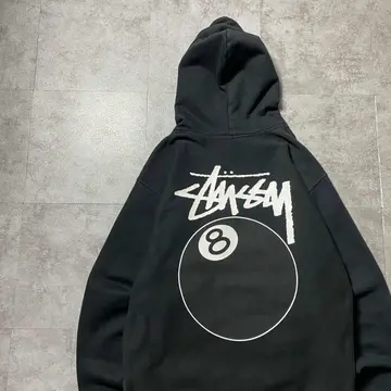 stussy 8ボール バックプリント ブラック スウェット パーカー フーディ