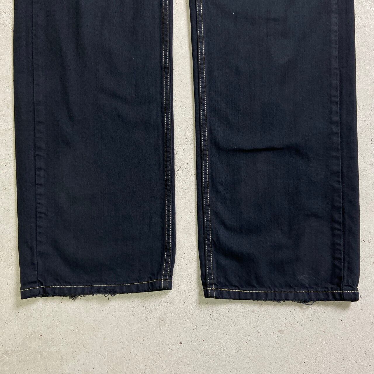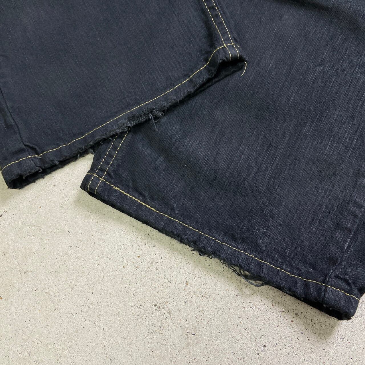 ■Levi's リーバイス 559 ブラックデニムパンツ ワイドストレート 後染め メンズW36 古着 アメカジ ヴィンテージ VINTAGE ジーンズ 黒染め ワイドデニム 黒色【デニムパンツ】/ブラック ◎シルバータブのLOOSEに近い 程よくバギーした太ストレートシルエット 価格的にシルバータブよりも買いやすく、 緩く履けるデニムをお探しの方にピッタリのモデル こちらはブラックに後染めを施しており、 古着で探すとなかなか無い太く履けるブラックデニムにカスタムしました 染まらずにに浮かび上がったステッチもポイントです 【ブランド】Levi's リーバイス 【サイズ】表記 W36 L32 ※計測値をご確認ください。 ウエスト(平置き×2)…92 ワタリ幅…35 股上…28.5 股下…78 裾幅…22.5 【生産国】メキシコ製 【素材】コットン100% 【状態】裾に若干のダメージがあります。 その他目立った汚れ等はありません。 画像にてご確認ください。 【c241009214】 ※古着は洗濯、検品などのケアを行っております。(新品・デッドストックは洗濯していません。) ※モニターの発色により実物と異なる場合がございます。予めご了承ください。 ※ 海外直輸入USED品になります。
