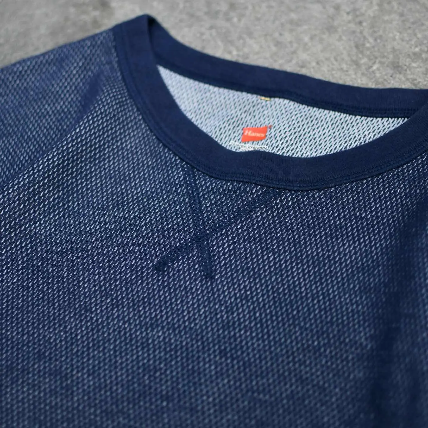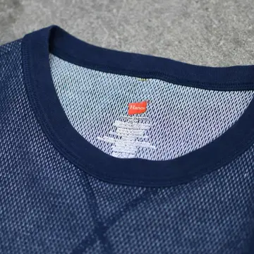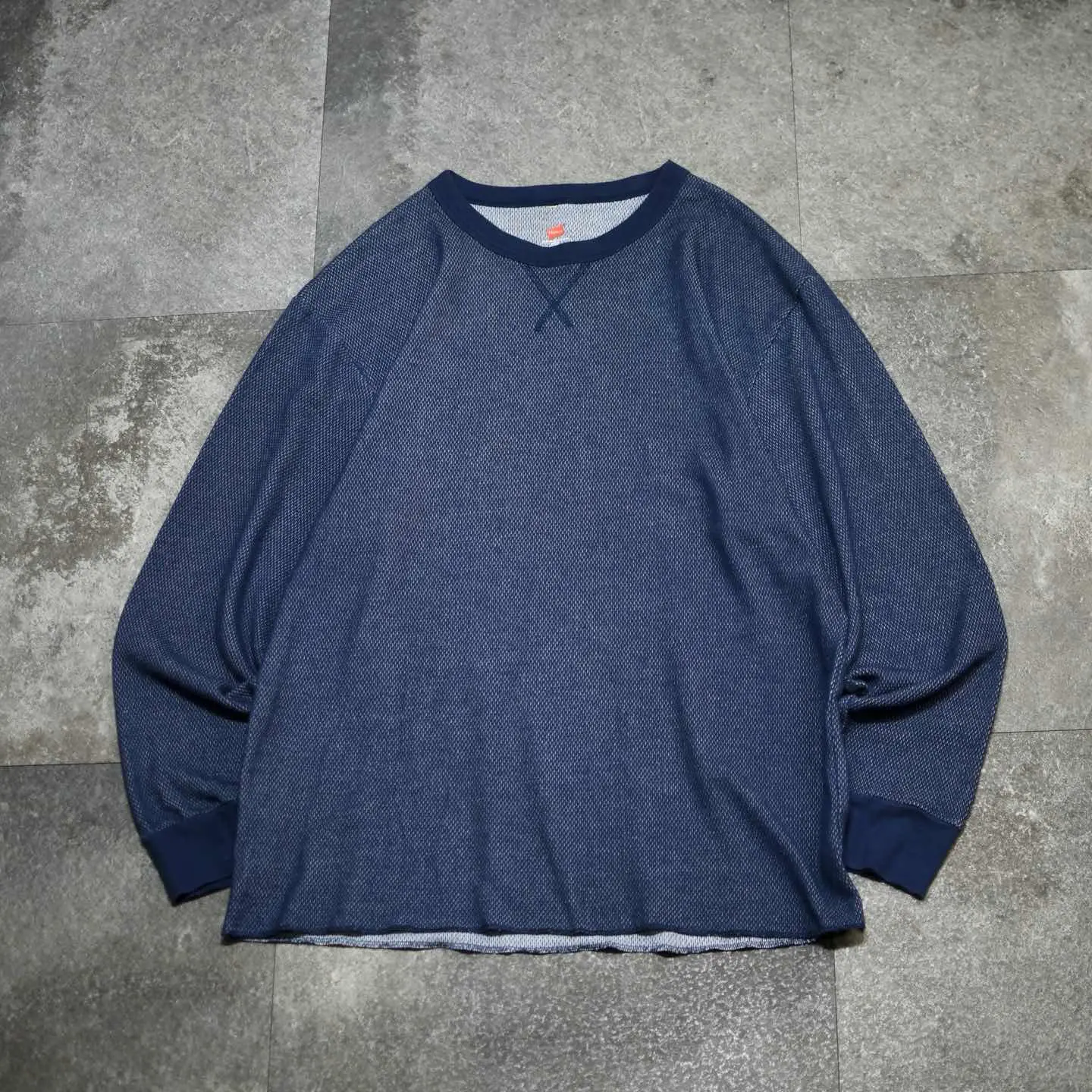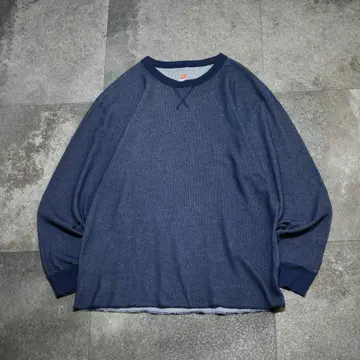 古着 Hanes サーマル カットソー ロンT 長袖Tシャツ ネイビー 紺色