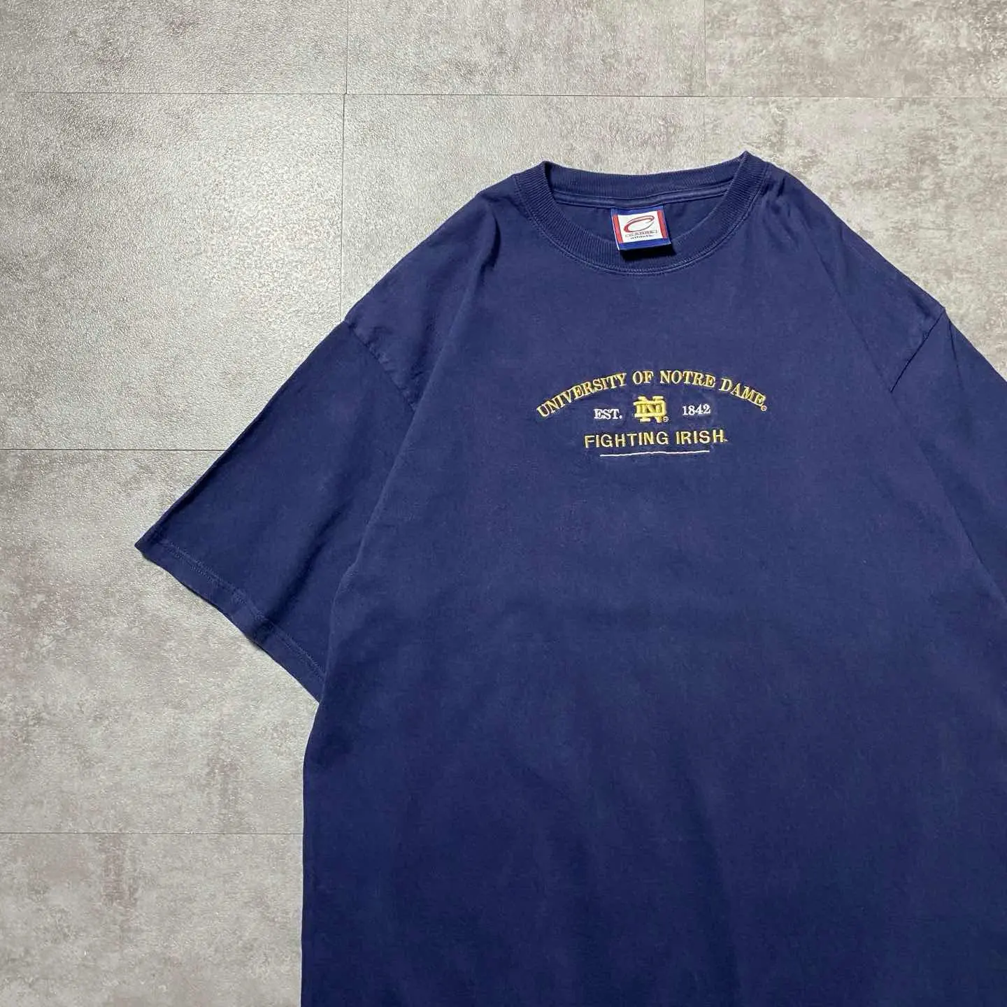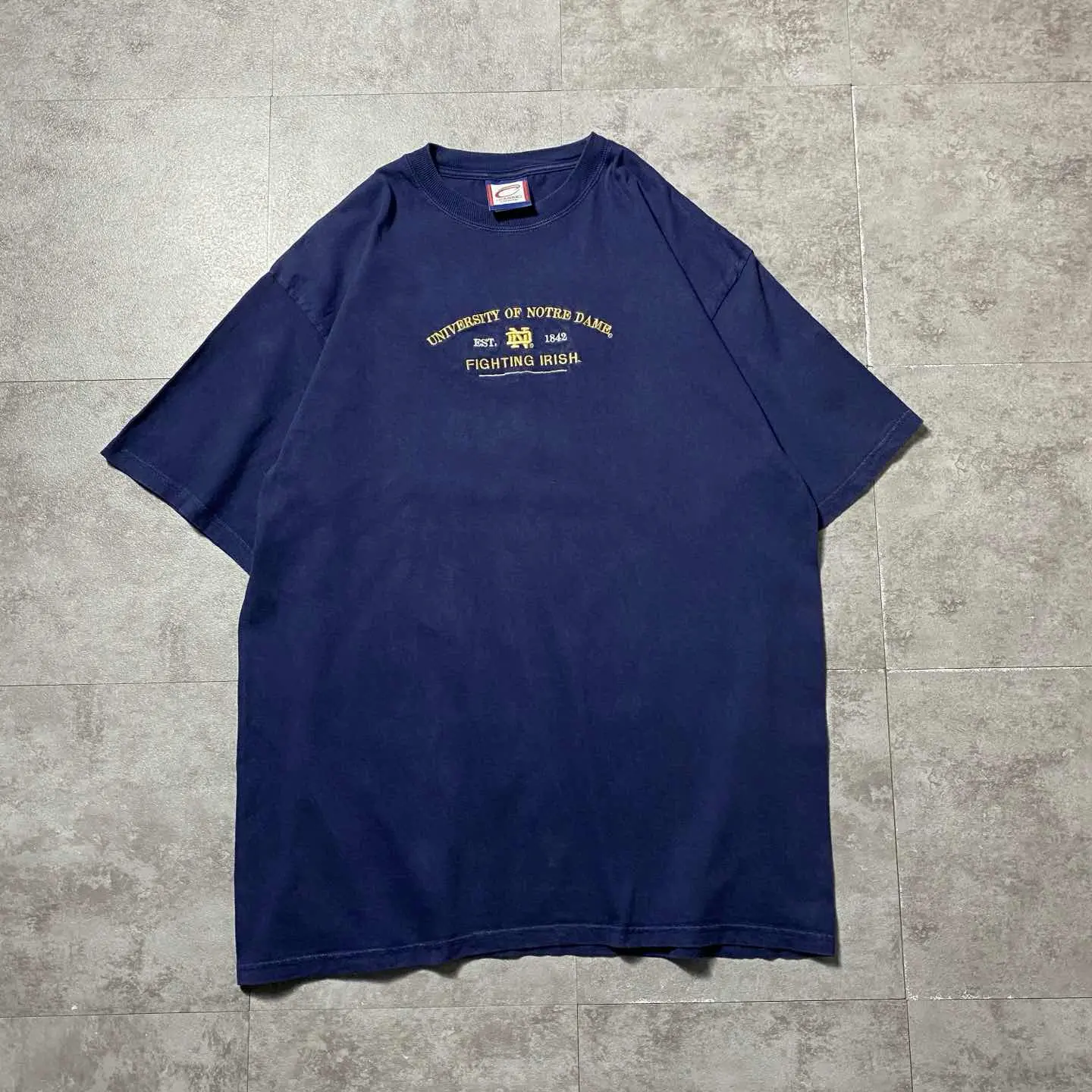 00s CADREノートルダム大学ファイティングアイリッシュ 刺繍ロゴ Tシャツ