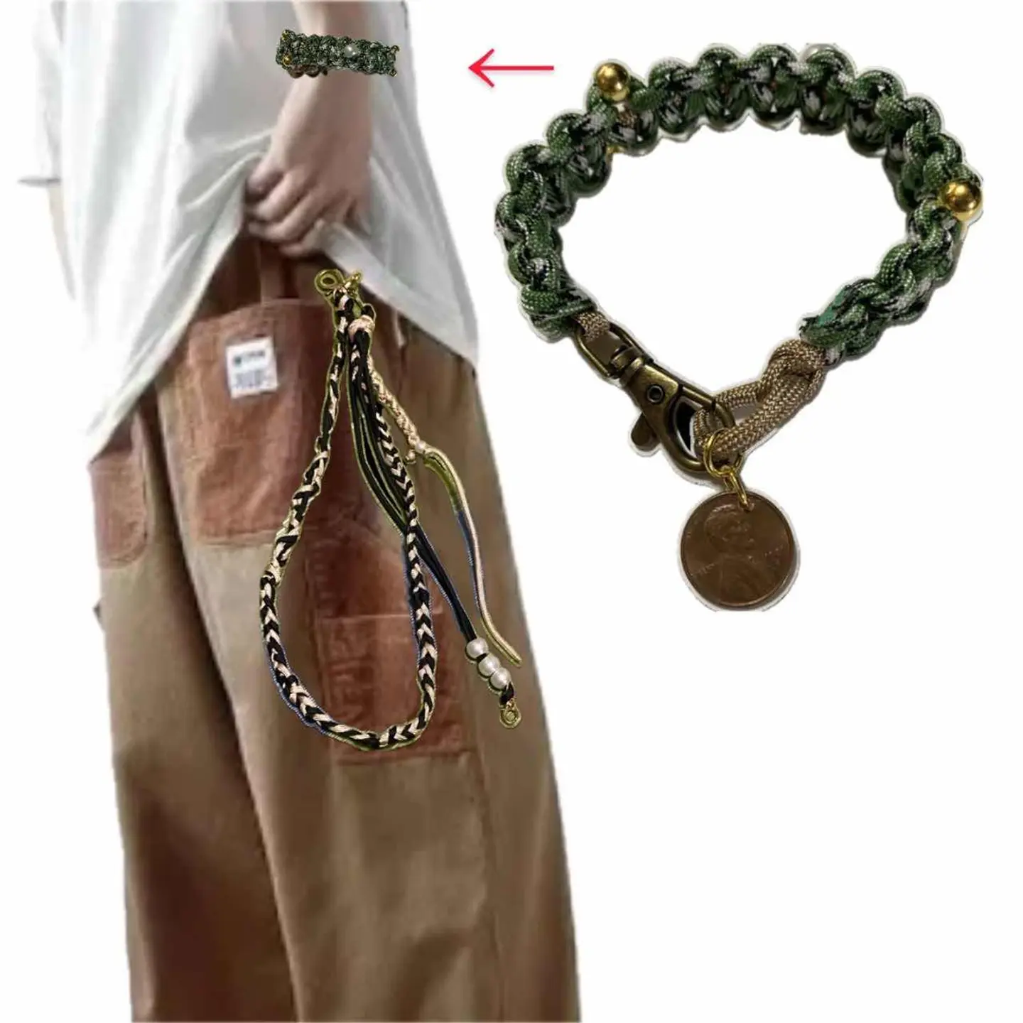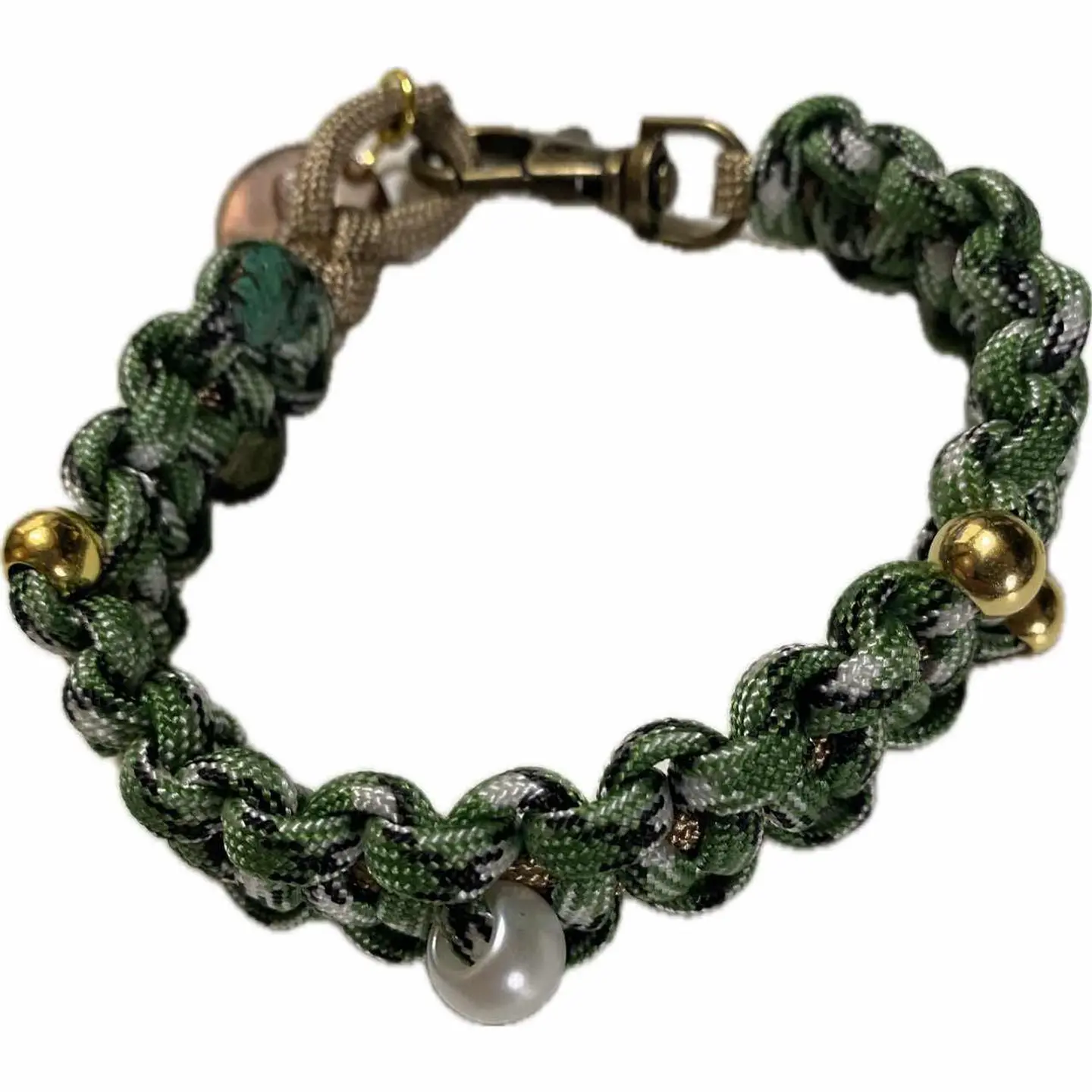 hand made 70s coin 編み込みテックコード使用ブレス アウトドアに使われる。強化コード、本来は、安全のために使われる、テックといったのは、アーバンから、アウトドアまで、使えるテクニカルのいみ、でテックブレスとなる、 正直バチ高いです、このコード笑、 それを、2色4本つかい手作業で、丁寧に、編み、 ナスカンつかい、 70s vintageコインとりつけ、Gビーズ、Sビーズを贅沢に、編み込みなが、取り付けてます、 技術ないと100%できません。 そもそも使ったパーツが結構高額なのは、理解下さい また、何度も明記しますが、レーザーとかシルバーにこだわる人いますが、ブレスレットはランニングコストとケアめんどくさくないですかこれ水陸両用です。だからテックブレスと言ってます。 そして申し訳ないですが、このテックコードって言うやつはレザーとかシルバーよりも確実にタフです。それではご検討よろしくお願いいたします。コーディネートを見たらわかると思いますが、わざと私が作ったアクセサリーを全てつけてます。これを取り除いたらどうなります?シンプルすぎて、個性0です、申し訳ないですが、記憶にも残りません。 そういうシンプルな季節にこそアクセサリーに力を入れるのがおさるさんなのは覚えていたほうがいいです。 【カラー】 グリーンベース 【material】 テックアウトドアコード メタルナスカン ビーズ、 となります コイン銅mix高級 【状態】 不具合あるわけないら 最強ヴィンテージ声以外は全部新品です。新品未使用と言わせていただきます。