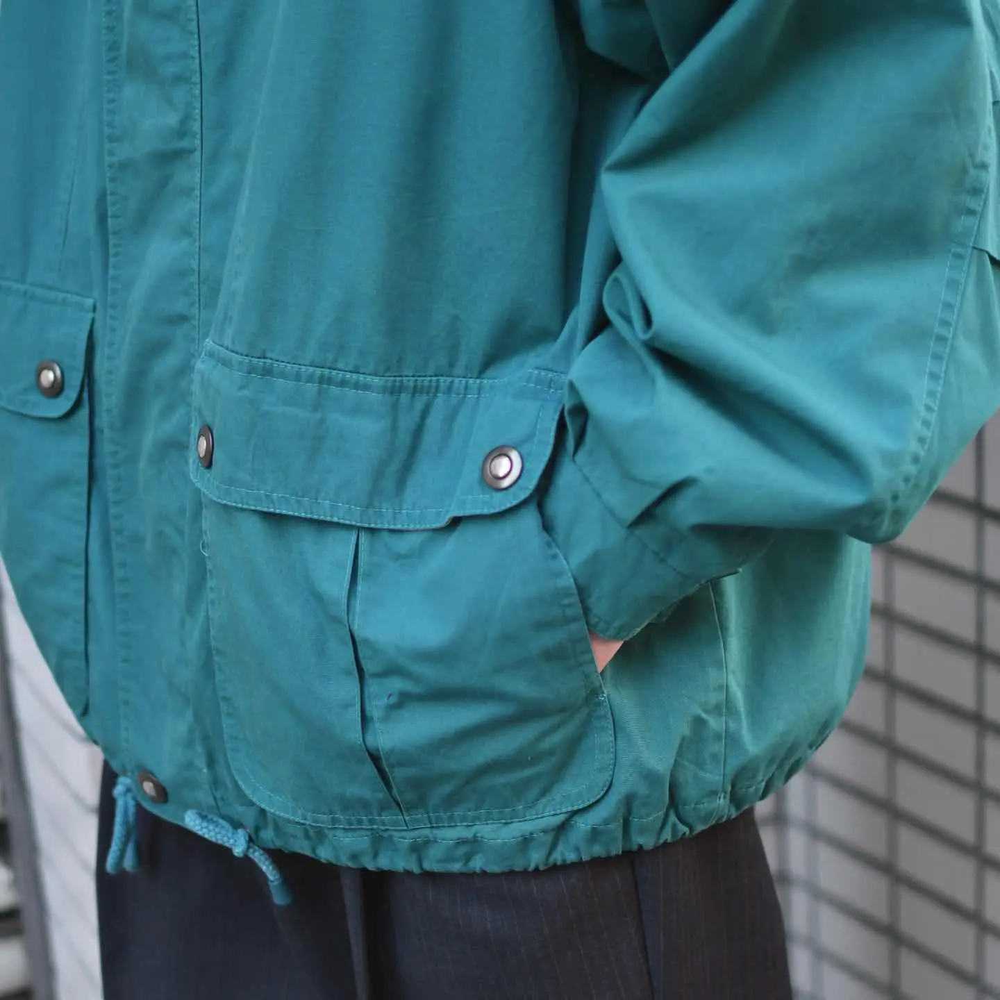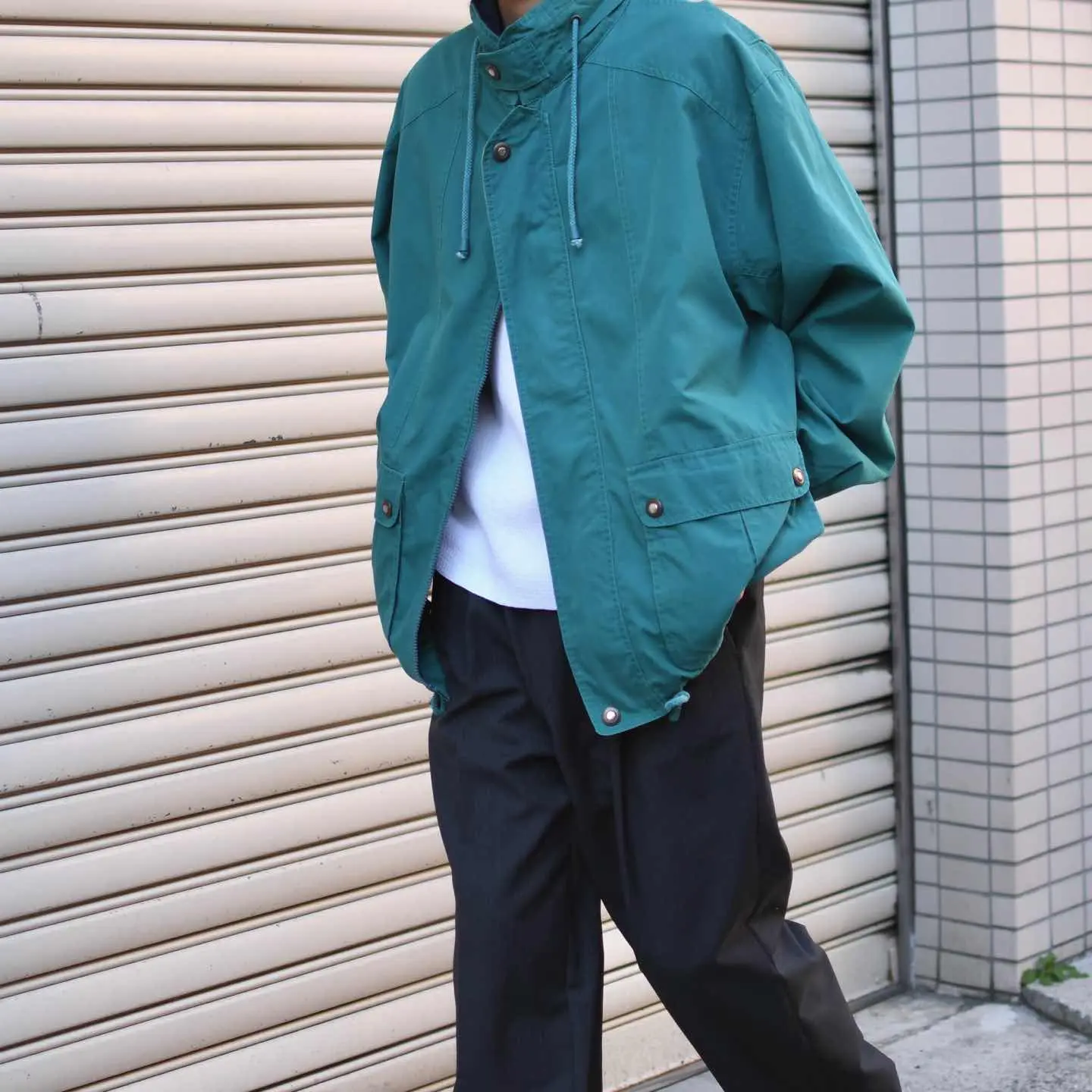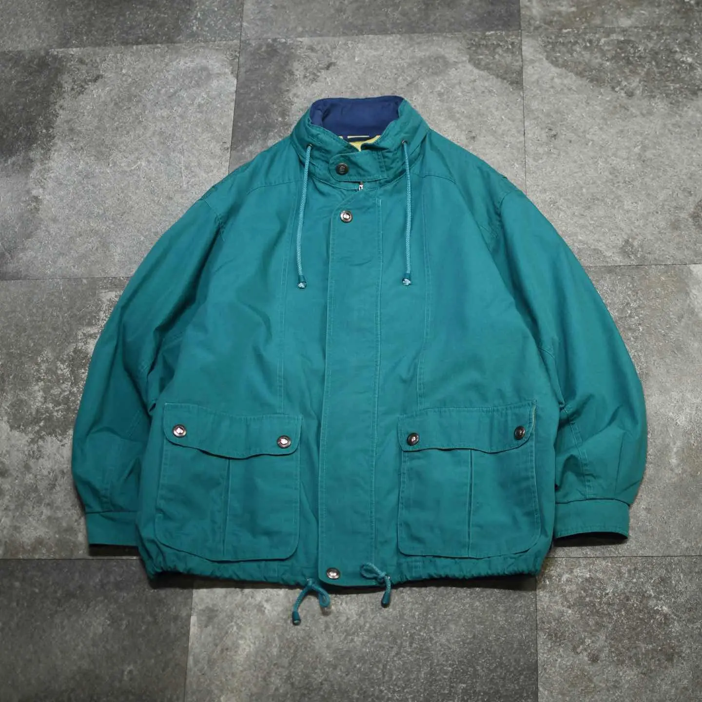 SIZE:L 着丈75cm 肩幅55cm 身幅73cm 袖丈61cm fabric/cotton・poly 着用画像 173cm/58kg 1923年、アメリカで創業したブランド ”LONDON FOG” 元々軍用のレインコートも手掛けていたこともあり、1970年代にはアメリカのレインコートの 2/3を占めていたそう。 古着でもトレンチコートをはじめ、”長物”では 評価されていますが、個人的にはそこから外れた ”変わり種”によく惹かれます。 こちらもそんな一着。 鮮やか過ぎないカラーで落とし込みやすく、 ダブルジップやドローコードで好みのシルエットに。 また、ハンドウォーマーポケット付きなのが推し◎ 熟れた雰囲気を纏うミドル丈、がばっと羽織る感じでどうぞ。 ※撮影状況により、実物と多少色が異なる場合が ございます。 ※古着を取り扱っているため、気づかない汚れや ほつれ等がある場合がございます。 ※サイズは着用感で選んでおり、 表記サイズは説明欄の最初に記載しております。 オーバーサイズ old vintage ヴィンテージ used 80's 90's アメリカ古着 ユーロ古着 POLO RALPH LAUREN Eddie Bauer OLD GAP LANDS' END ランズエンド LLBean エルエルビーン オールドギャップ エディーバウアー ラルフローレン ブルックスブラザーズ Brooks Brothers ブルゾン 水色 ライトブルー などがお好きな方 #vintage #オーバーサイズ #old #used #90s #80s #古着 #ヴィンテージ #アメリカ古着 #ユーロ古着 #LLBean #エルエルビーン #EddieBauer #エディーバウアー #LANDSEND #ランズエンド #NAUTICA #ラルフローレン #POLORALPHLAUREN #LONDONFOG #マウンテンパーカー #ジャケット