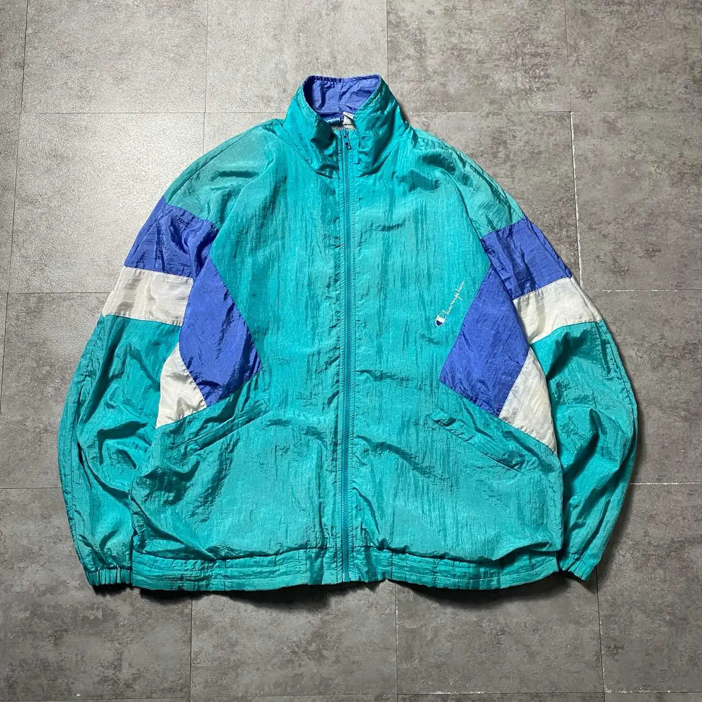 90s チャンピオン 刺繍ロゴ クレイジーパターン ナイロンジャケット