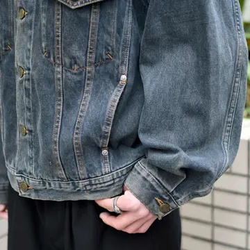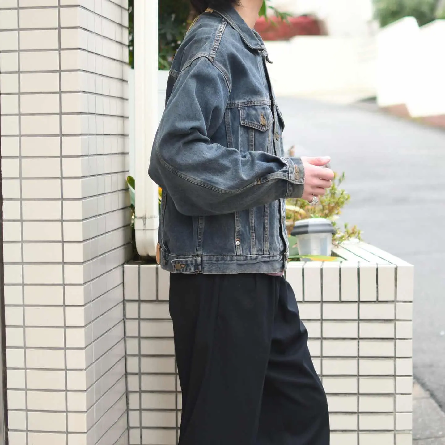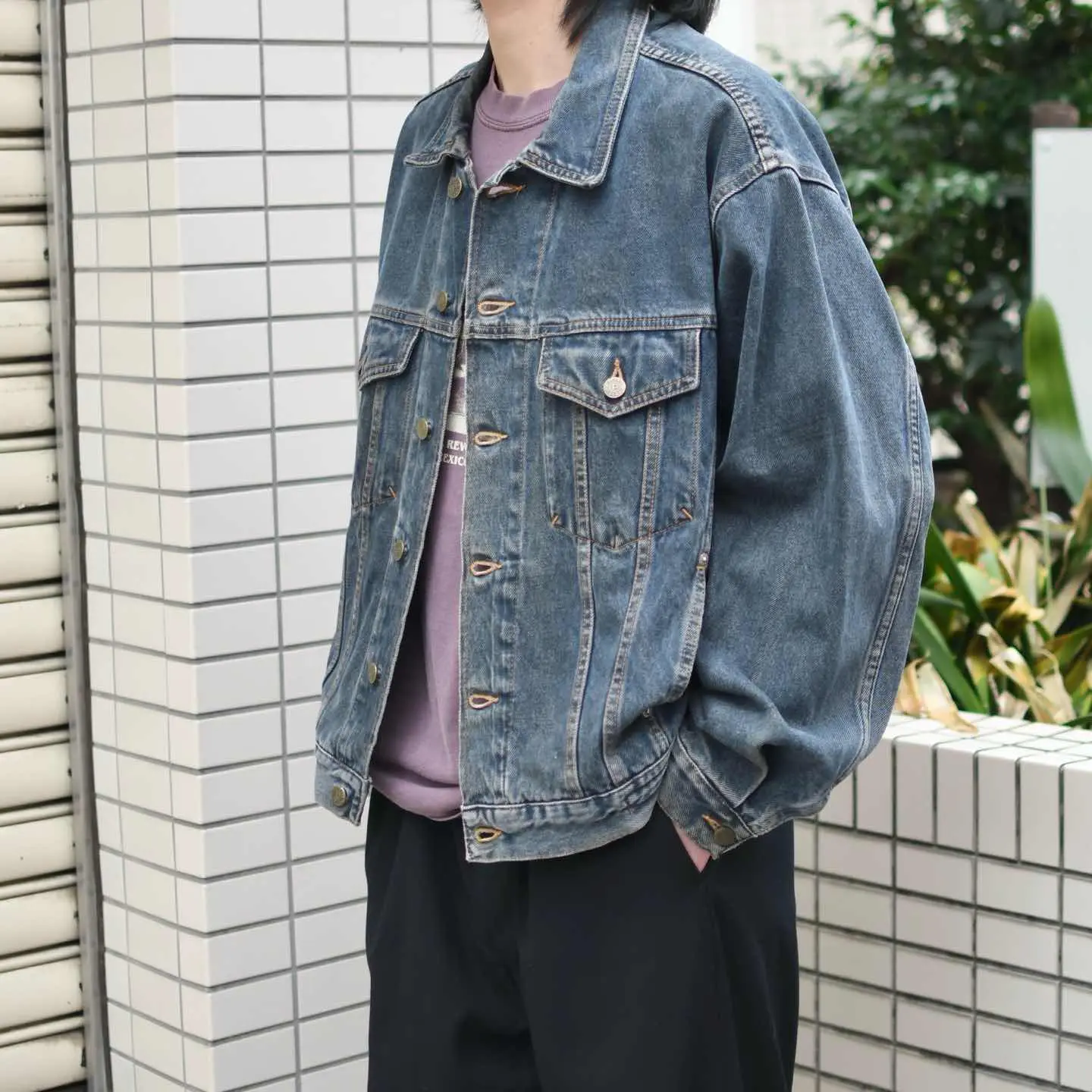 SIZE:M 着丈62cm 肩幅55cm 身幅69cm 袖丈60cm fabric/cotton 着用画像 173cm/58kg LEVI'Sをはじめとする数多くのブランドが手掛けるデニムジャケットですが、中でも異彩を放っていたこちらの個体。 ブランドは1973年、イギリス・ロンドンで 創業を始めたデニムブランドのようです。 濃紺のデニムジャケットを黒染めしたかのような、 独特なフェード感を兼ね備え、身幅もしっかりと ワイドでシルエットまで抜け目の無い逸品。 デニムジャケットという数多く存在する アイテムだからこそ、こんな差別化出来る 個性を持ち合わせた一着を手元にどうでしょう。 ※撮影状況により、実物と多少色が異なる場合が ございます。 ※古着を取り扱っているため、気づかない汚れや ほつれ等がある場合がございます。 ※サイズは着用感で選んでおり、 表記サイズは説明欄の最初に記載しております。 オーバーサイズ old vintage ヴィンテージ used 80's 90's アメリカ古着 ユーロ古着 POLO RALPH LAUREN Eddie Bauer OLD GAP LANDS' END ランズエンド LLBean エルエルビーン オールドギャップ エディーバウアー ラルフローレン ブルックスブラザーズ Brooks Brothers ネイビー 紺色 Gジャン などがお好きな方 #vintage #オーバーサイズ #old #used #90s #80s #古着 #ヴィンテージ #アメリカ古着 #ユーロ古着 #LLBean #エルエルビーン #EddieBauer #エディーバウアー #oldgap #オールドギャップ #LANDSEND #ランズエンド #NAUTICA #ノーティカ #ラルフローレン #POLORALPHLAUREN #BrooksBrothers #デニムジャケット #ジャケット #トラッカージャケット