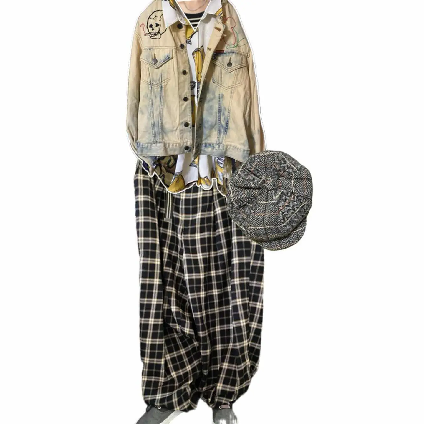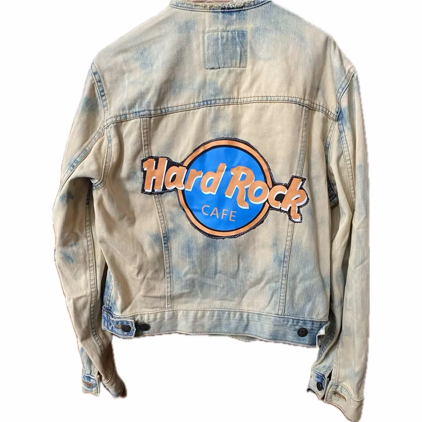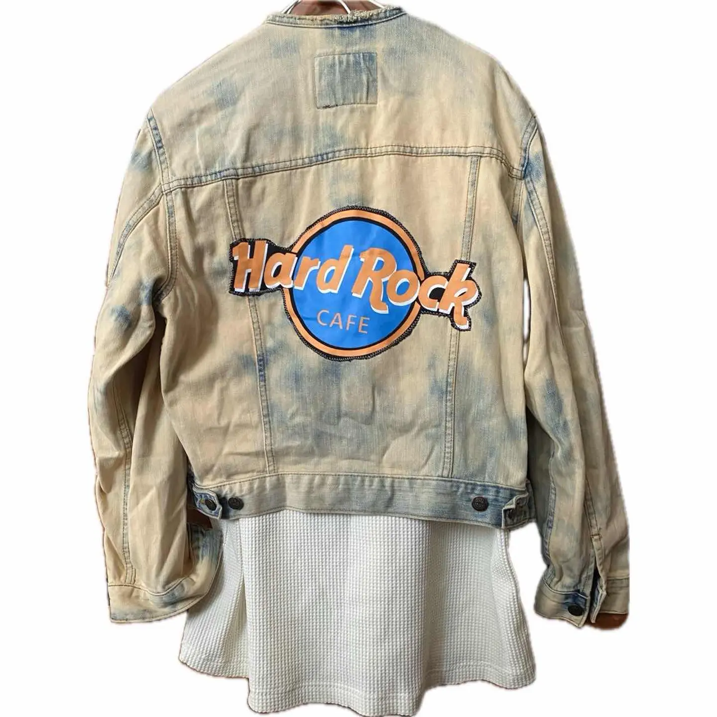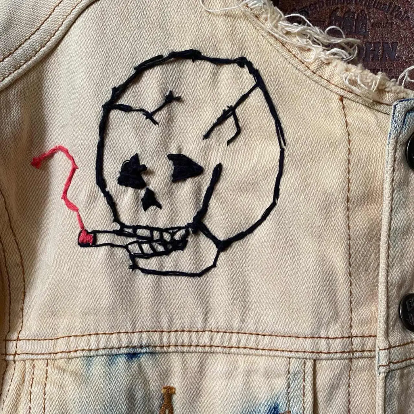 90s【コレクター必見】 MV602、廃盤 スカル刺繍Gジャン 赤タグ 90年代ヴィンテージのビックジョンの惜しまれながら生産終了になったMV602 赤ネーム、レザータグ、シリアルと、半端ないヴィンテージポイント全て残っているデッドストックをさらにかっこよくした。まずブリーチしてノーカラーにしてカットオフですね。ほつれ止め当たり前してます。 胸にスモーキングスカルフラワーの刺繍を手作業で施し、さらにバックにハードロックカフェのTシャツを切り縫い付けました。前後どちらでもパーフェクトだし、そもそもMV602は、知識ない人は安いものと勘違いしてるかもしれませんが、全く違います。めちゃくちゃ激レアですよ。だって復刻すらしないと言うポリシーの塊ですよ。 そしてさらにこのタイプが人気あるのはショート丈タイプなのに、めっちゃ着回しが効くことです。コーディネート参考にしてください。さらにリメイクのカーゴパンツとゆるだぼのチェックパンツそうアメリカンヨーロピアンカジュアルですね。ちなみに、インナーの柄シャツも私が作ったやつです。Tシャツだろうがなんだろうが。シャツだろうが、着回しききます、 さらに、世界に1つのデザインだったら、少しでも気になった人は確実にさせる自信がありますのでご購入ください ▷color◁ ブリーチカラー ※ブラウザで異なる場合ありますがかなり実物には、近づけてます、 ▷size◁ 平置き片面採寸【㎝表記】 表記size M表記だが、Lはある、 着丈/60 身幅/53 身幅L 肩幅/46 袖丈 /61 DSは袖はハンガー採寸 ※多少の誤差は理解下さい 170/Mジャスト体型の私が着て、✔️参考に ジャスト オーバーサイズ✔︎ ビックサイズ 【素材】 デニム 【状態】 最強、デットストック惜しみなく使った 検品、洗濯、検品で、3回チェックして発送しますので、ご安心して、お買い求め下さい!!
