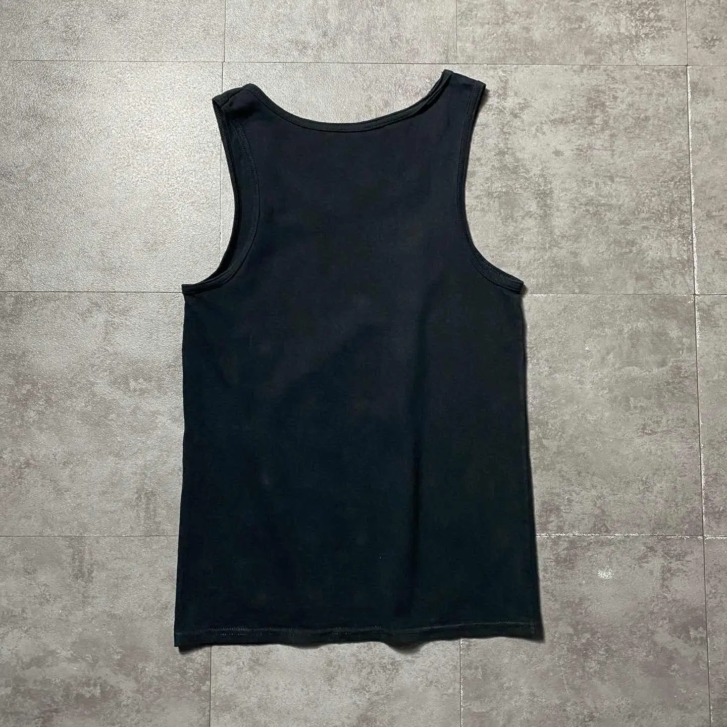 ◯ Explanation ◯ 映画「JAWS」のアイコニックなポスタービジュアルを大胆に落とし込んだタンクトップ。 フロント全面に配置されたグラフィックはインパクト抜群で、1枚でスタイリングの主役になる存在感のあるデザイン。 ブラックボディに映える配色で、ストリートから夏のラフスタイルまで幅広く対応可能。 タンクトップならではの抜け感もあり、Tシャツとはまた違った雰囲気で着こなせる1着。 ショーツやデニムと合わせたシンプルなスタイリングでもしっかりキマる、夏に重宝するアイテムです。 “わかりやすくカッコいい”グラフィックを求めてる人におすすめ。 ○Size○ 表記→S ・着丈63 ・身幅43 (cm) ○Color○ ・ブラック ○Material○ ・100%コットン ○Condition○ ・目立つ傷や汚れなし ○Caution○ 当店で取り扱っている商材は全て『古着』となっております。 そのため、多少の状態難(ほつれ、傷、汚れ、リブの伸び、使用感、擦れ、色あせ、etc)がある場合がございます。 新品同様の完璧なお品物をお求めの方は当店でのお買い物を控えて頂きますよう宜しくお願いします。 また、購入された商品に関しましては、購入日時から起算して『72時間以内に』発送手続きの方を取らせて頂きます。 お急ぎの場合は購入前に当店オンラインストアの方にお問い合わせ頂きますよう宜しくお願いします。 26/735