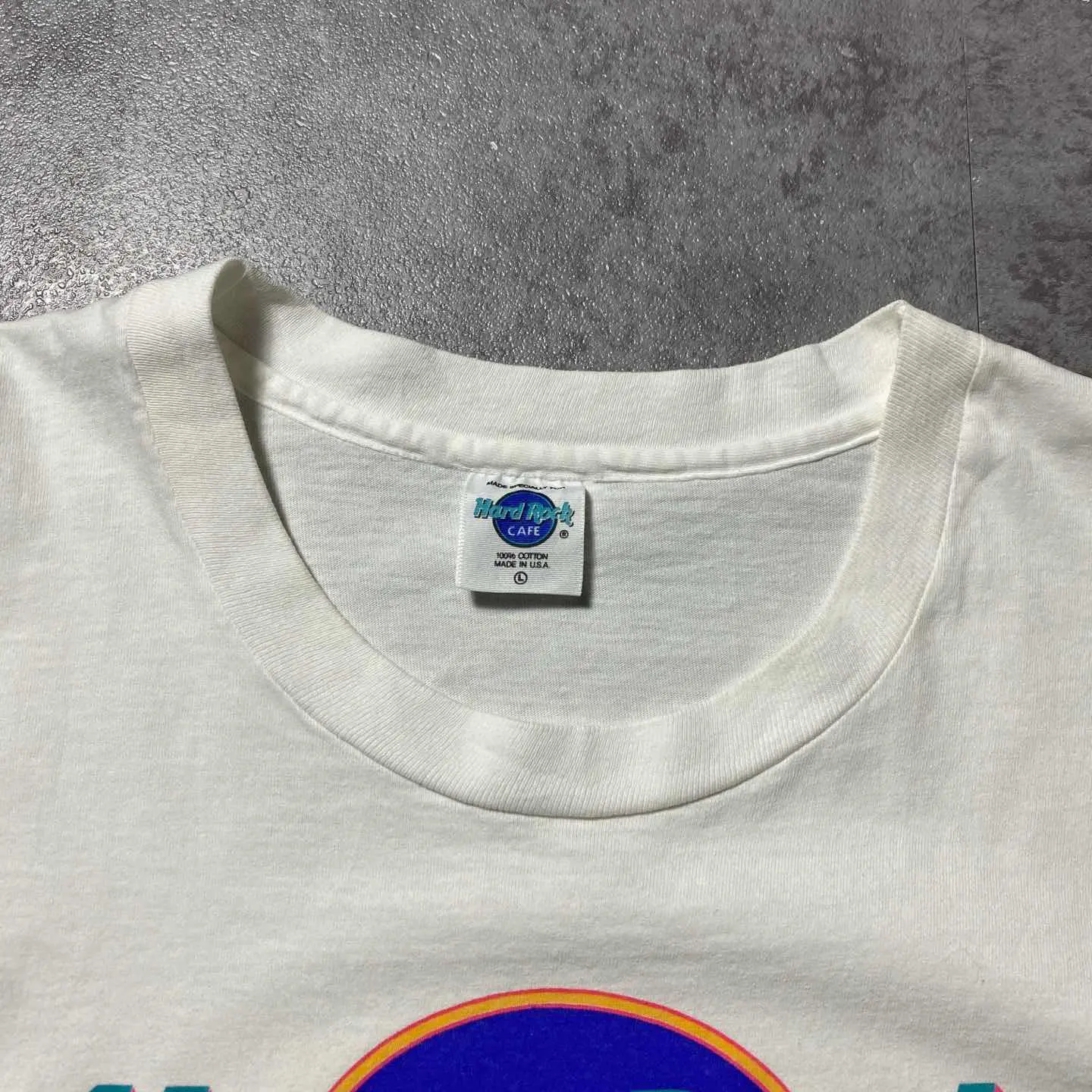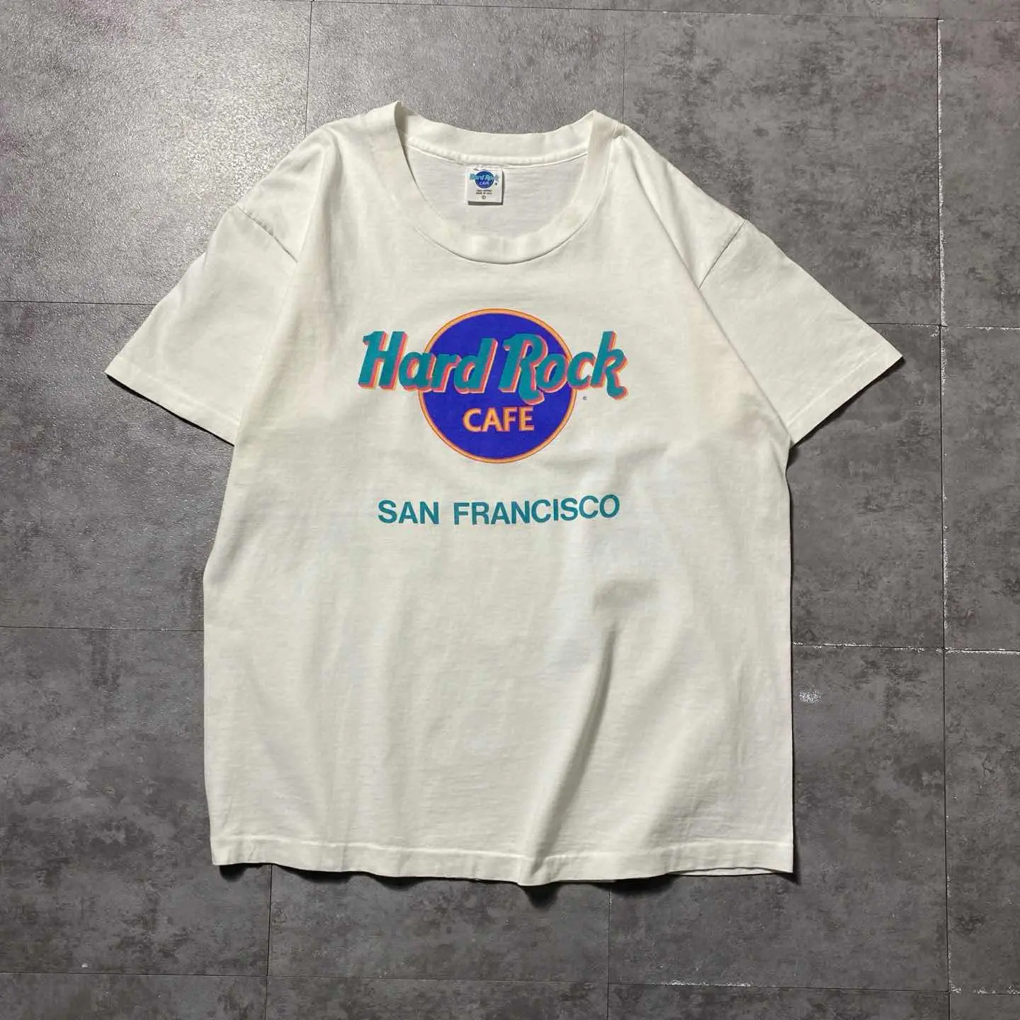 90's ハードロックカフェ プリント シングルステッチ ホワイト 白 Tシャツ