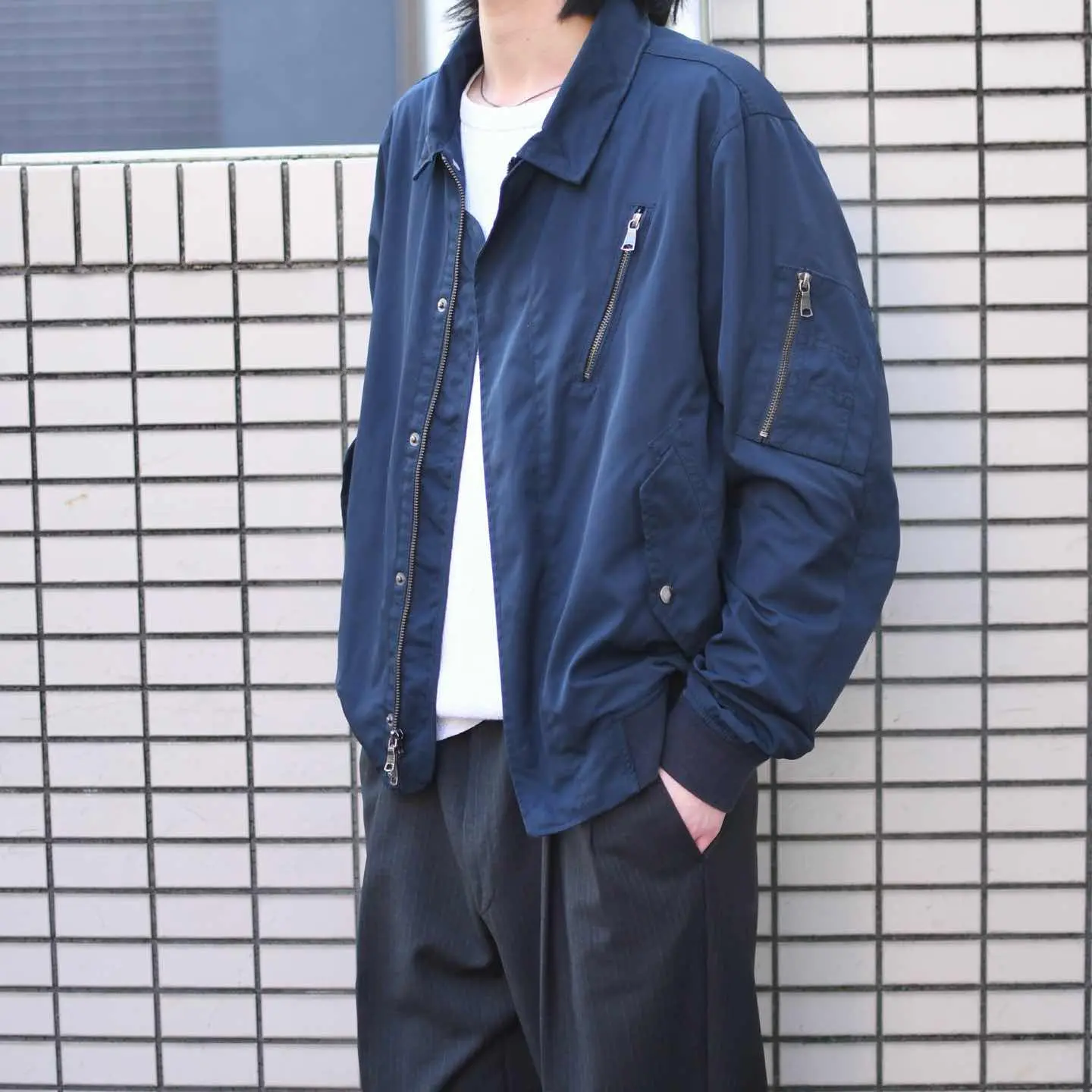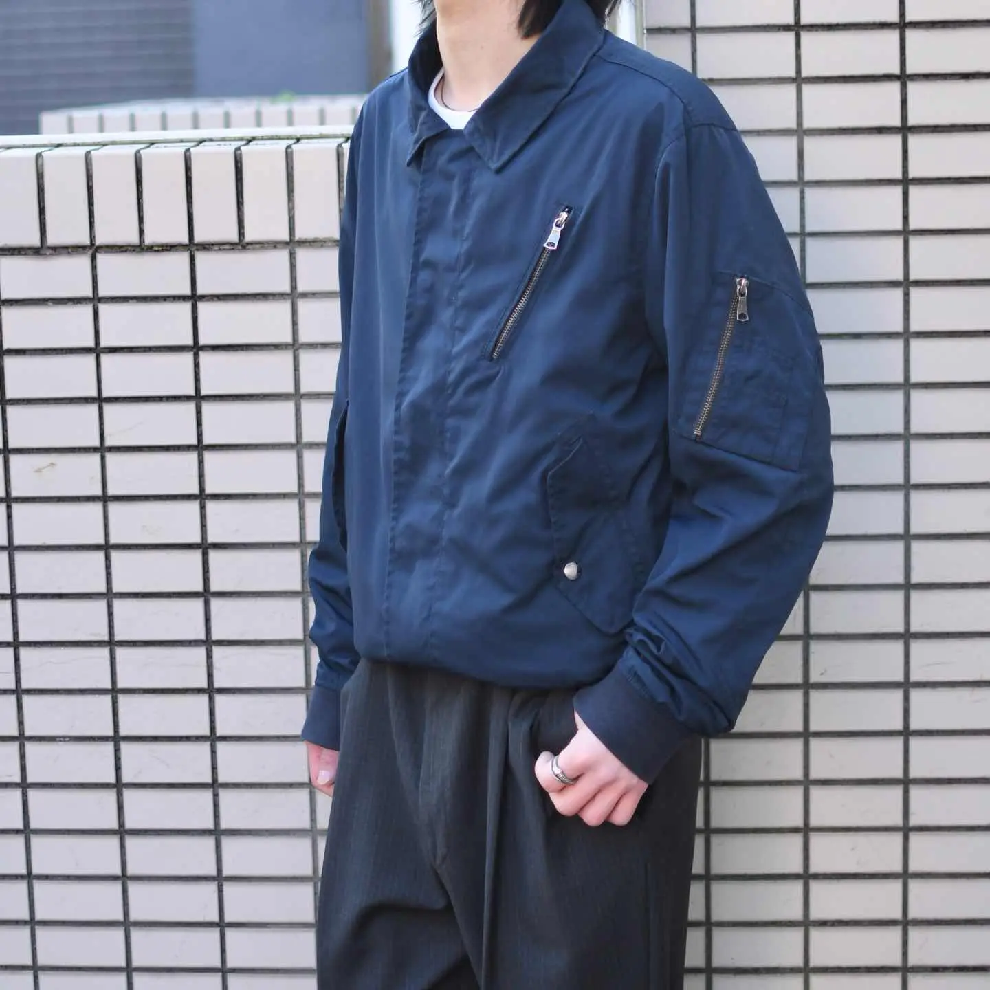 古着 スムース生地 切り替え デザイン ナイロンジャケット ブルゾン フルジップ