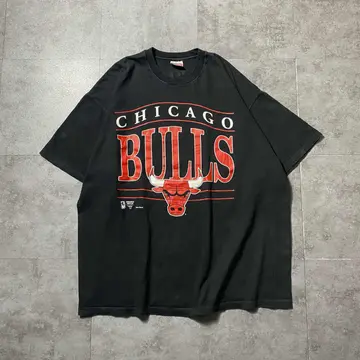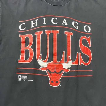90s LOGO7 シカゴブルズ プリント シングルステッチ ブラック Tシャツ
