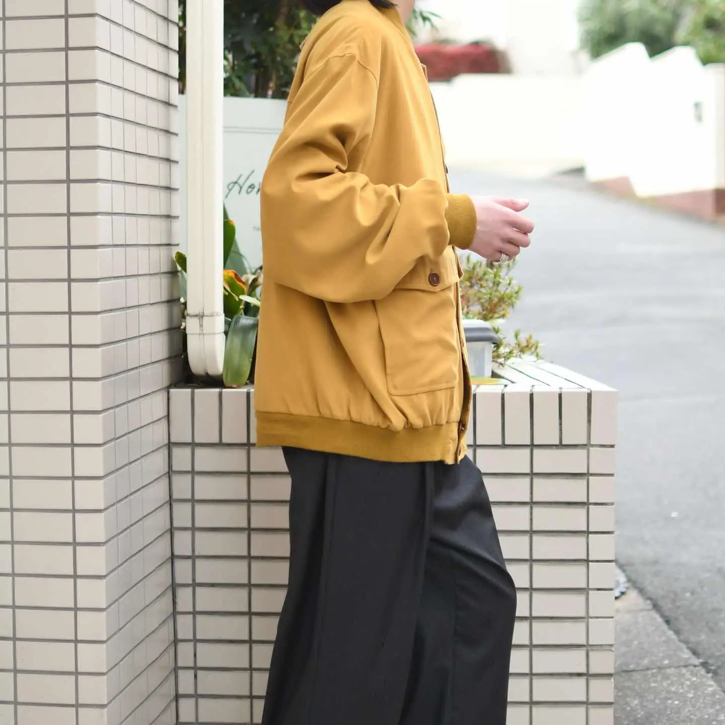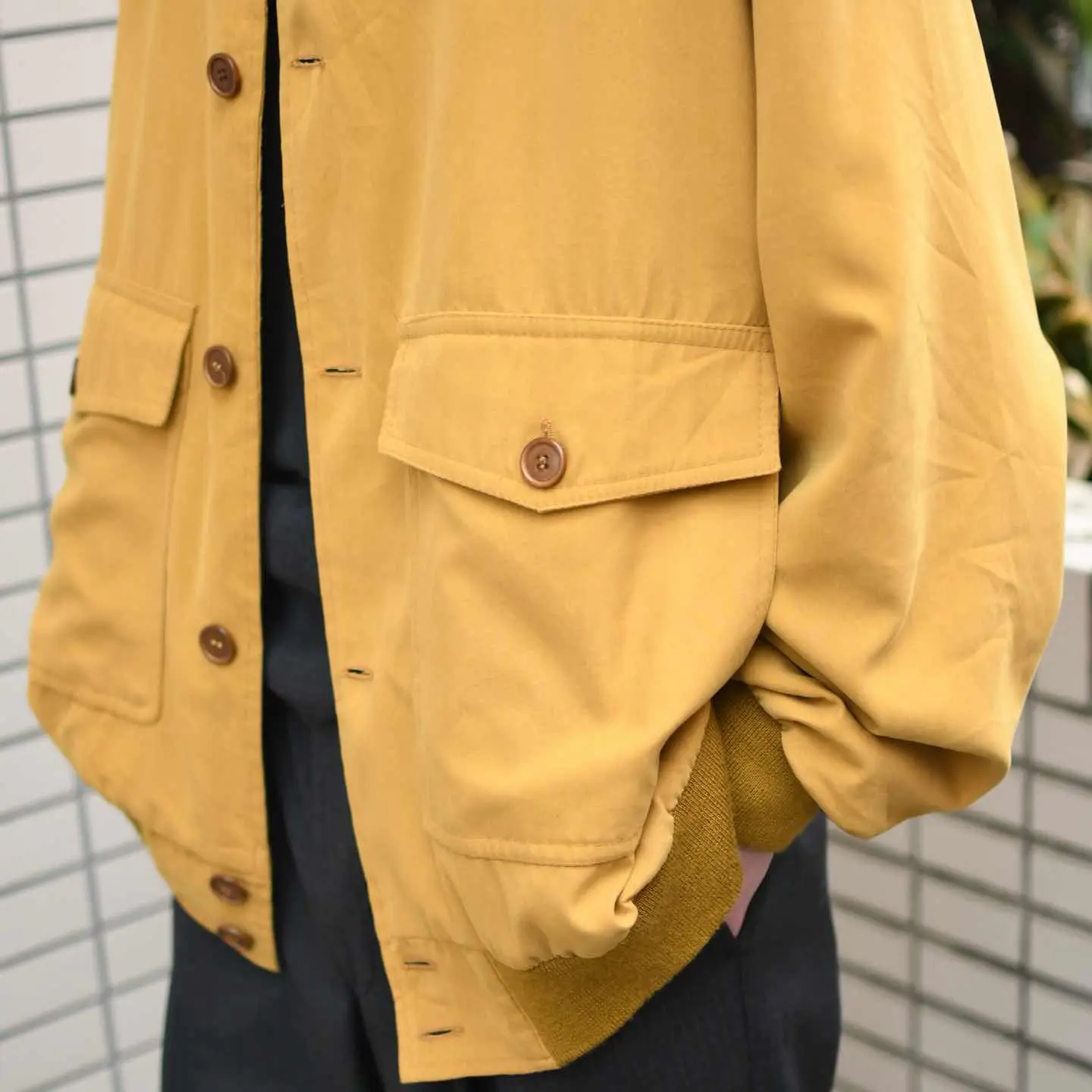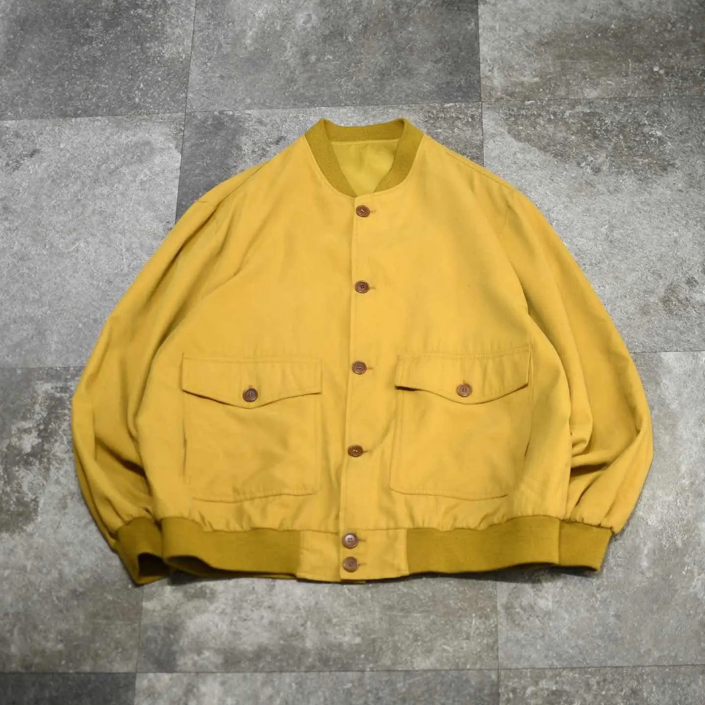 古着 スムース生地 デザイン ブルゾン マスタード からし色 ジャケット