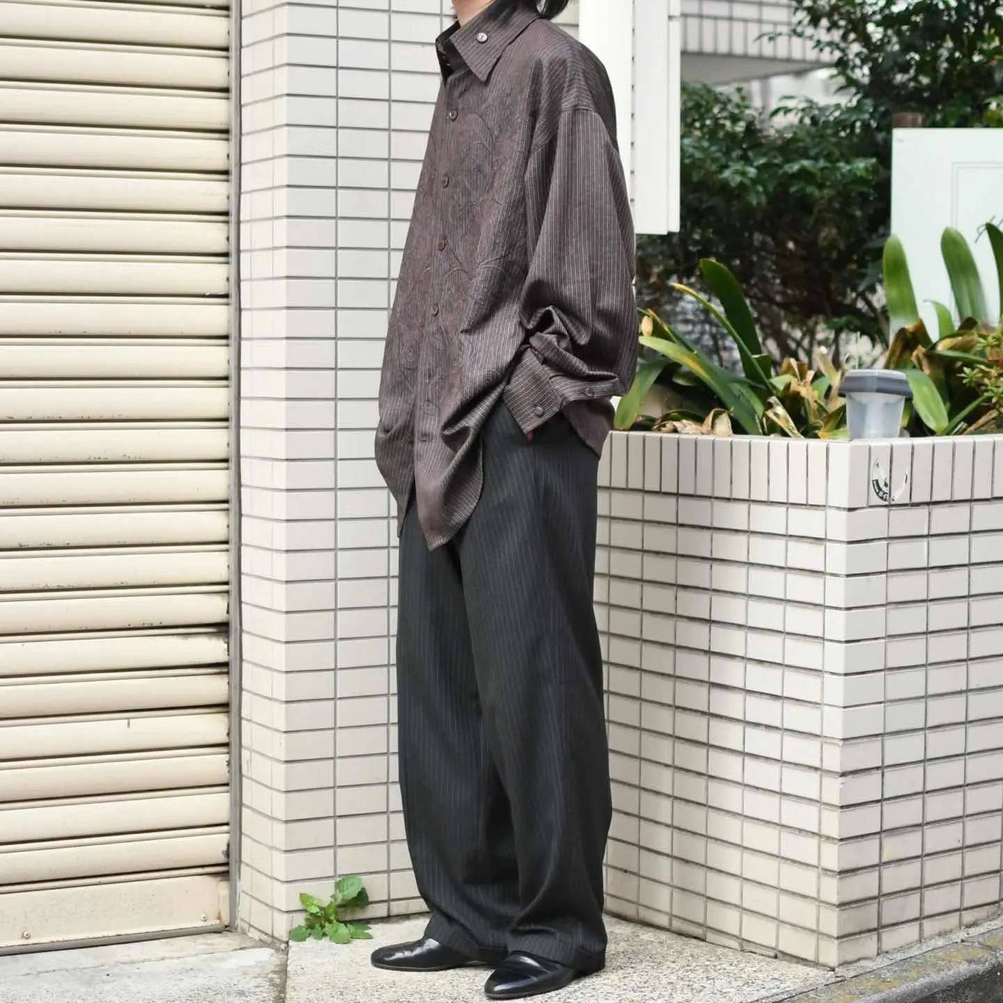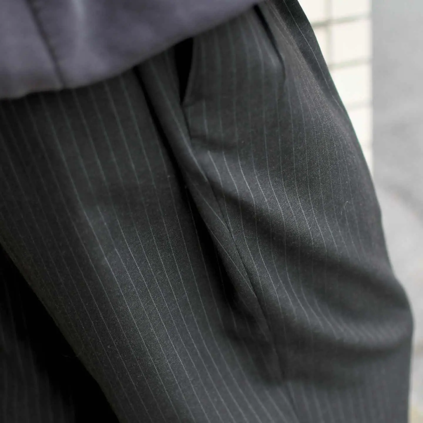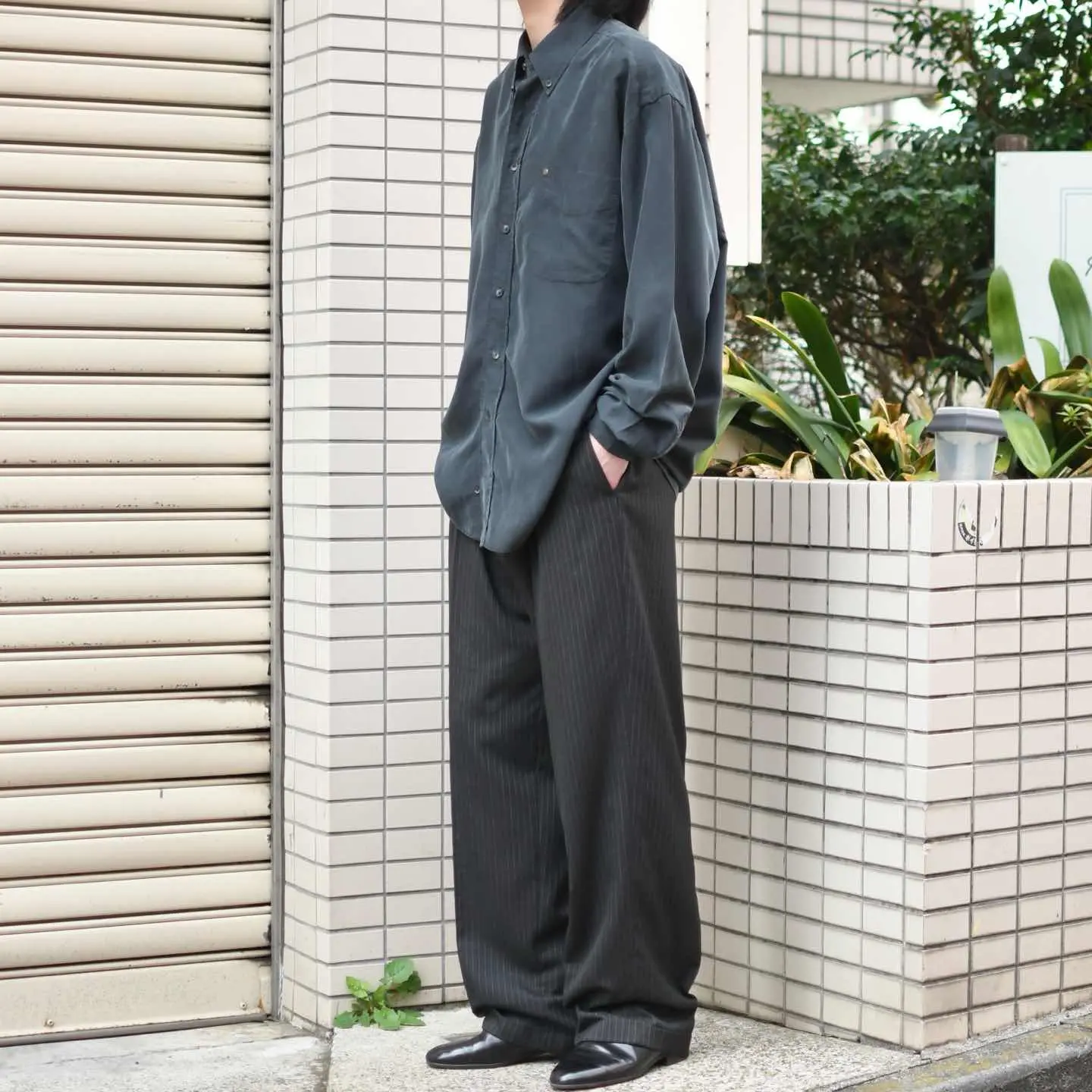SIZE:34×30 ウエスト86cm 総丈105cm 股下75cm わたり38cm 裾幅24cm fabric/rayon・poly 着用画像 173cm/58kg 1926年アメリカ、テキサス州で創業を始めた "HAGGAR" そんなブランドの十八番、スラックス。 単色黒スラックスは手元にあるけれど、 もう少し幅を広げたい方へ。 フォーマルな印象があるピンストライプ柄を、 レーヨン混の動きのあるゆったりとした シルエットで中和、上品かつ差別化にも 落とし込める一本です。 探し始めると中々納得のいく個体が見つからない ストライプパンツ。 通年穿けるこんな個体を手元に迎えてみては どうでしょう。 ※裾上げ等のレングス直しにつきましては、 購入前に、必ずご連絡お願い致します。 ※撮影状況により、実物と多少色が異なる 場合がございます。 ※古着を取り扱っているため、気づかない汚れや ほつれがある場合がございます。 ※サイズは着用感で選んでおり、 表記サイズは説明欄の最初に記載しております。 古着 old vintage ヴィンテージ used 80's 90's POLO RALPH LAUREN Eddie Bauer OLD GAP LANDS' END ランズエンド LLBean エルエルビーン オールドギャップ エディーバウアー ラルフローレン ブルックスブラザーズ Brooks Brothers ブラック 黒 ストライプパンツ などがお好きな方 #vintage #old #used #90s #80s #古着 #ヴィンテージ #LLBean #エルエルビーン #EddieBauer #オールドギャップ #LANDSEND #ランズエンド #NAUTICA #ラルフローレン #POLORALPHLAUREN #ブルックスブラザーズ #BrooksBrothers #ワイドパンツ #スラックス #タックパンツ #ストライプパンツ