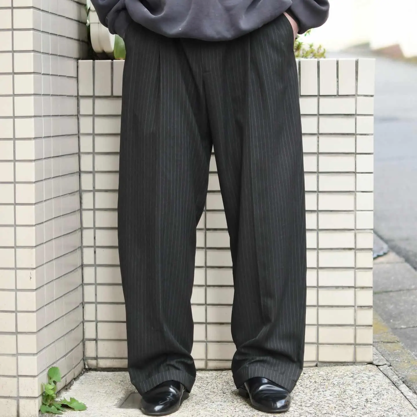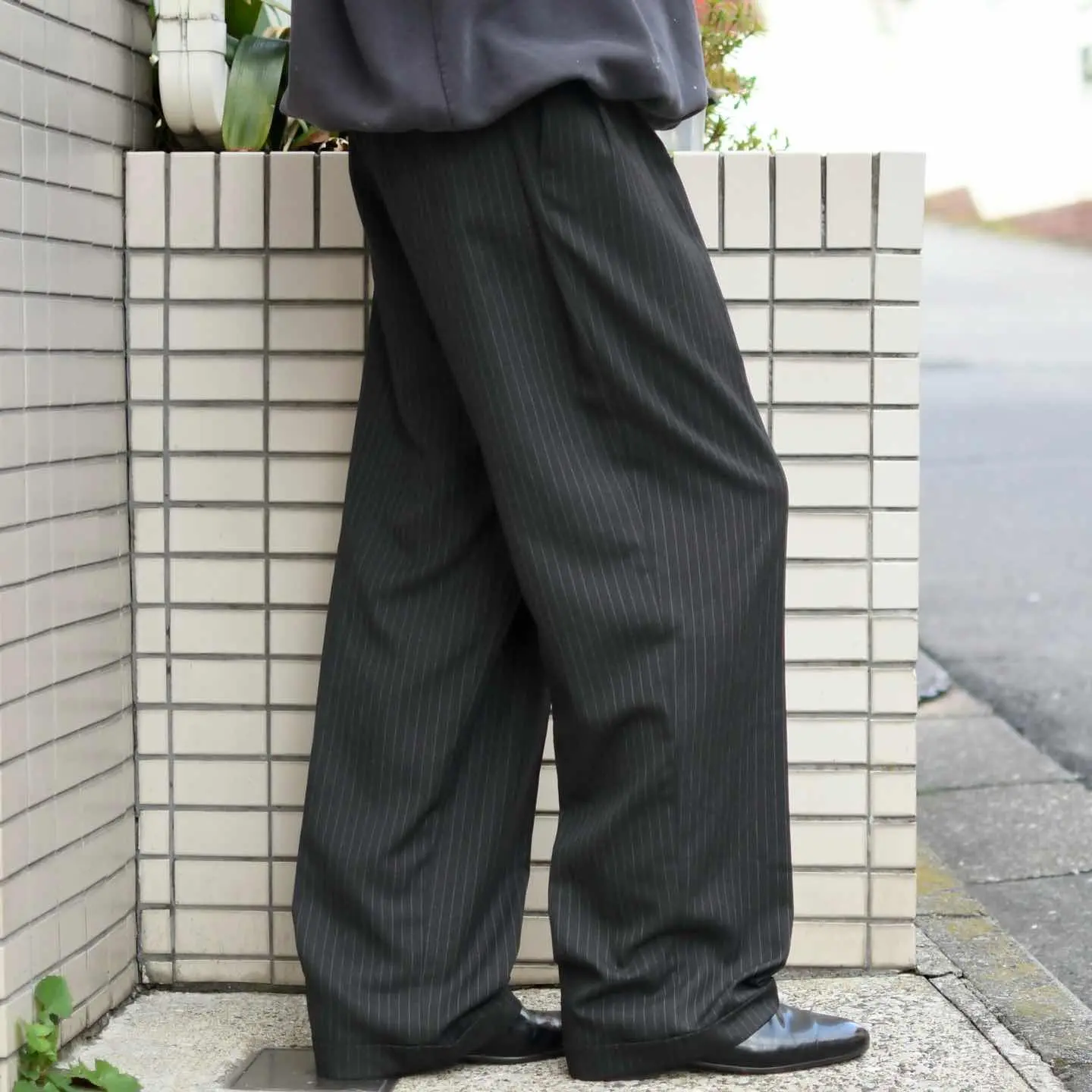 古着 haggar レーヨン ストライプ スラックス タックパンツ ワイドパンツ