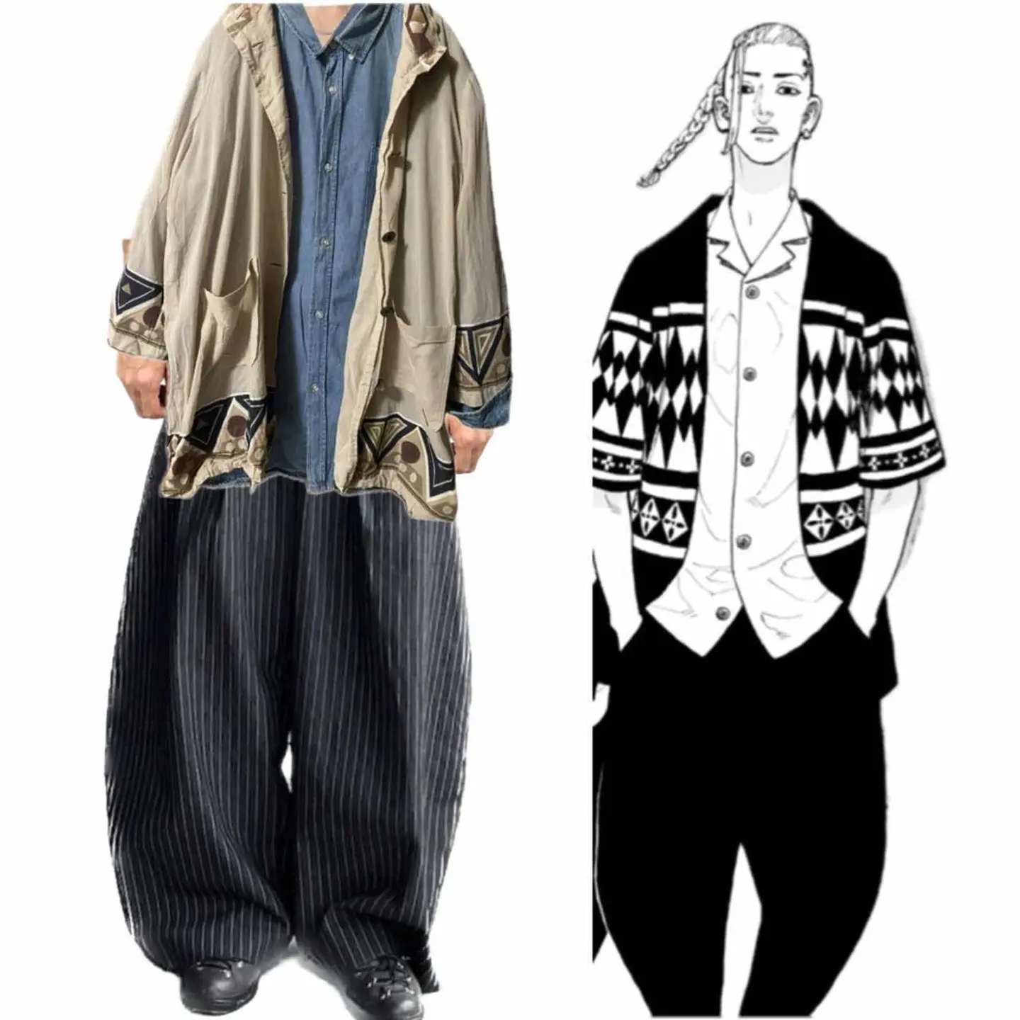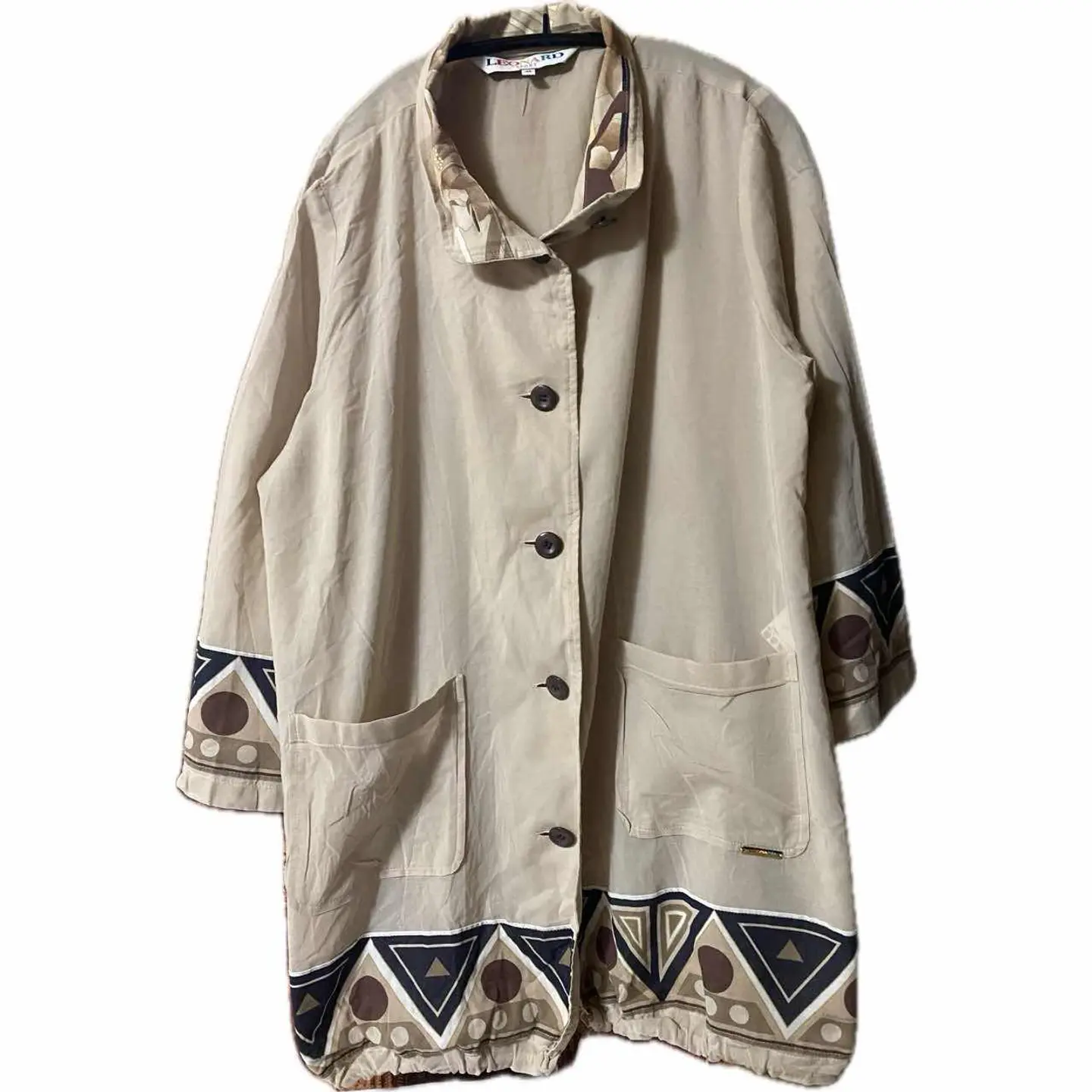 大人風なヴィンテージテイスト、Bohemian風アートがかっこいいレオナルドスポーツのシャツです。 こちらは、もともとハイブランドなのですが、もう少し買いやすい、カジュアルな感じで 展開したのがこのラインで、自由に楽しんでほしいと、 日本の技術の集結と言って、圧倒的な作りはさらっと羽織るだけで確実におしゃれをアップデートしますので、ぜひこの機会に体験ください。コーデ、まず最初は、トラッドより次あれ?これまじカッコいいなーと、着画考えてたとき、 あっ、東京卍リベンジャーズの、【ドラケンみたい!】と思ったから。よせたののせました笑、 少しこれだけはドラケンシリーズでシリーズ化してみたいです笑、 また、アニメでも、人気キャラって、男気いがいに 【ファッションかっこいいからすよ】ぜひおしゃれ楽しんで、ご自分のコーディネートをアップデートしてください ボヘミアンとは?↓ チェコのボヘミア地方に由来し、伝統や慣習に縛られず、自由奔放に生きる芸術家や放浪者(ロマ)を指す言葉です。現代では、フォークロア調のゆったりしたファッションや、自由で芸術的なインテリアスタイル ってこと、辛口エスニックにもぴったり^_^、 ▷color◁ アースカラー 写真参考に、 ※ブラウザで異なる場合ありますがかなり実物には、近づけてます、 ▷size◁ 平置き片面採寸【㎝表記】 表記size 42 XLくらい 着丈/80 身幅/59 肩幅/52DS 袖丈 /60↓リストスリーブ DSは袖はハンガー採寸 ※多少の誤差は理解下さい 170/Mジャスト体型の私が着て、✔️参考に ジャスト オーバーサイズ✔︎ ビックサイズ 【素材】 コットン表記、珍しい少し透け感あるコットン 【状態】 明記しなくてもいいかな?程度のシミを、親切に、明記してますし、良いには、入ります、 また、こんな激レア古着がダメージないのは奇跡なので、これでクレームつける人は完全にお断りです。古着に理解ないにもほどあるし、写真ですらみえんでしょ?大丈夫あんた?とおもいますんで、