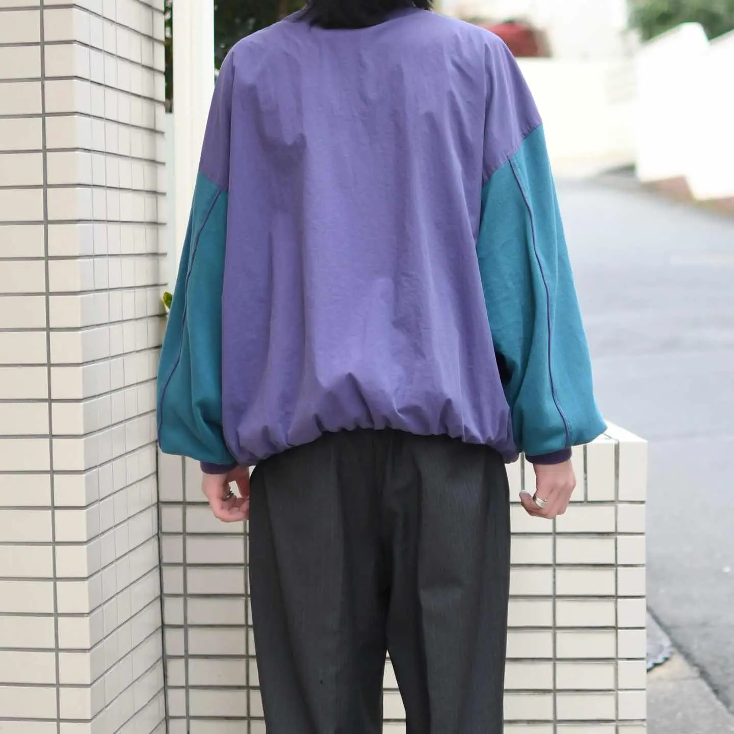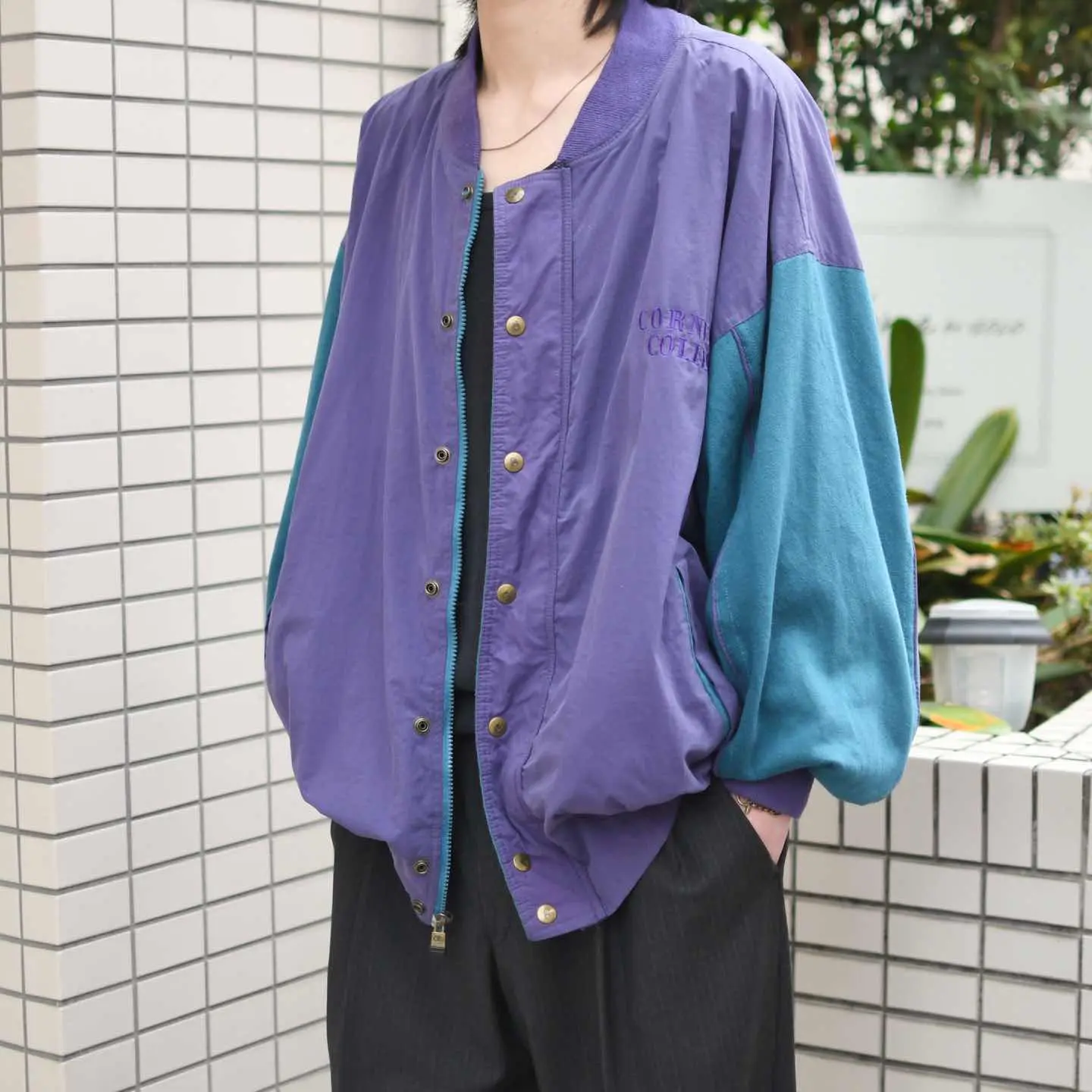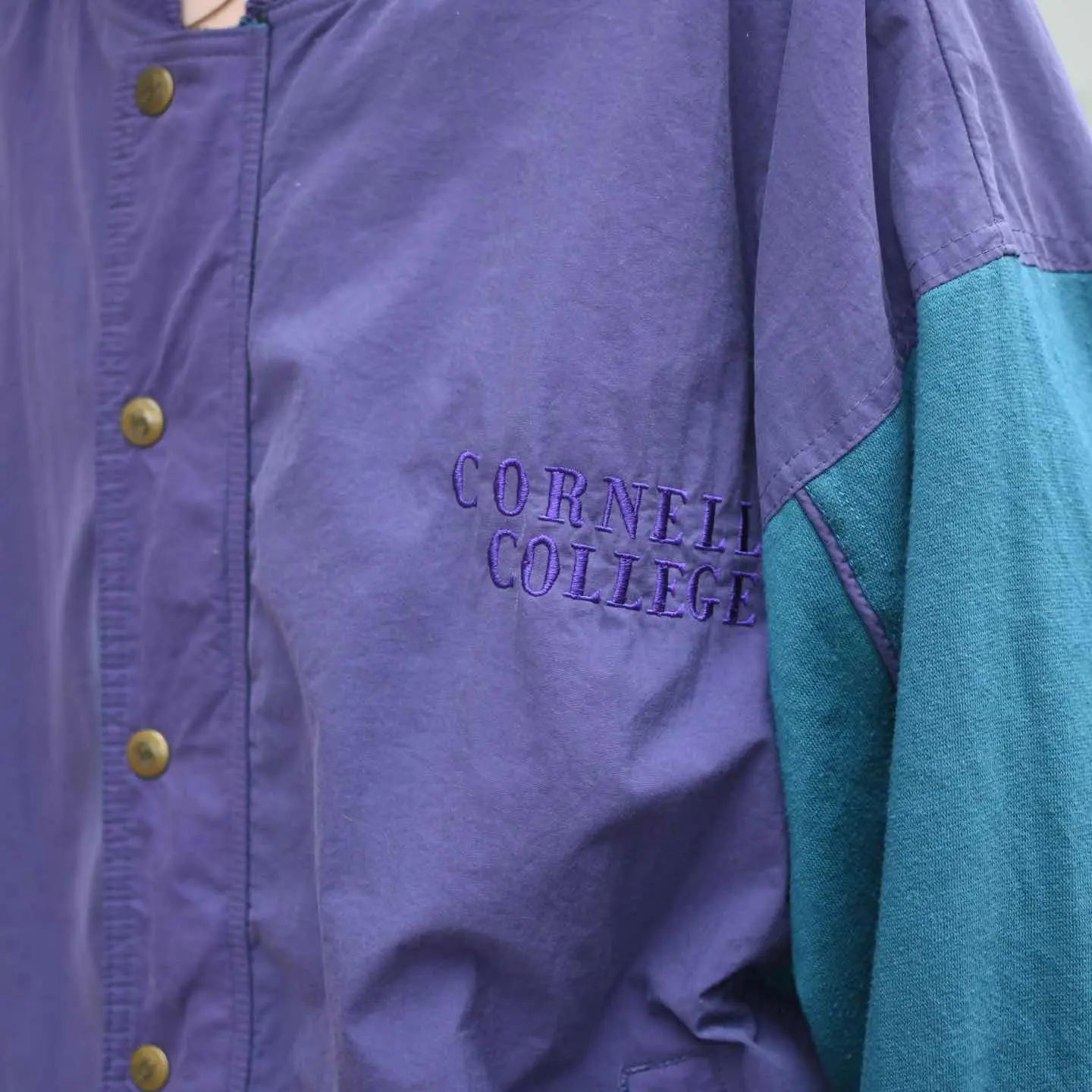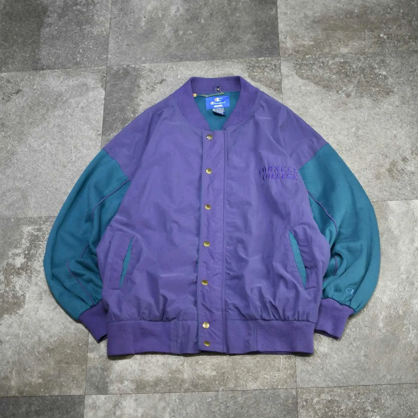 SIZE:LARGE 着丈72cm 肩幅68cm 身幅69cm 袖丈60cm fabric/nylon・cotton・poly 着用画像 173cm/658kg 特徴的な色使いは、1853年にアメリカ、 アイオワ州にて設立された大学 ”Cornell College”から。 ボディはシャリ感のあるナイロン素材、 対してアームはしっとりとしたスウェット生地へと 切り替えられたブルゾン。 ”カレッジ物特有の雰囲気”というよりか、 このアイテム特有の雰囲気を 纏っているようにも感じましたし、アームの太さや シルエットにまで惹かれました。 ナイロンの裏地からさらりと着れるのも 嬉しいポイントで、スタジャンらしい スタジャンという枠からしっかり外れてくれた、 お気に入りの一着です。 ※撮影状況により、実物と多少色が異なる場合が ございます。 ※古着を取り扱っているため、気づかない汚れや ほつれ等がある場合がございます。 ※サイズは着用感で選んでおり、 表記サイズは説明欄の最初に記載しております。 オーバーサイズ old vintage ヴィンテージ used 80's 90's POLO RALPH LAUREN Eddie Bauer OLD GAP LANDS' END ランズエンド LLBean エルエルビーン オールドギャップ エディーバウアー ラルフローレン ブルックスブラザーズ Brooks Brothers パープル 紫 ジャケット ナイロンジャケット などがお好きな方 #vintage #old #used #90s #80s #古着 #ヴィンテージ #LLBean #EddieBauer #エディーバウアー #oldgap #オールドギャップ #LANDSEND #ラルフローレン #POLORALPHLAUREN #ブルックスブラザーズ #BrooksBrothers #スタジャン #ブルゾン #ナイロンジャケット #Champion