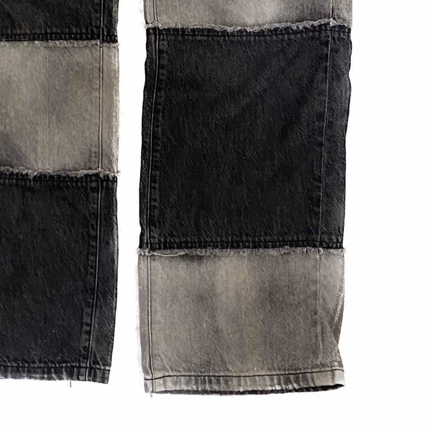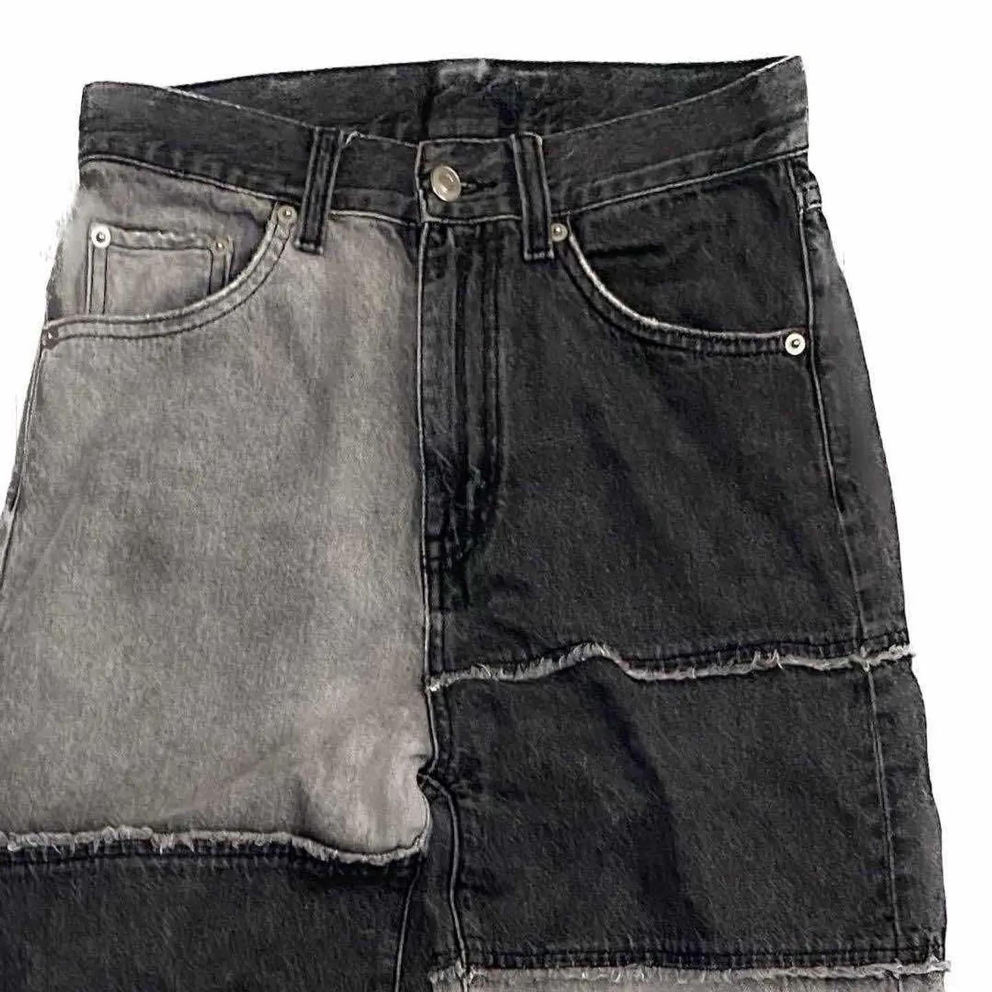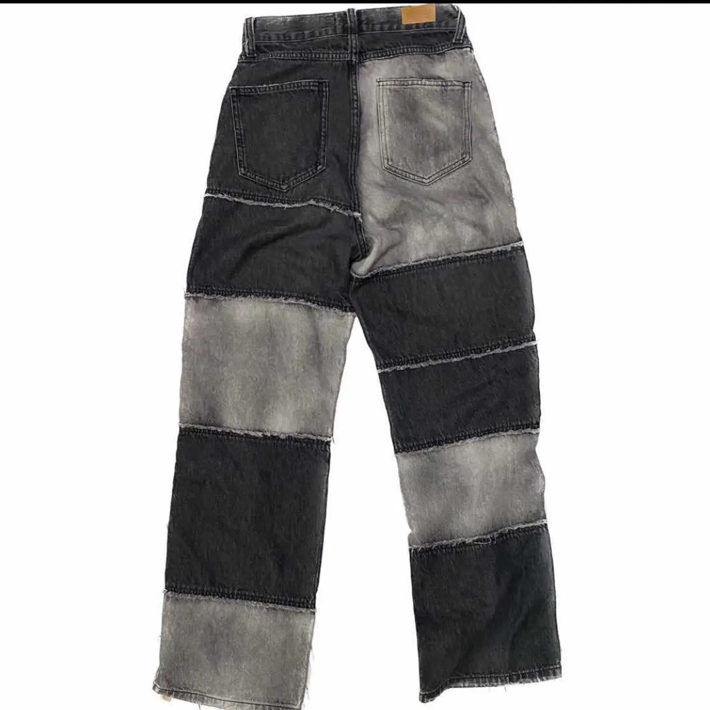 90s o.e.m one of a kind クレイジープリズナーデニム 30-31インチ 90年代One of a Kind 1階限りの意味、特注外注O.E.M かけられた贅沢にヴィンテージデニムとかをクレイジーパターンのプリズナー風に仕上げてと言う依頼を受けたセレクトショップがありました。そのセレクトショップの極上美品のクレイジーprisoner風デニム、 フェード感のあるブラックデニムとブラックデニムを交互にクレイジーに合わせて作られた1本で技術の高さが伺えます。さらに行き過ぎてないのに個性が出てシンプルなトップスと合わせるだけでおしゃれに決まるのでこれは買わないと言う選択肢はないと思います。サイズがあれば即ゲットですね。 表記size30-31inch 【※ウエストのみ、メジャーで一周採寸】 ウエスト79 股上38 股下70 腿渡り幅28 裾幅26 モデル170㎝/普通体型、30インチジャストな体型の私が、良いくらい、指二本くらいゆとりある、参考に! ▷material◁ デニム2本 ▷condition◁ 新品同様 フェード加工を使用感と、とらないで下さい ※入念にチェックは、しておりますが、vintage/usedの特性ご理解下さい