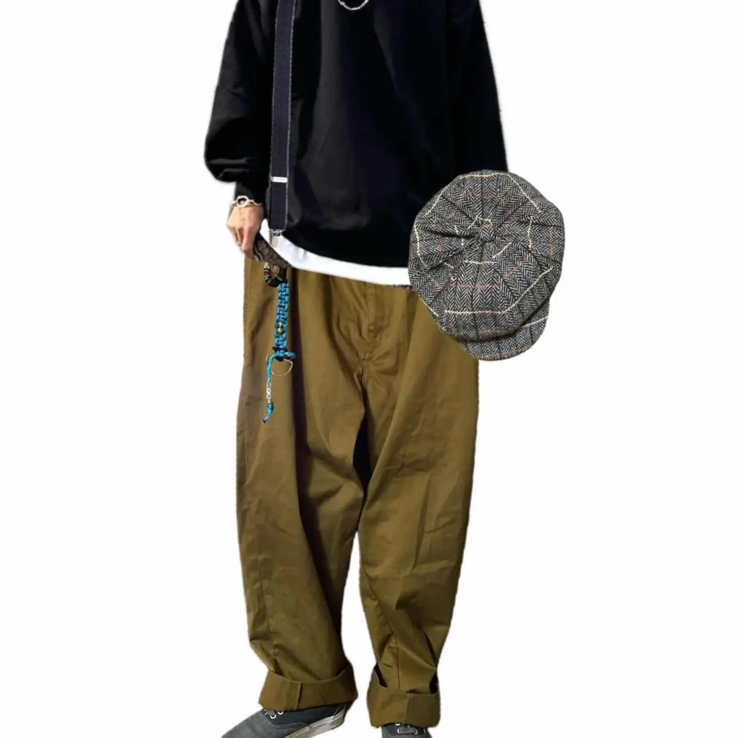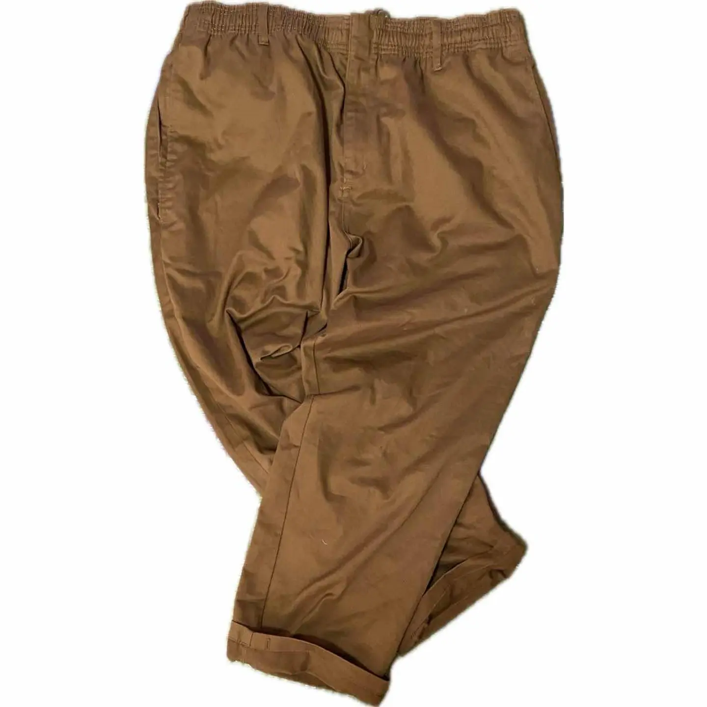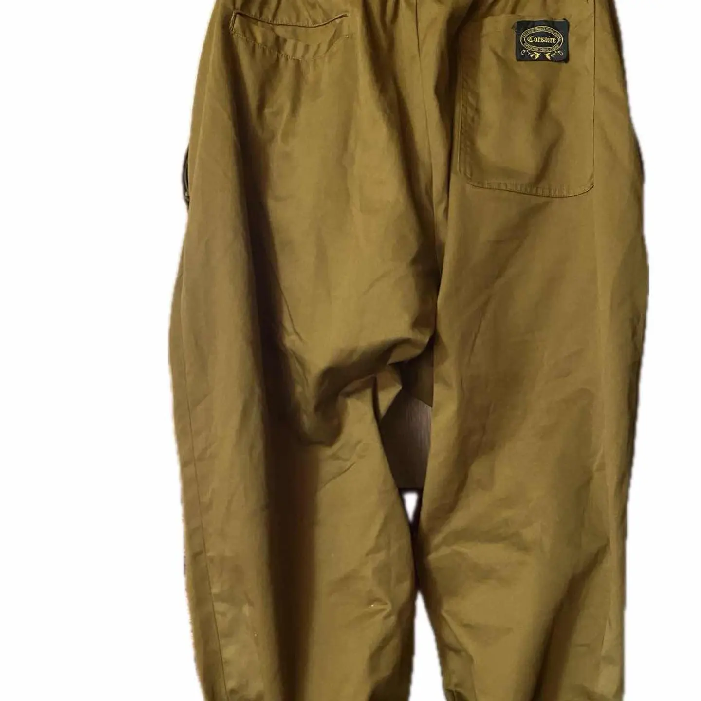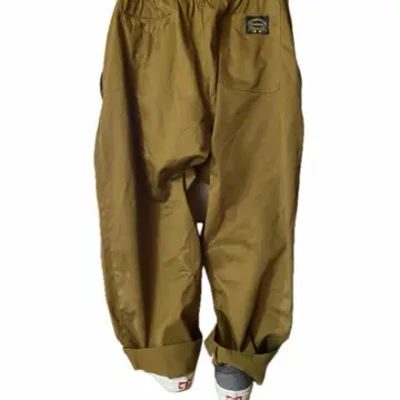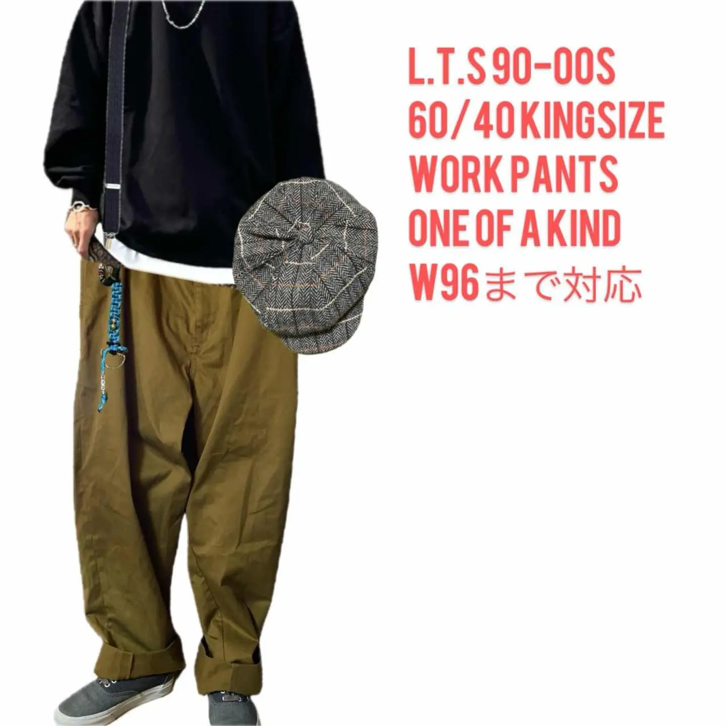 美品 L.T.S 90-00s ファット60/40 work pants 1950意識 90年から2000年代に登場した。1950年を意識したファットカーブタイプのワークパンツ、しかも6040と言われるタイプです。 その圧倒的な質はめちゃくちゃ重宝しますし、ウェストもめちゃくちゃビックサイズなので、サスペンダーとか様々なコーディネートが楽しめますし、絞り方のテクニックによってはめちゃくちゃいろいろなコーディネートが楽しめますので、あまり方々かかってもしょうがないと思いますので、ぜひよろしくお願いいたします。 ちなみにラストテストサンプルと言う展示会に持ってく。最後のメーカーが一番手間をかけたやつサンプル品なのでかなり品質は良いですし、新品に近い状態の良さも魅力的です。今回は簡単に軽く睦のトップスと合わせただけでシルエットがめちゃくちゃいいのでバッチリ決まりますので、ぜひ参考にしてください。 サスペンダーをワンショルダー掛けにして、1950年トラッド感を出しているので、参考になると嬉しいです ▷color◁ ブラウン 着画は外撮り、 60/40だから、室内外で雰囲気変わる ※使いのブラウザにより色が変わってみえる場合あります ▷size◁ 平置き片面採寸【㎝表記】 表記size one off onesize 【※ウエストのみ、メジャーで一周採寸】 ウエスト96まで対応する、紐ある、ベルトループある、ゴムある、それ以外は、いいわけすらいらない 私も30インチですが、ぎゅー絞りで履けますし、サスペンダーや、ベルトすれば、最早なんの問題もない、 股上42 股下80私も2ロールしてるし、もはや、これも関係ないっす! 腿渡り39 裾幅24 モデル170㎝/普通体型、30インチジャストな体型参考に、 ▷material◁ 60/40混合綿ツイルにはいる C/Pよってゴワゴワしない、 ▷condition◁ 美品です、 ※入念にチェックは、しておりますが、vintage/usedの特性ご理解下さい