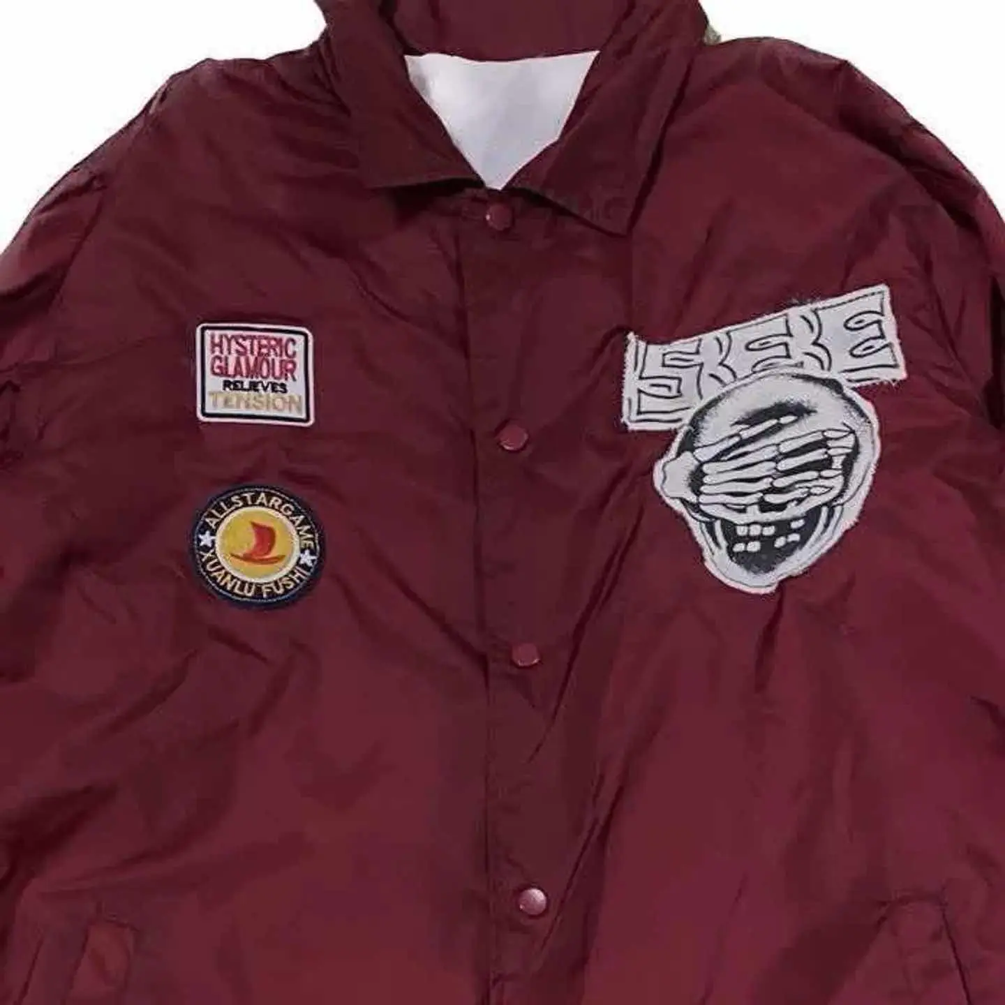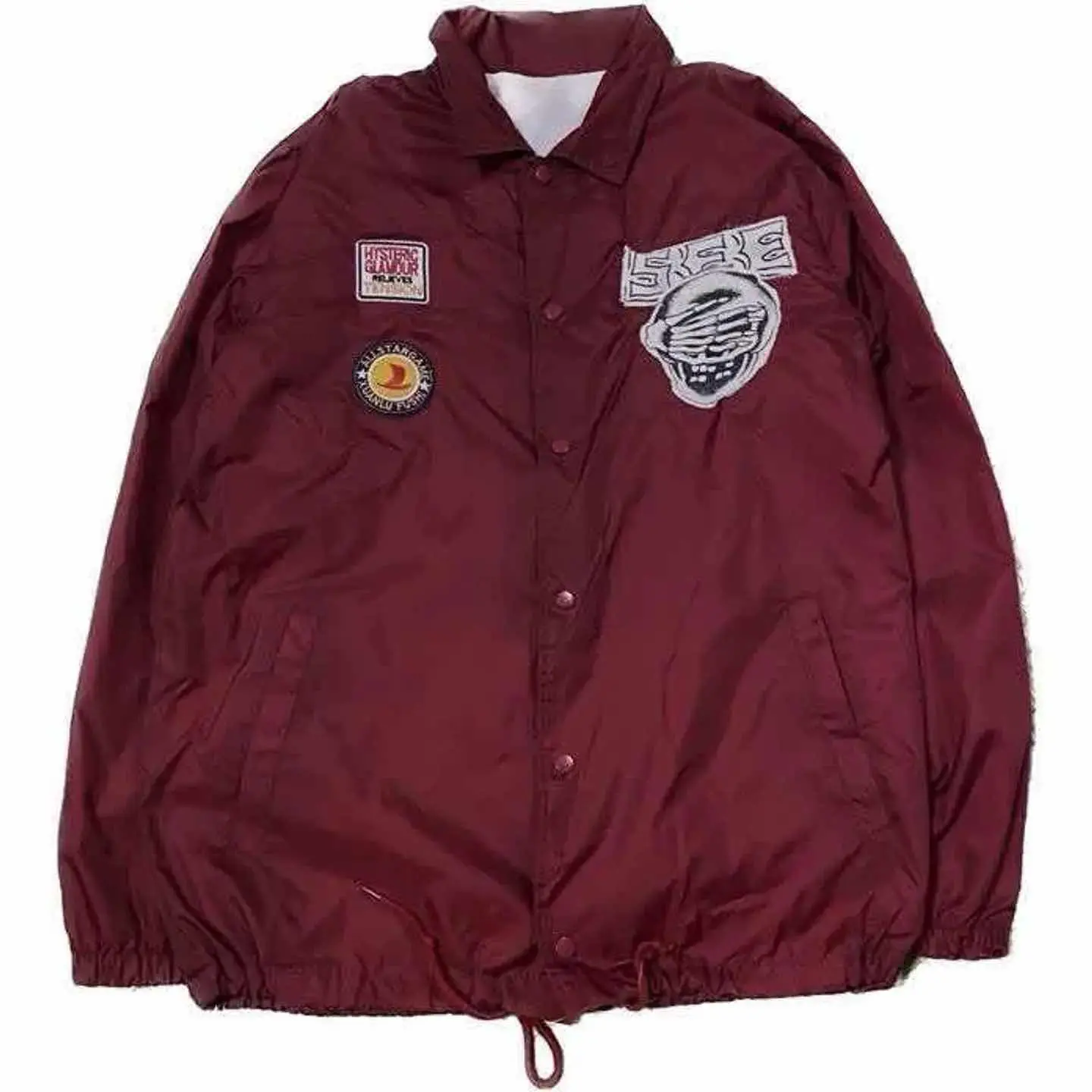 70s VALUABLE リモンタ jacket XL リメイXL 1点物 年中活躍 バックにVALUABLE プリント ※これ、かなりレアな、1着【VALUABLE】77年の、音楽イベント、スタッフのみに、配られたやつ よって、世界に10着しかないし、初めてみました、 おそらくみることは、今後ないです。 だったら、それ、世界に一つにしちゃうか?で、 !!reake!! NIKEの、スケートラインを、手掛ける、デザイナーのTシャツスカル縫い付け、 collectionしてたワッペン縫い付けました、 ヒステリックグラマーのまで、ケチらずぬいつけてます、 さらに、リモンタなんで、年中いけます、 オーバーサイズなんでマイクすれば別に暑くないし、逆に言うと中に着込めば肌寒い時とかも全然対応します。ちなみにこれ着用画像は、気温27度でとってますよ。朝ね、 オーバーオールにグレイトフル・デッドのタイダイTシャツ着て.さらにプリズナーシャツヴィンテージを間に挟んでいます。例えばこのジャケットって軽いじゃないですか。脱いで手に持っても半袖のプリズナーシャツがインパクトを見せるって言うアメカジスタイルです。 【カラー】 ダークボルドー 写真通り ▷size◁ 平置き片面採寸【㎝表記】 表記size XL位 着丈77 身幅60 肩幅50DS 袖丈64 ※多少の誤差はご容赦下さい 【着用画像データ】 身長170㎝普通体型の私がゆるだぼ ▷material◁ 世界最高級リモンタナイロンジャケット 年中活躍 ▷condition◁ 綺麗です!! ※入念にチェックは、しておりますが、vintage/usedの特性ご理解下さい