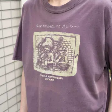 SIZE:L 着丈69cm 肩幅55cm 身幅60cm 袖丈23cm(ダブルステッチ) fabric/cotton made in Mexico 着用画像 173cm/58kg メキシコのテキーラ文化をテーマに、 カエルがテキーラを嗜むコミカルなイラストが 描かれたTシャツ。 そしてなんといってもこのフェード... プリントの雰囲気と相まって、よりこの個体にしか 出し得ない佇まいを兼ね備えた逸品です。 一枚で着ても、インナーにしても差別化出来る Tシャツとしておすすめです。 ※撮影状況により、実物と多少色が異なる場合が ございます。 ※古着を取り扱っているため、気づかない汚れや ほつれ等がある場合がございます。 ※サイズは着用感で選んでおり、 表記サイズは説明欄の最初に記載しております。 古着 オーバーサイズ old vintage ヴィンテージ used 80's 90's アメリカ古着 ユーロ古着 POLO RALPH LAUREN Eddie Bauer OLD GAP LANDS' END ランズエンド LLBean エルエルビーン オールドギャップ エディーバウアー ラルフローレン ブルックスブラザーズ Brooks Brothers ブラウン 茶色 パープル 紫 半袖Tシャツ カラーTシャツ などがお好きな方 #vintage #オーバーサイズ #old #used #90s #80s #古着 #ヴィンテージ #アメリカ古着 #ユーロ古着 #LLBean #エルエルビーン #EddieBauer #エディーバウアー #oldgap #オールドギャップ #LANDSEND #ランズエンド #NAUTICA #ノーティカ #ラルフローレン #POLORALPHLAUREN #ブルックスブラザーズ #BrooksBrothers #プリントTシャツ #Tシャツ #半袖Tシャツ #フェード #カラーTシャツ