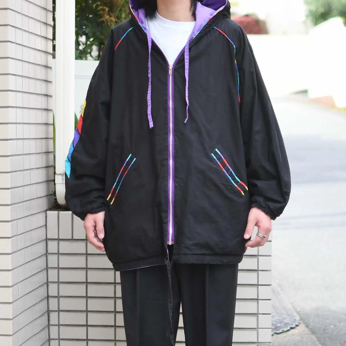 古着 リバーシブル レインボー フーディ デザイン ジャケット ブルゾン