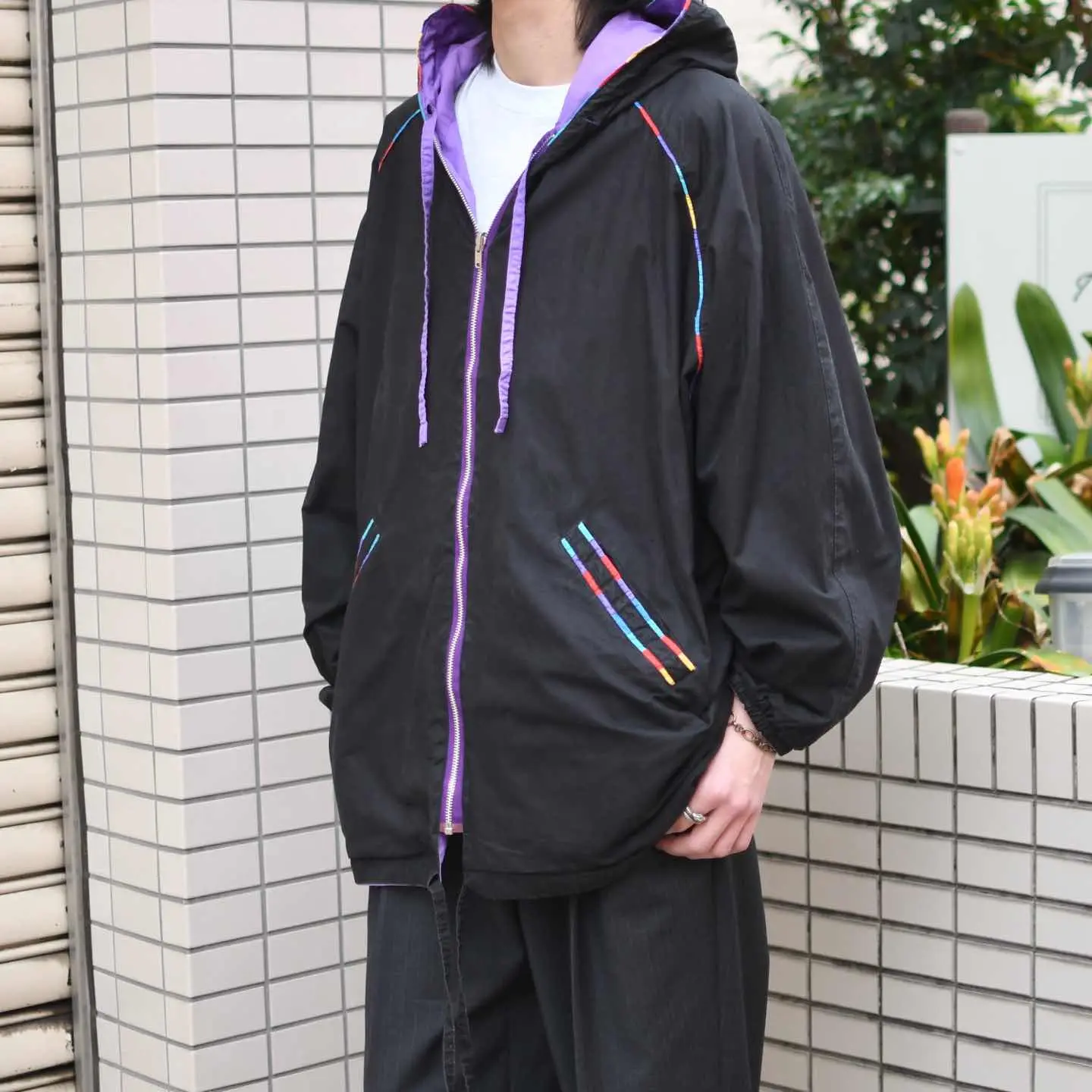 SIZE:- 着丈76cm 身幅83cm 裄丈94cm fabric/質感よりcotton・poly 着用画像 173cm/58kg "静かな高揚感を背中で" 最近見てないなぁと改めて感じました。 裾からアームにまで施された5色の切替。 また其れは、フードやポケットのパイピングにまで 落とし込まれ、総柄などとは違った楽しさを 兼ね備えた逸品です。 彩る古着、良き古着。 ※B面に汚れあり。 ※撮影状況により、実物と多少色が異なる場合が ございます。 ※古着を取り扱っているため、気づかない汚れや ほつれ等がある場合がございます。 ※サイズは着用感で選んでおり、 表記サイズは説明欄の最初に記載しております。 古着 オーバーサイズ old vintage ヴィンテージ used 80's 90's アメリカ古着 ユーロ古着 POLO RALPH LAUREN Eddie Bauer OLD GAP LANDS' END ランズエンド LLBean エルエルビーン オールドギャップ エディーバウアー ラルフローレン ブルックスブラザーズ Brooks Brothers 黒 ブラック 紫 パープル フーディ パーカー などがお好きな方 #vintage #オーバーサイズ #old #used #90s #80s #古着 #ヴィンテージ #アメリカ古着 #ユーロ古着 #LLBean #エルエルビーン #EddieBauer #エディーバウアー #oldgap #オールドギャップ #LANDSEND #ランズエンド #NAUTICA #ノーティカ #ラルフローレン #POLORALPHLAUREN #ブルックスブラザーズ #BrooksBrothers #リバーシブル #フーディ #ブルゾン #ジャケット
