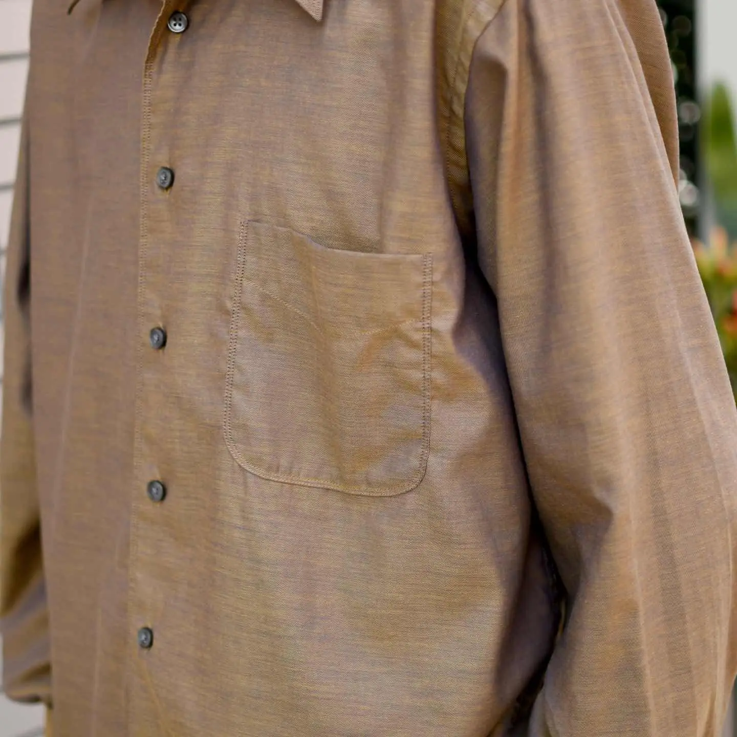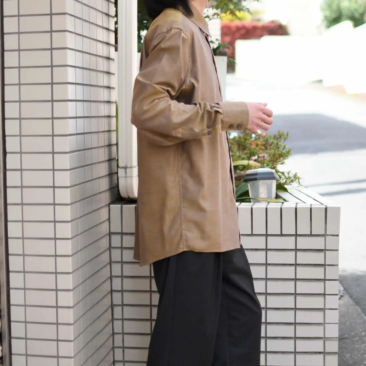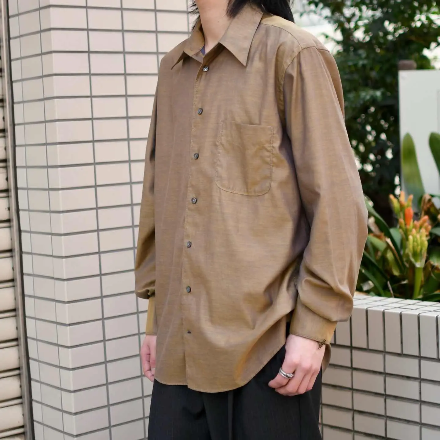 SIZE:M 着丈73cm(前)80cm(後) 肩幅47cm 身幅61cm 袖丈65cm fabric/cotton 着用画像 173cm/58kg 1902年創業、フランスの老舗ブランド”Devred” クラシックなビジネスウェアから、都会的な カジュアルウェアまで幅広く手掛ける ブランドのようで、こちらはちょうど その間に位置する一着ではないでしょうか。 ブラウンとパープル、見る角度によって 色が変わる玉虫色だからこそ、ドレスシャツの 中でも頭一つ抜けた雰囲気を兼ね備えた逸品です。 テーラードジャケットの中に仕込んでも、 一枚で着ても、Tシャツの上から羽織っても。 単色でありながら物足りなさを感じず身に纏える アイテムです。 ※撮影状況により、実物と多少色が異なる場合が ございます。 ※古着を取り扱っているため、気づかない汚れや ほつれ等がある場合がございます。 ※サイズは着用感で選んでおり、 表記サイズは説明欄の最初に記載しております。 オーバーサイズ old vintage ヴィンテージ used 80's 90's POLO RALPH LAUREN Eddie Bauer OLD GAP LANDS' END ランズエンド LLBean エルエルビーン オールドギャップ エディーバウアー ラルフローレン ブルックスブラザーズ Brooks Brothers ブラウン 茶色 ドレスシャツ などがお好きな方 #vintage #オーバーサイズ #old #used #90s #80s #古着 #ヴィンテージ #LLBean #エルエルビーン #EddieBauer #oldgap #オールドギャップ #LANDSEND #ランズエンド #NAUTICA #ノーティカ #ラルフローレン #POLORALPHLAUREN #ブルックスブラザーズ #BrooksBrothers #ドレスシャツ #長袖シャツ #シャツ #デザインシャツ