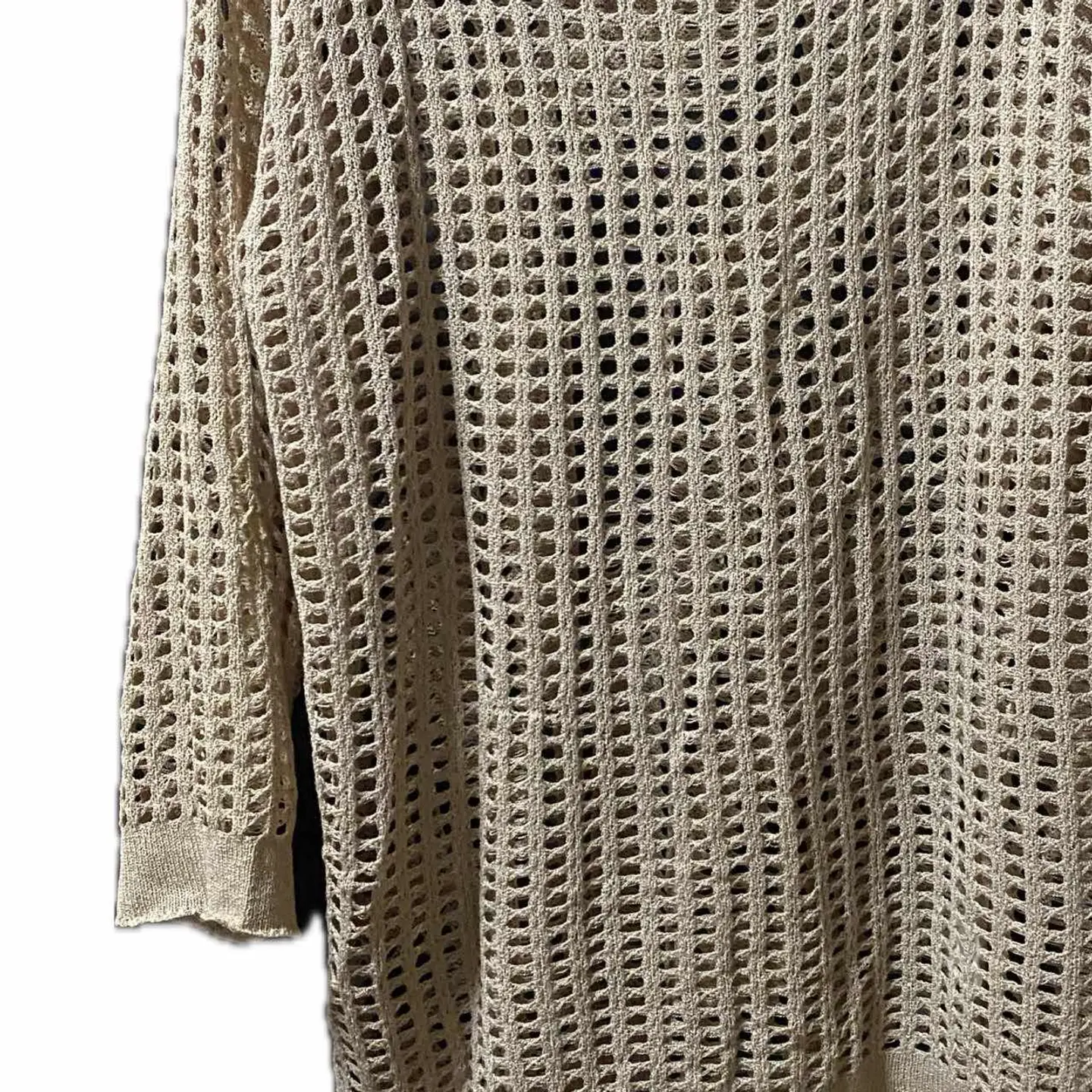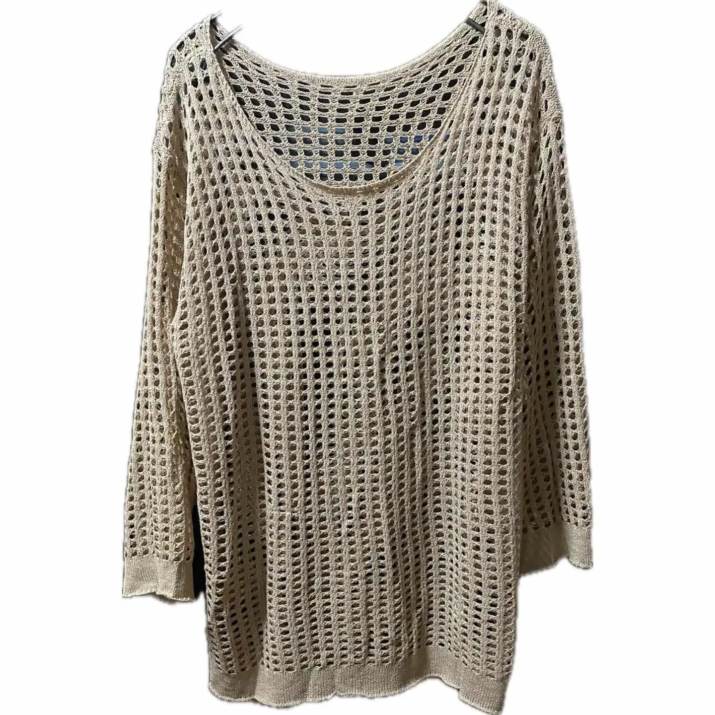 00s PGA素材 craftsmanmade 1点物 メッシュニットT F 2000年代に流行を先取りした職人が手作業で作られた最高級の際、PGAを使い丁寧に編み上げた、メッシュ2度と呼ばれる商品のファーストタイプです。2020年ごろから一気にまた火がついてリバイバルされていますが、素材が違うので、こちらはかなり上質となります。 おそらくですが、グランジとかのブームを追いかけて作ったのですが、流行を先取りしすぎたところもあったのかもしれません。ポリシーがありすぎる方にさか 支持されなかったと思われるのである意味いってんものですね。量産は確実にされてないです。それが1周回って今では大人気の商品となりますので、こちらはファーストタイプ 今みたいなリバイバルじゃないので、質はぜひこの機会に試してください。 今回はリメイクことに脱力感、大人の色気を出してみました ▷color◁ ミルクティーカラー ※ブラウザで異なる場合ありますがかなり実物には、近づけてます、 ▷size◁ 平置き片面採寸【㎝表記】 表記size F 着丈/70 身幅/57-65まで伸縮する 肩幅/60DS 袖丈 /63↓ DSは袖はハンガー採寸 ※多少の誤差は理解下さい 170/Mジャスト体型の私が着て、✔️参考に ジャスト オーバーサイズ✔︎ ビックサイズ 【素材】 PGAw 【状態】 美品 検品、洗濯、検品で、3回チェックして発送しますので、ご安心して、お買い求め下さい!!