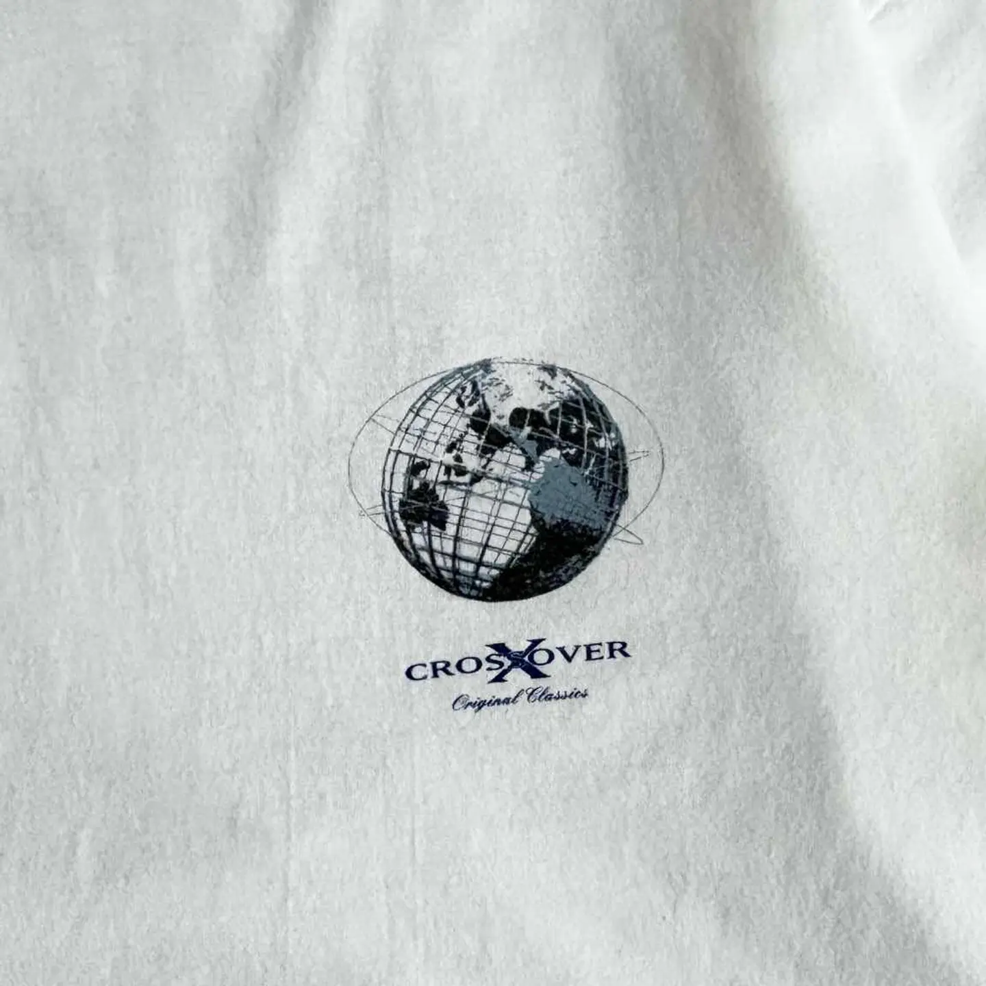 ○商品説明 CROSSOVER 90年代から2000年代初頭を彷彿とさせる テック・ストリートなデザインの一枚。 洗練されたモノトーン調の地球儀グラフィック が最高です。 気になった方は是非。 ○サイズ 表記M 平置き ・肩幅49cm ・身幅53.5cm ・袖丈20cm ・着丈69cm ○商品の状態B A:使用感がほとんどなく、汚れやシミもなし B:多少使用感はあるが、汚れやシミも少ない C:使用感があり、汚れやシミがある D:使用感があり、大きな汚れや破れあり #CROSSOVER#クロスオーバー#アート#Tシャツ