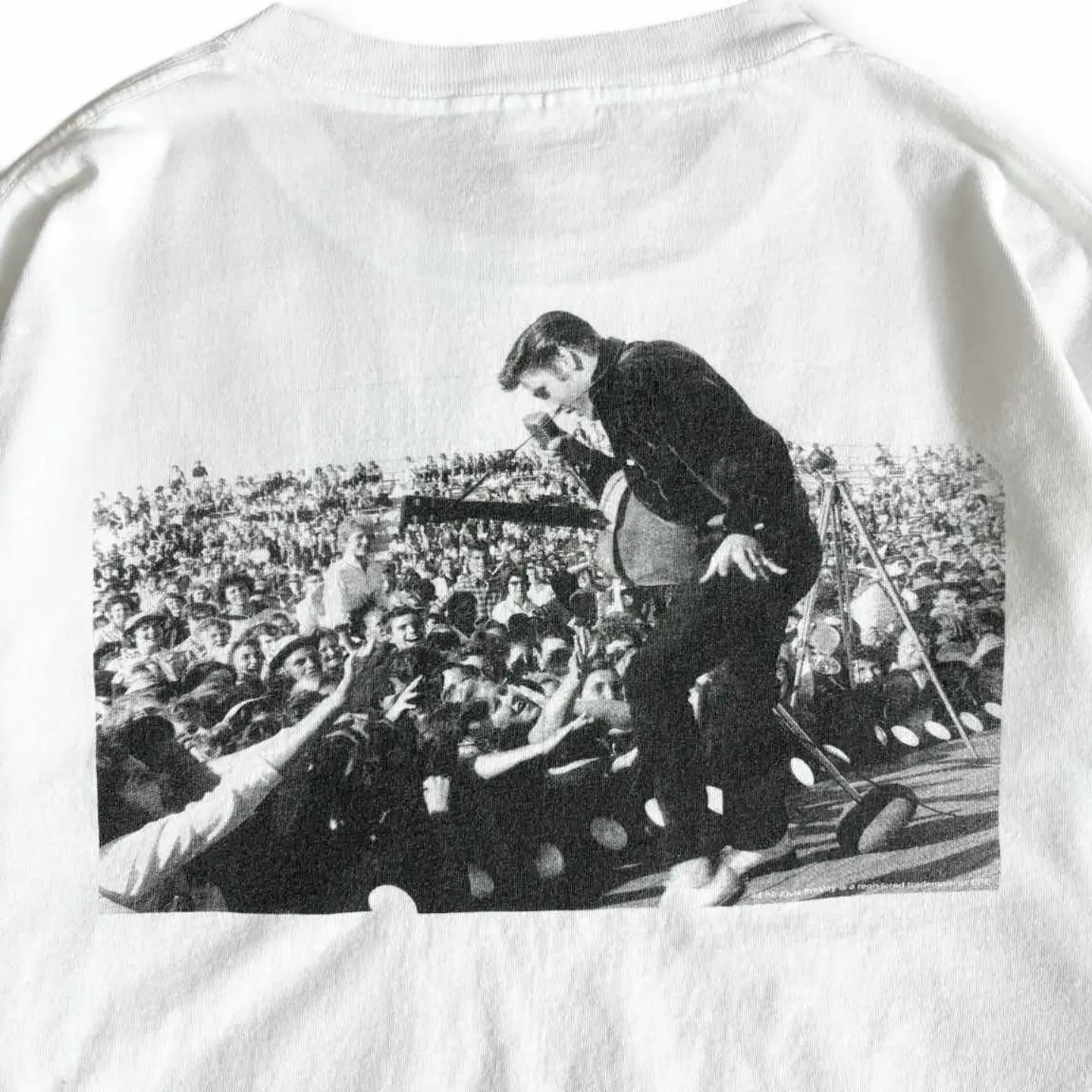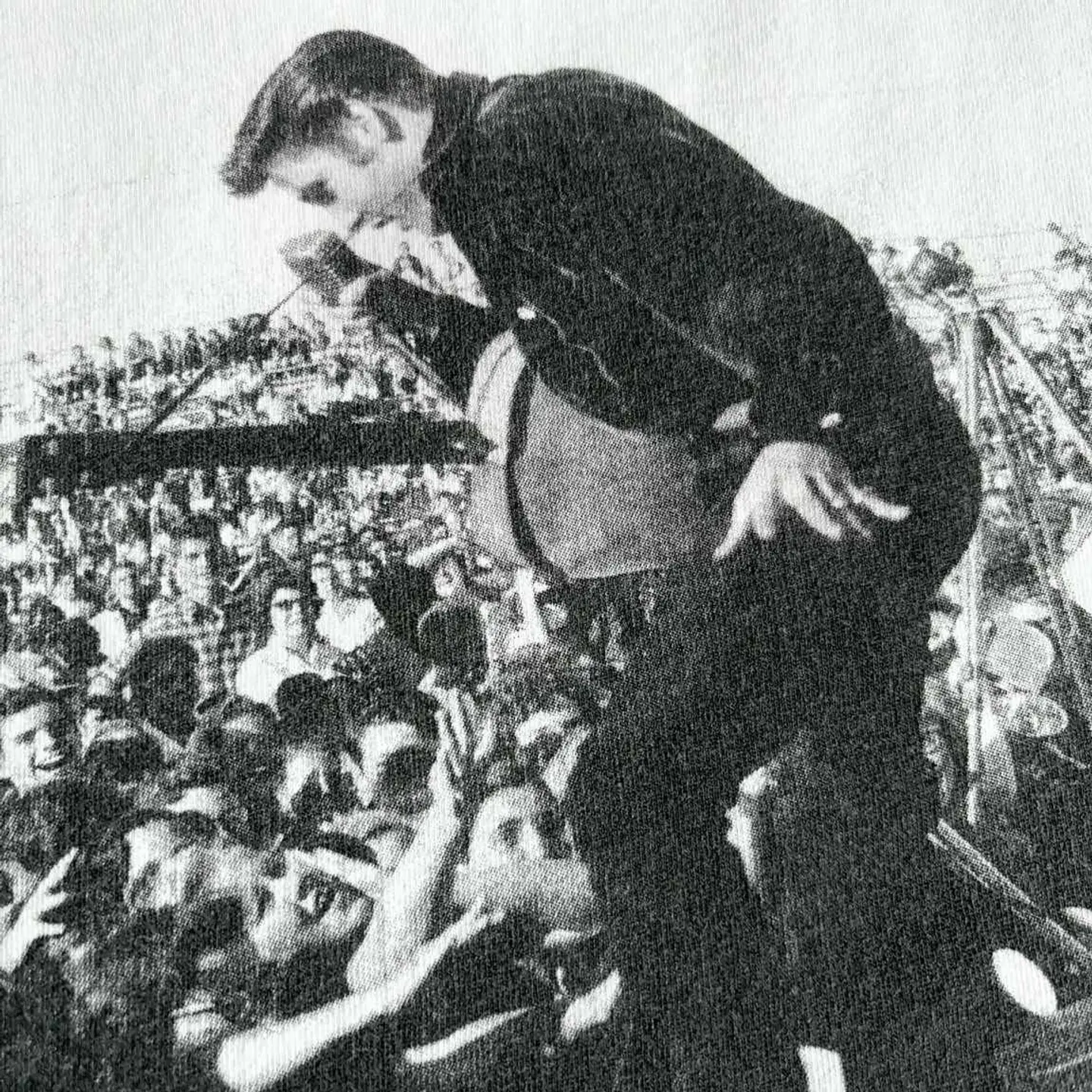 ○商品説明 USA製 DELTA エルヴィス・プレスリー 「キング・オブ・ロックンロール」として 世界のポピュラー音楽、そして文化そのものを 変えた人物です。 全盛期のエルヴィスが熱狂する観衆の前で パフォーマンスを行う、躍動感あふれる ライブフォトをモノトーンで大胆に デザインしています。 エルヴィス・プレスリー好きの方からしたら たまらない一枚かと。 身幅広めの着丈短めボックスシルエット になります。 お探しの方は是非。 ○サイズ 表記XL 平置き ・肩幅60cm ・身幅61cm ・袖丈19cm ・着丈66.5cm ○商品の状態B A:使用感がほとんどなく、汚れやシミもなし B:多少使用感はあるが、汚れやシミも少ない C:使用感があり、汚れやシミがある D:使用感があり、大きな汚れや破れあり #USA製#DELTA#デルタ#エルヴィスプレスリー#Tシャツ