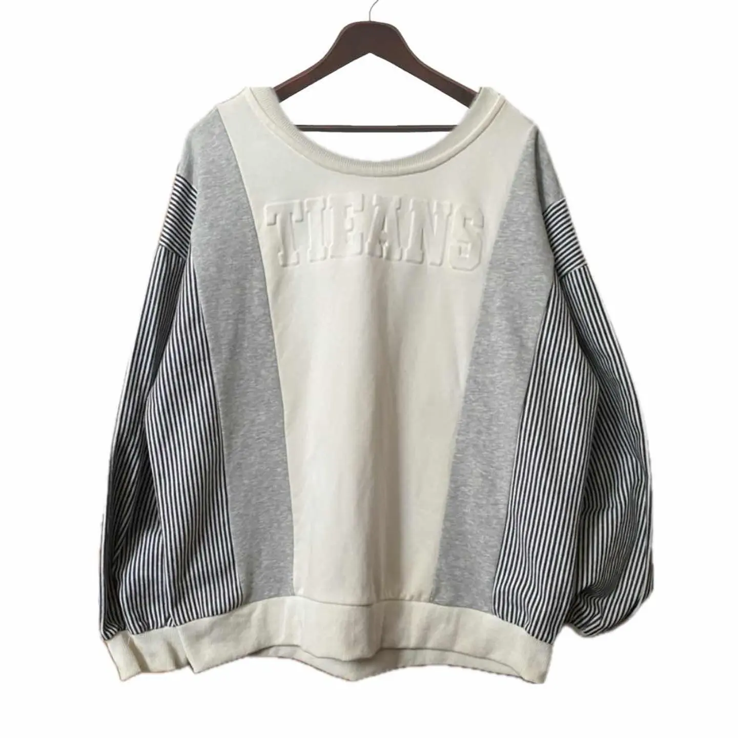 90s OEMpanel docking American work ロンT TC XL 90年代古着とセレクトショップが入りみだれ、ファッションがすごく勢いがあった時期に作られた服はめちゃくちゃ質が良いです。 OEM外注特注、セレクトショップオリジナルの80年代のボックスシルエットを意識したアメリカンワールドクッキングTシャツとなります。 見た目の作りは、スウェットですが、TCをつかい、TC は、東レ特許ね、フロントにさりげなく裏から射抜く感じのフッキータイプのプリントを入れ、さらにサイドはワークシャツをTシャツに使う贅沢さ。ヒッコリータイプとスウェットみたいなTCタイプですね。 さらにリブがあるので、型崩れもしてませんし ガンガン選択しても、そこはワークの要素があるので長持ちします。特質ポイントとしてはやっぱり80年代を意識しているシルエットがボトムのベルト付近とかを見せるかっこいいおしゃれがかなり決まります。さらに袖口にまでリブ施してますので 例えば、暑い1日は袖を開けたら、リブがストッパーになって、好きなだけで袖が楽しめます。 そしてコーディネートのようにスニーカーとミリタリーパンツで相性が良いって言う事はアメリカンカジュアルですよね。だったらどんなスタイルにも合うって言うことです。着まわし抜群質も良い文句なしです。 ▷color◁ 写真通り ※ブラウザで異なる場合ありますがかなり実物近づけてます。 ▷size◁ 平置き片面採寸【㎝表記】 表記size XL 着丈/64 身幅/60 肩幅/63 袖丈 /63DSなんで、ハンガー採寸 DSは袖はハンガー採寸 ※多少の誤差は理解下さい モデル170センチ 普通体型 【参考例TシャツMがジャストくらい】 私が、着用して快適ゆるだぼ、丈が、大人っぽすぎてたまらない、 【素材】 TCスウェット、ヒッコリーデニムドッキングcrazyパターン年中いける、 【状態】 美品 #古着男子 #古着女子