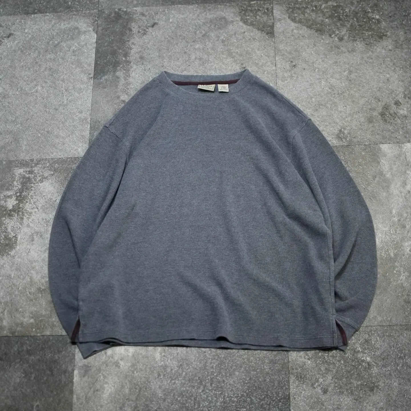 古着 LL Bean グレー サーマル ロンT カットソー 長袖Tシャツ 灰色
